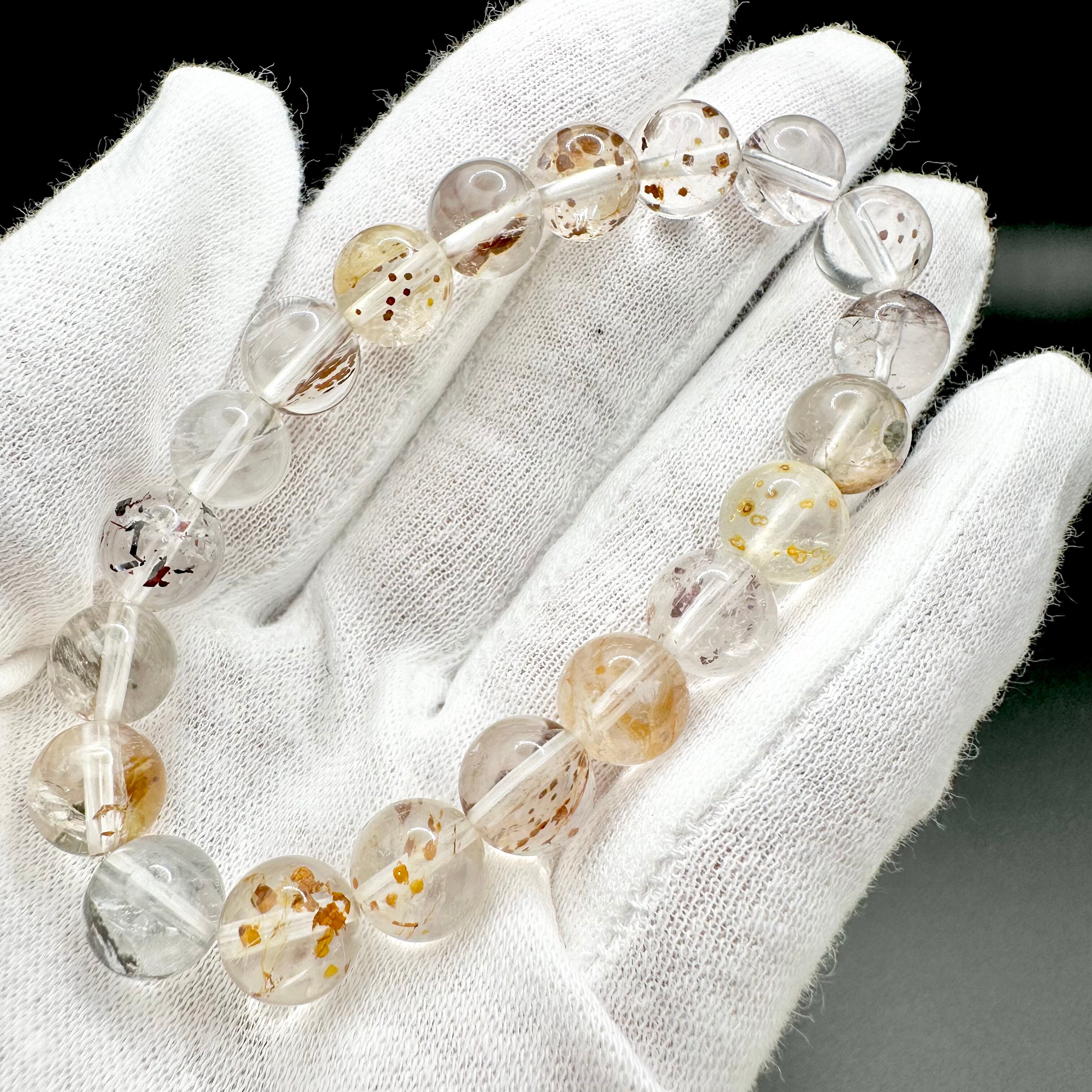 玉によってレピドクロサイトやデンドリックも見られるインクォーツ好きさんにはたまらないブレスレットだと思います。