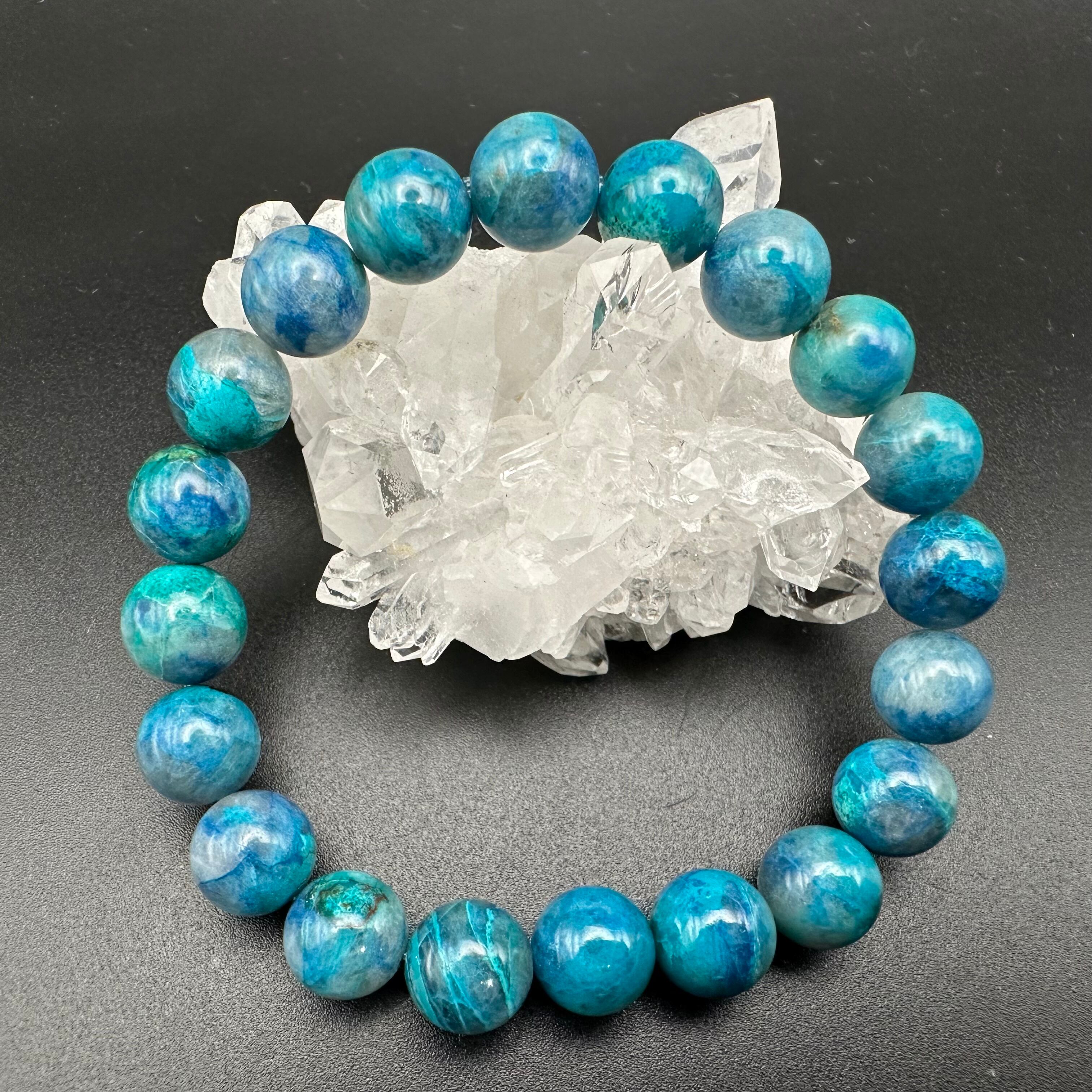 クォンタムクァトロシリカは、クリソコラを中心にシャッタカイト、マラカイト、スモーキークォーツの4つの石が混合した珍しい石です。