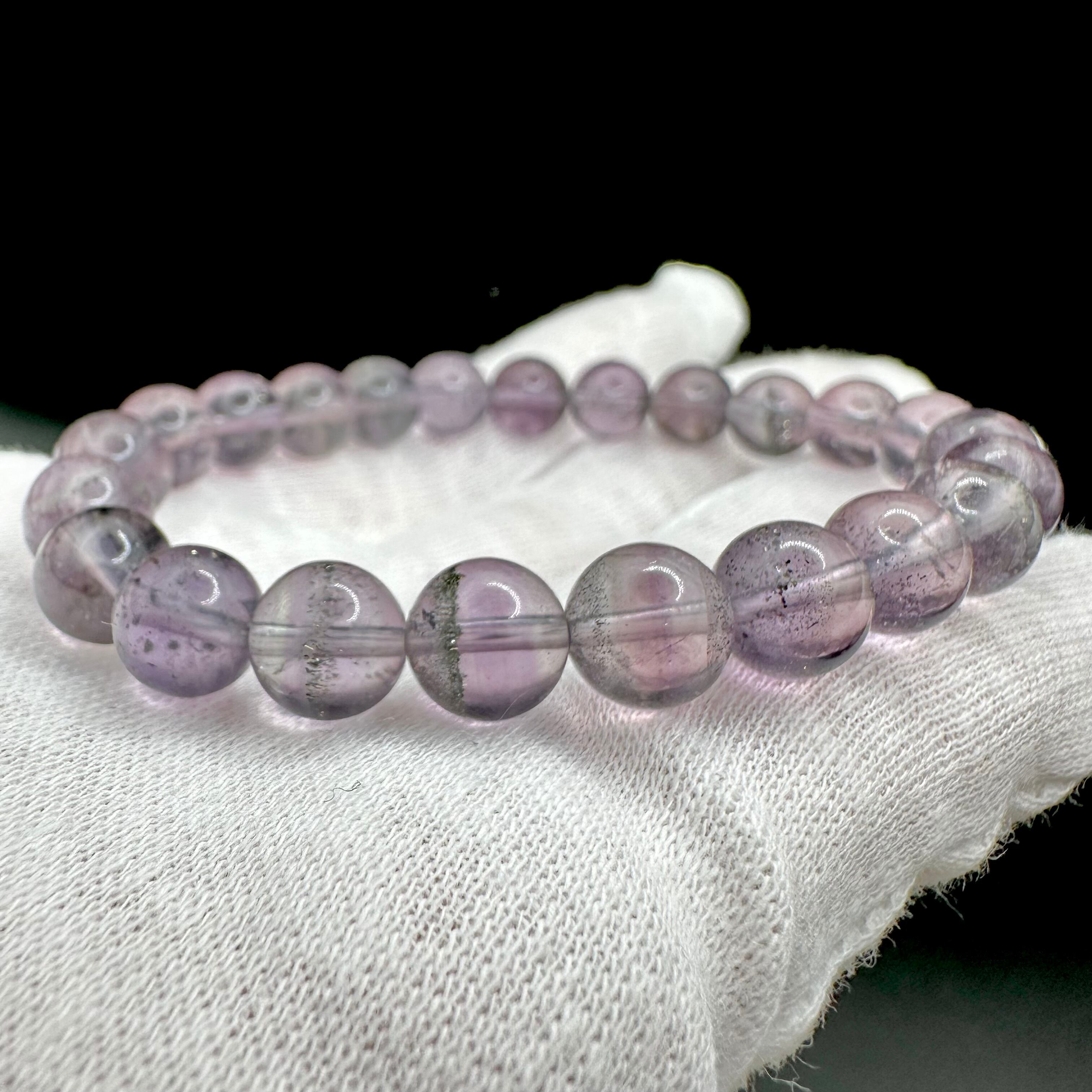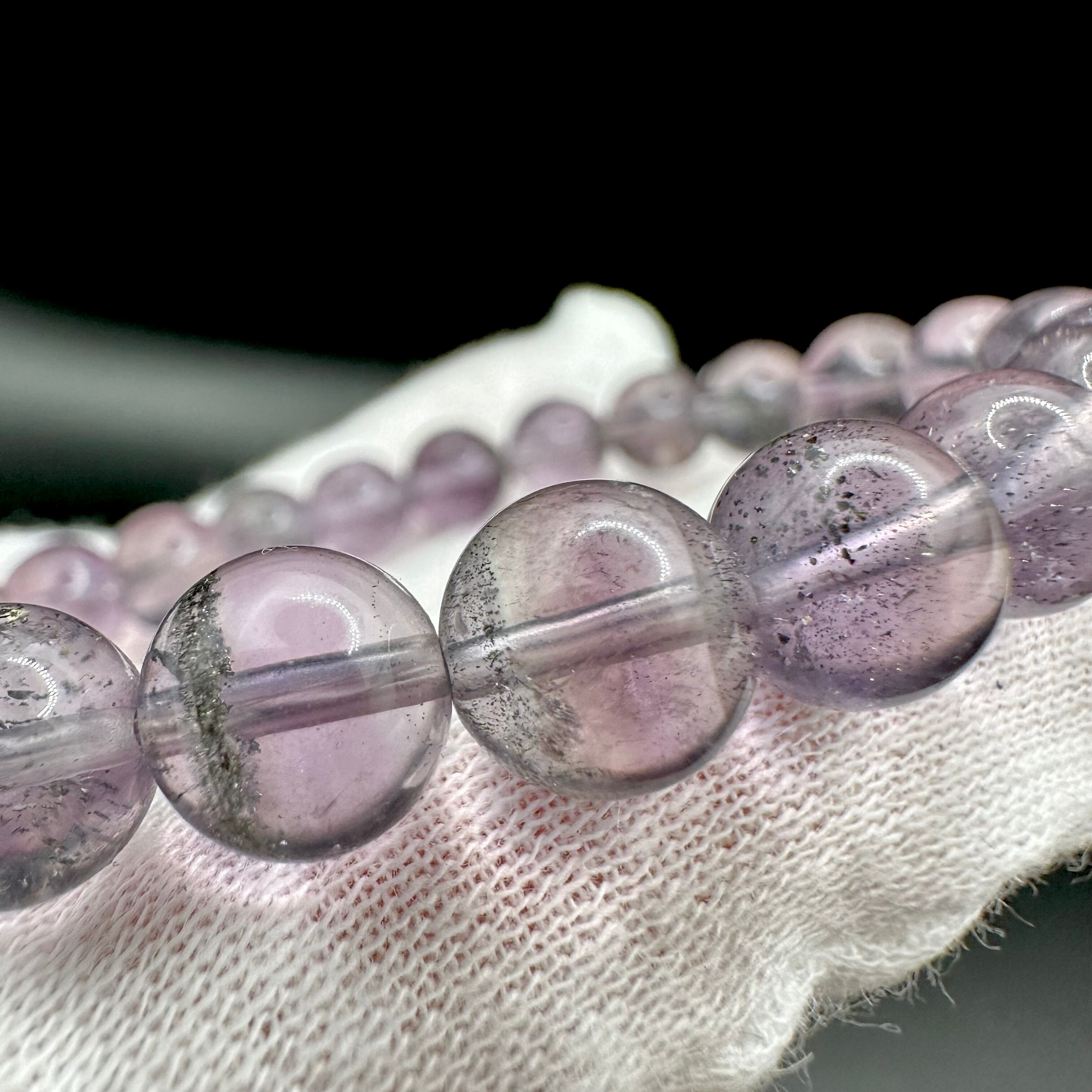 星のようにキラキラ輝くパイライトがフローライトに内包された幻想的で美しいレアなブレスレットです。
