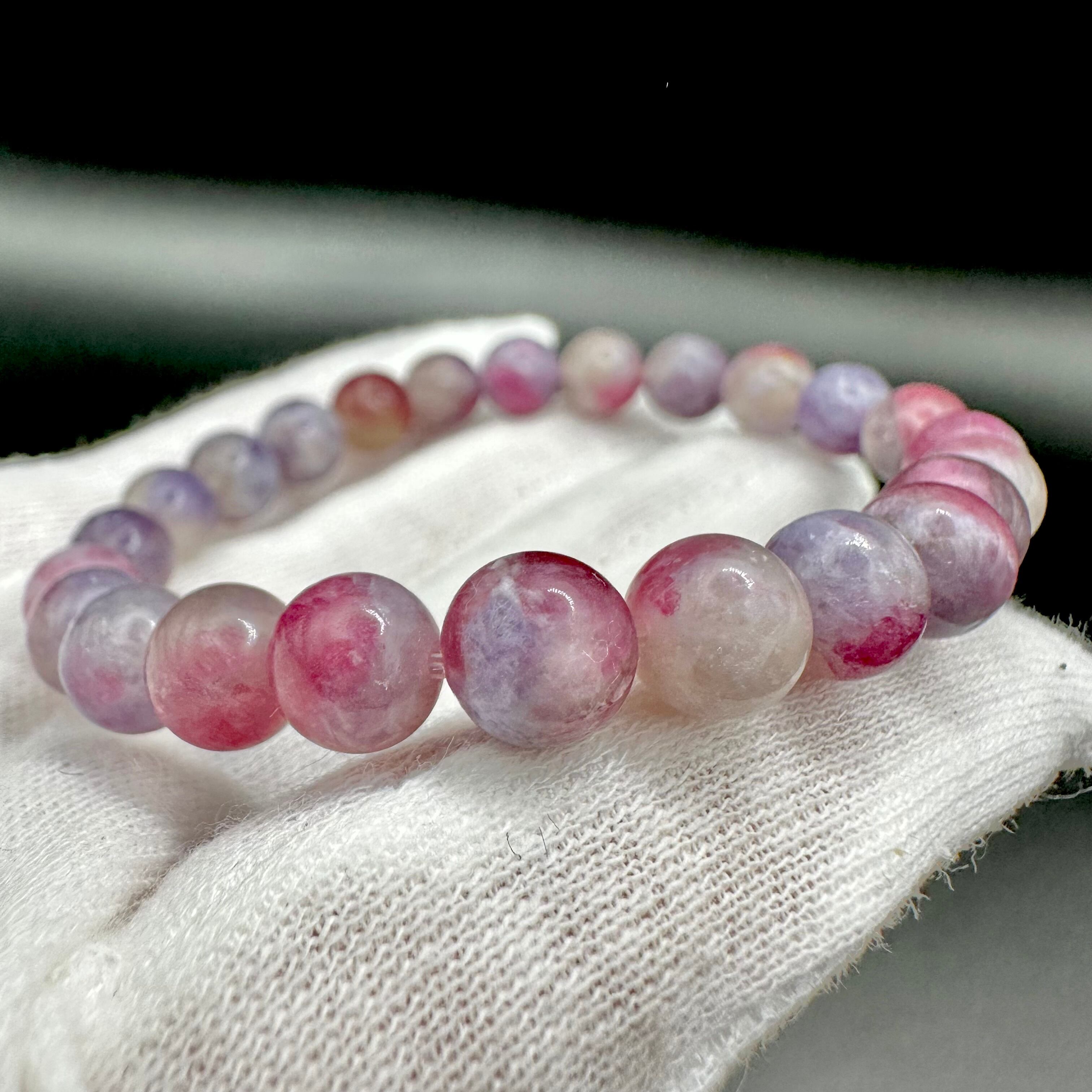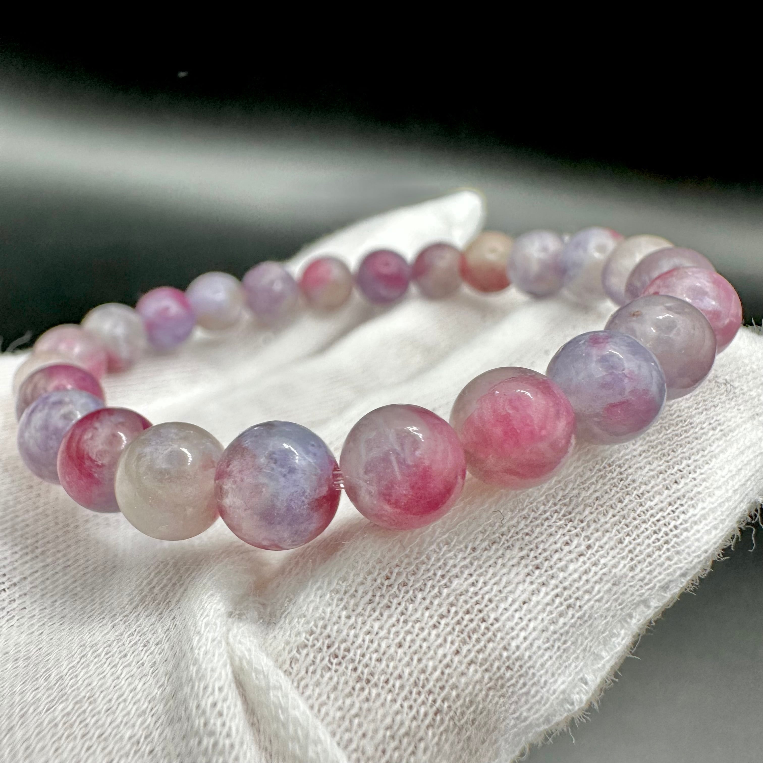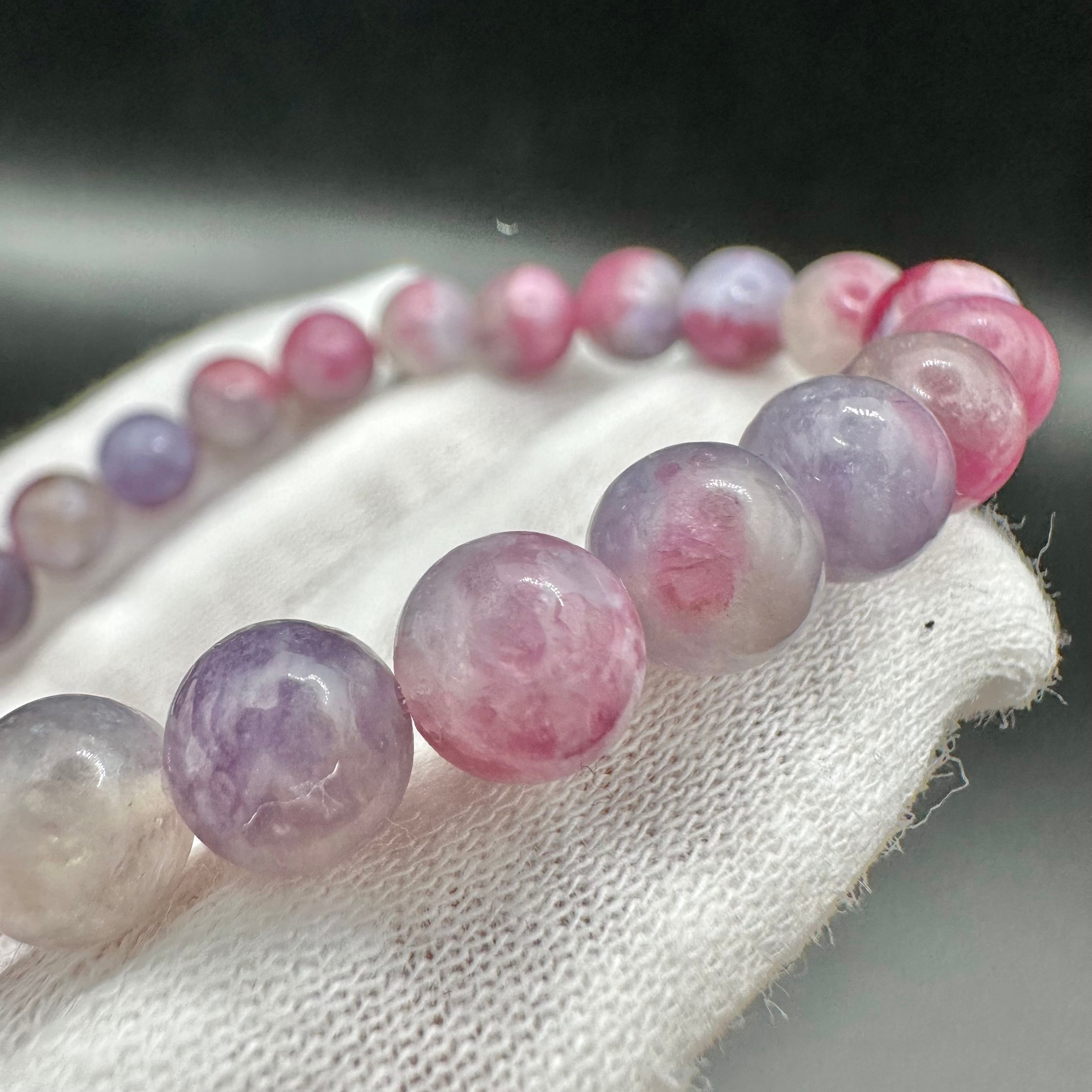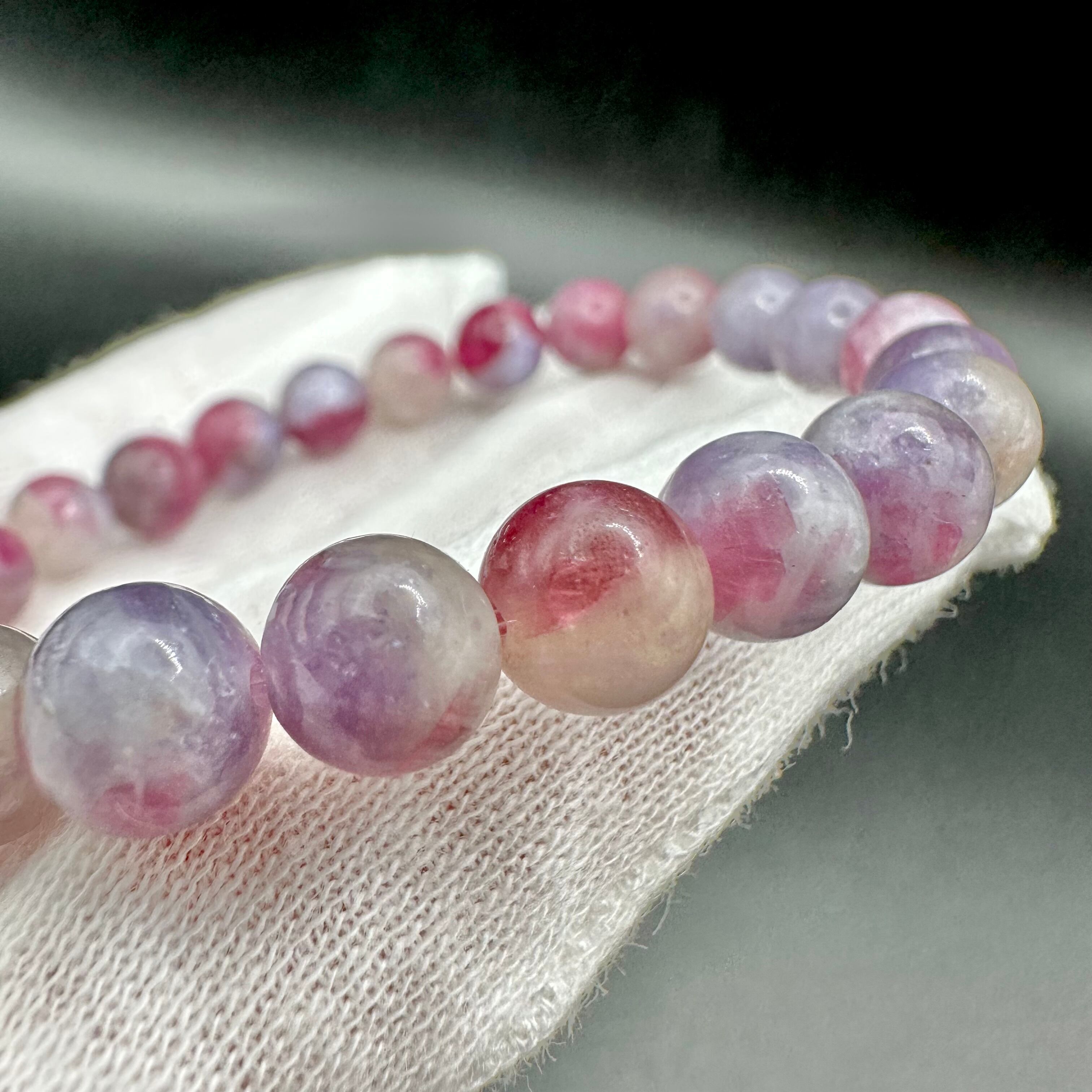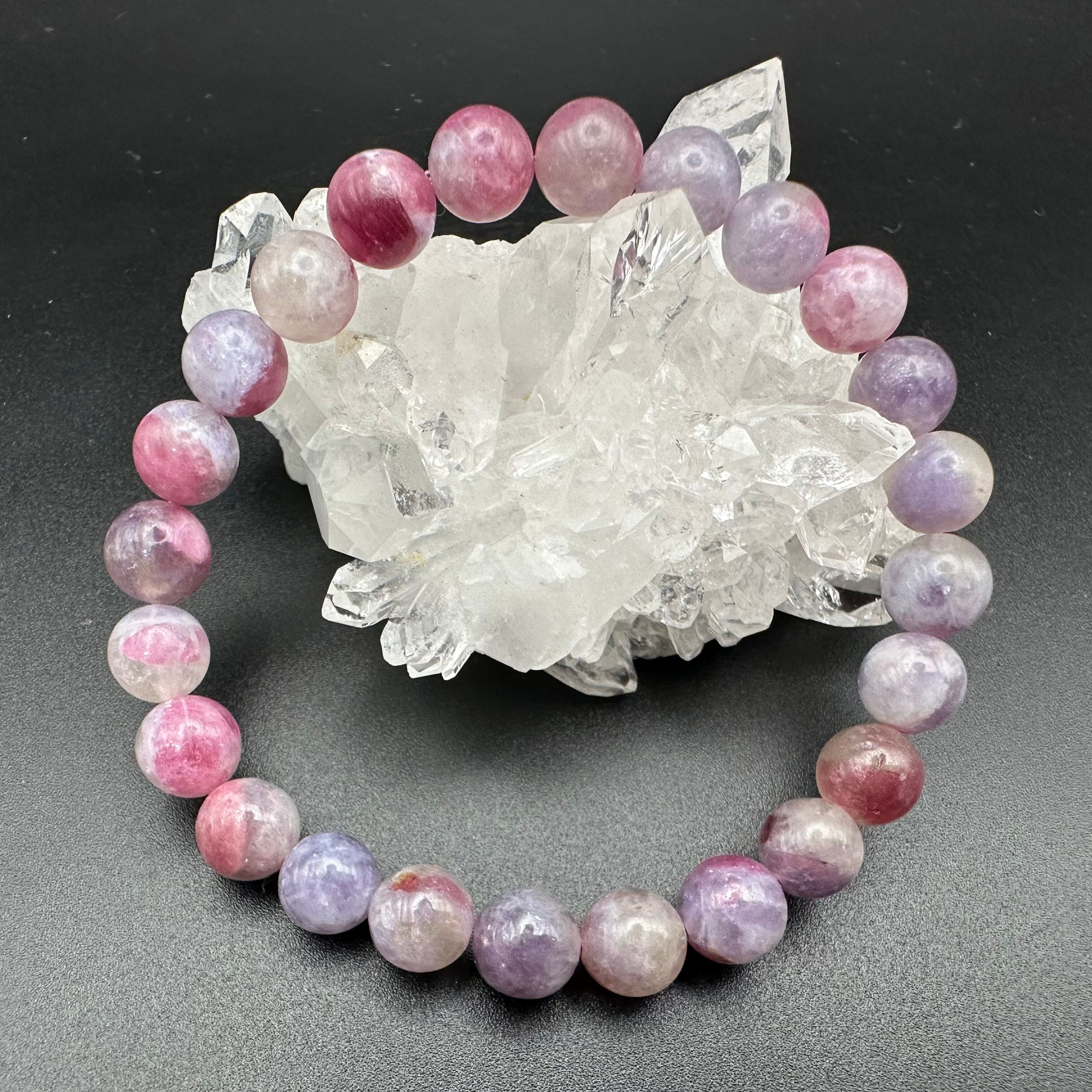 透明感がある部分もあり、ピンクトルマリンの濃いピンクと、レピドライトの濃い紫の発色がとても良く美しいです。