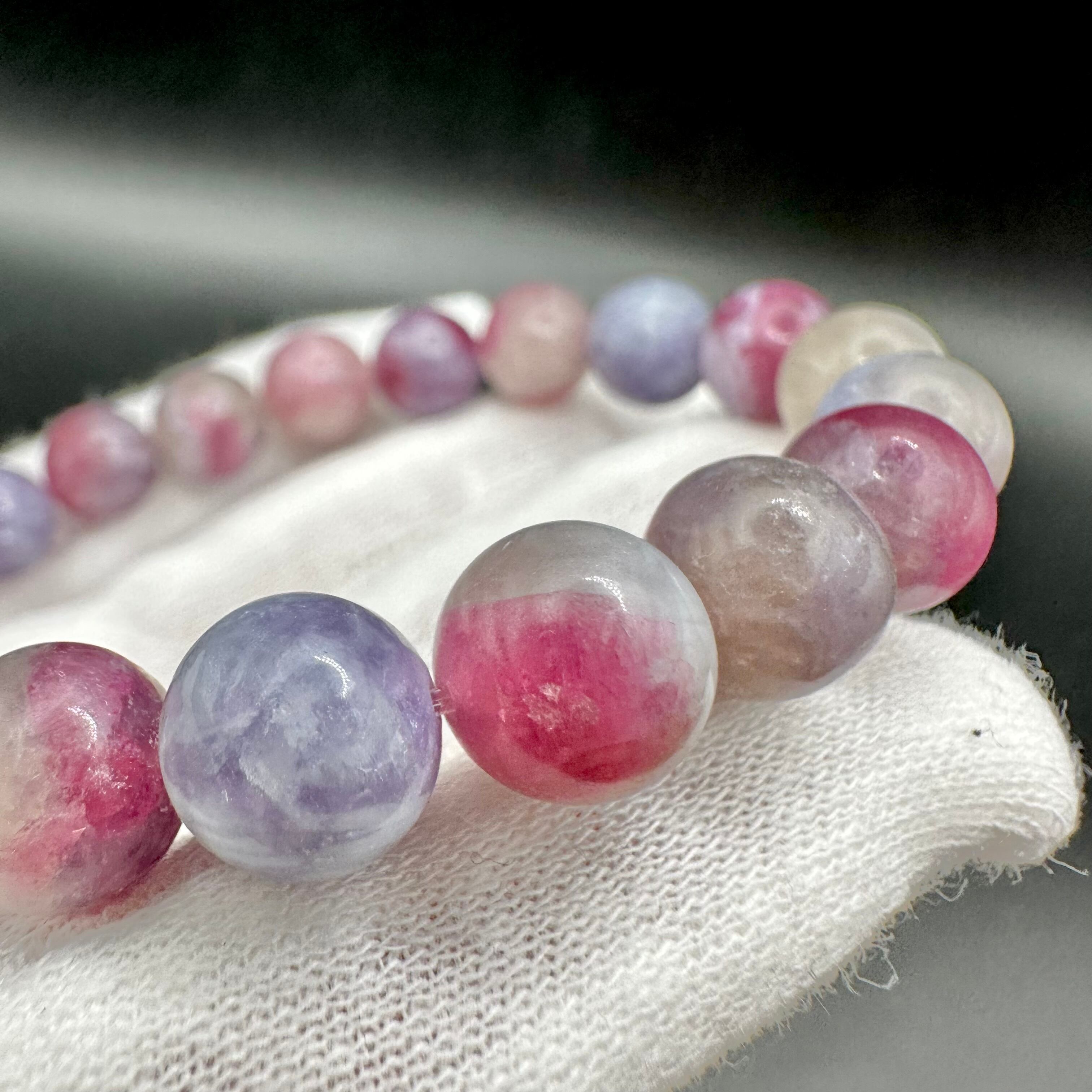 透明感がある部分もあり、ピンクトルマリンの濃いピンクと、レピドライトの濃い紫の発色がとても良く美しいです。