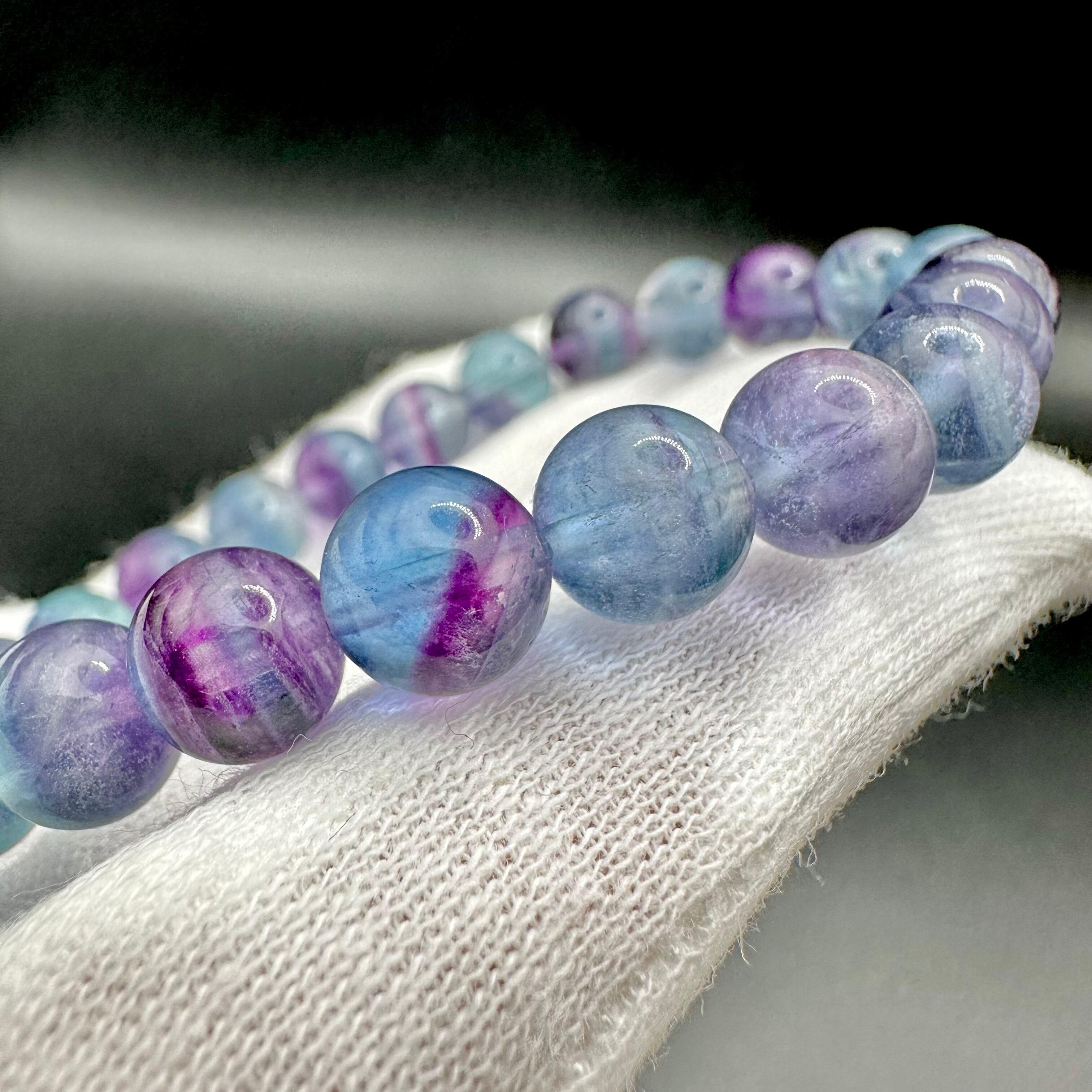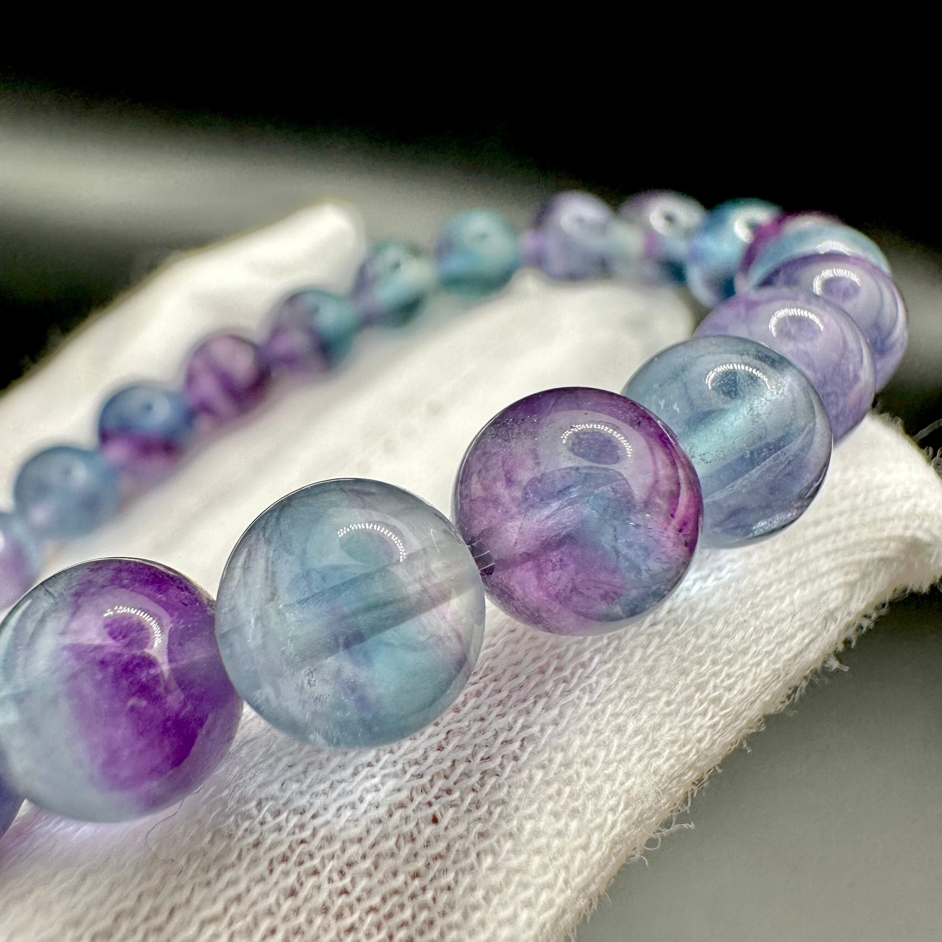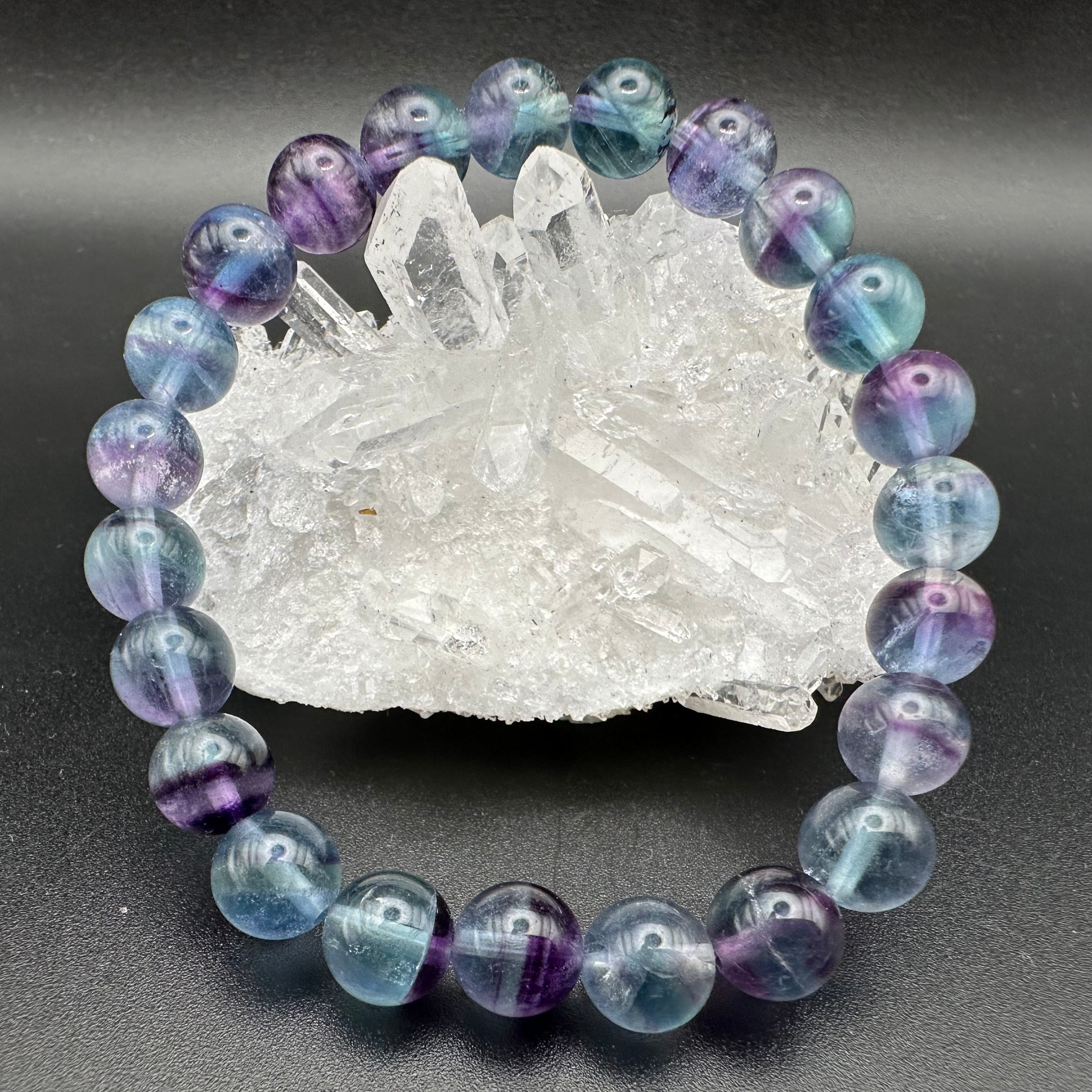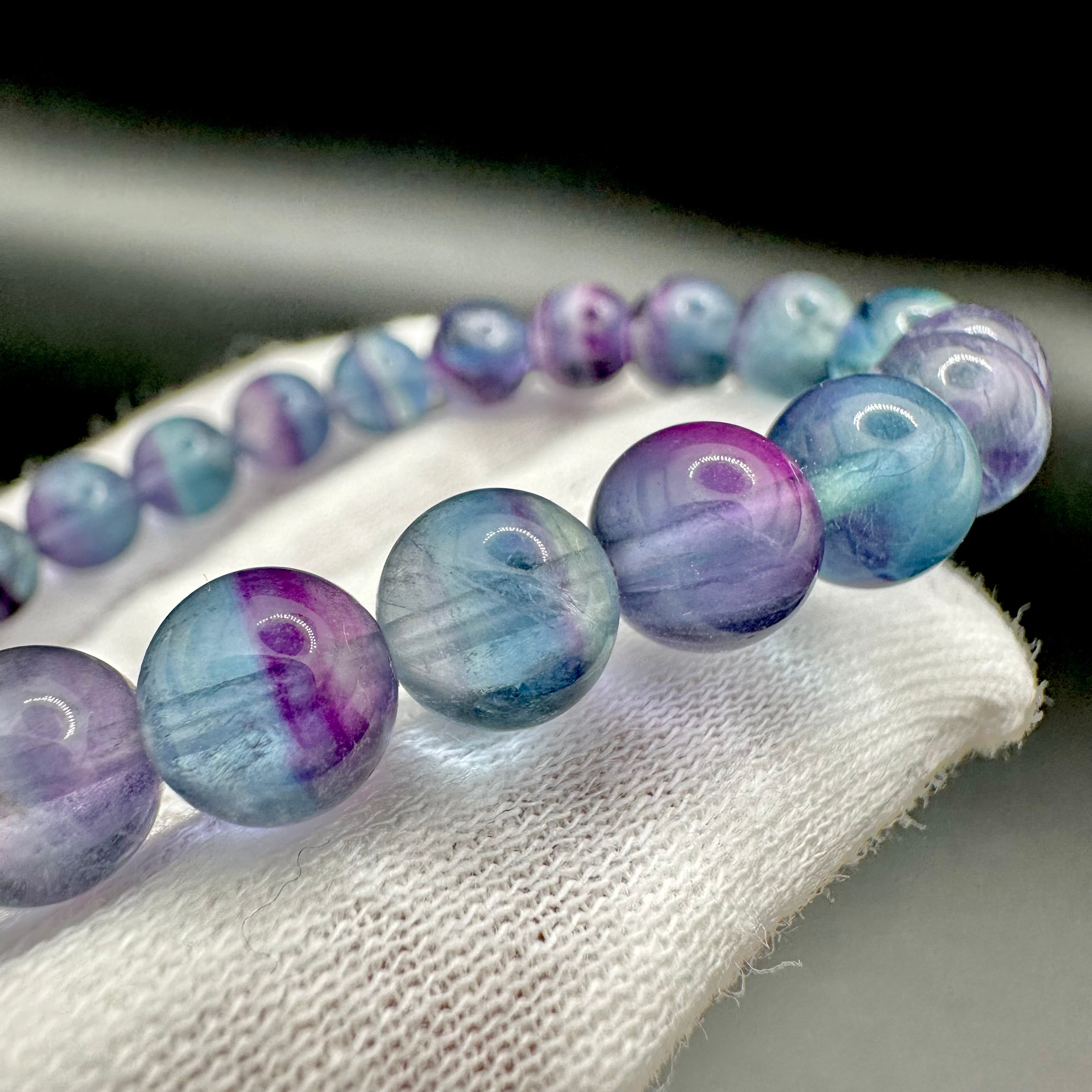 ブルー・パープル・クリアがシマシマになったとても美しいフローライトのブレスレットです。