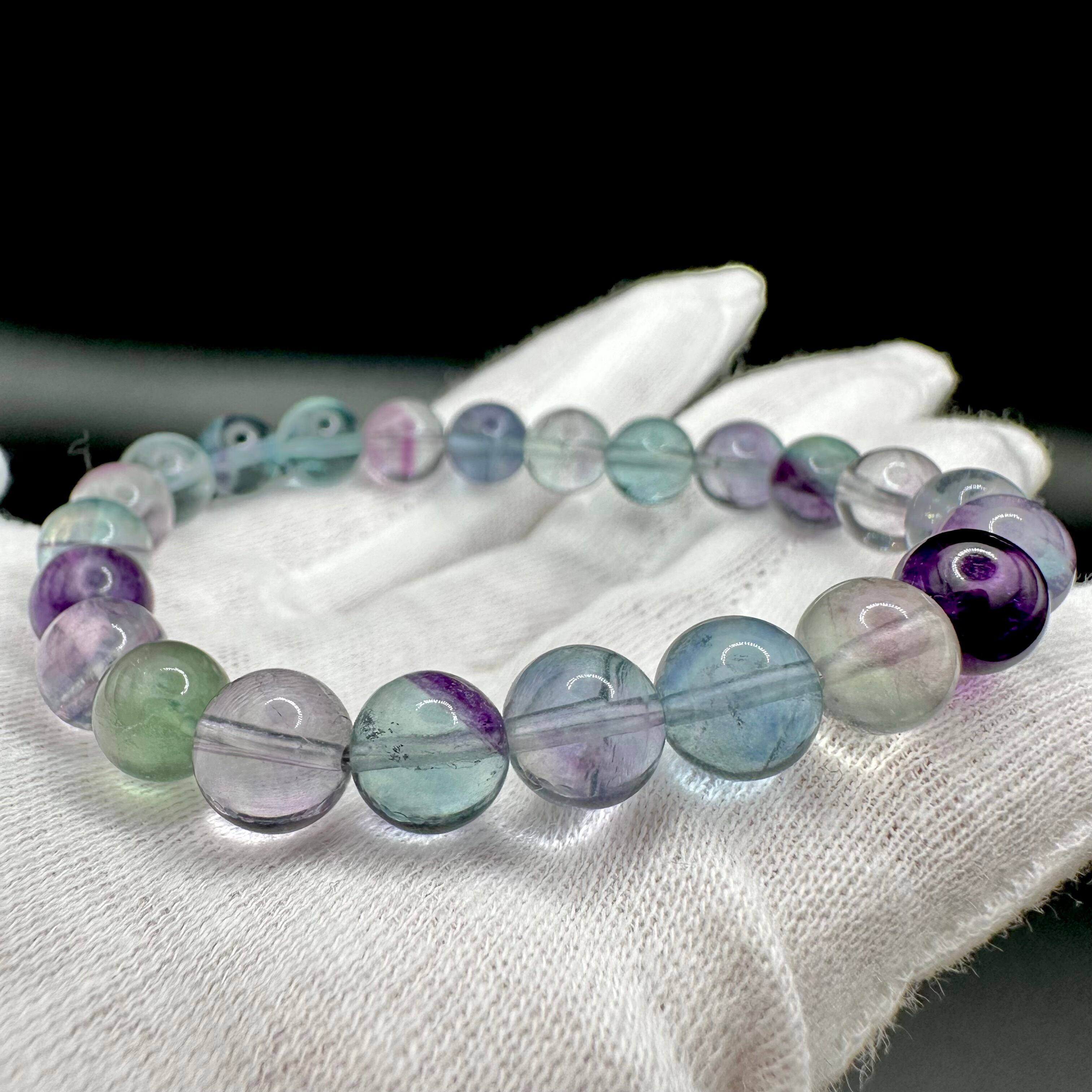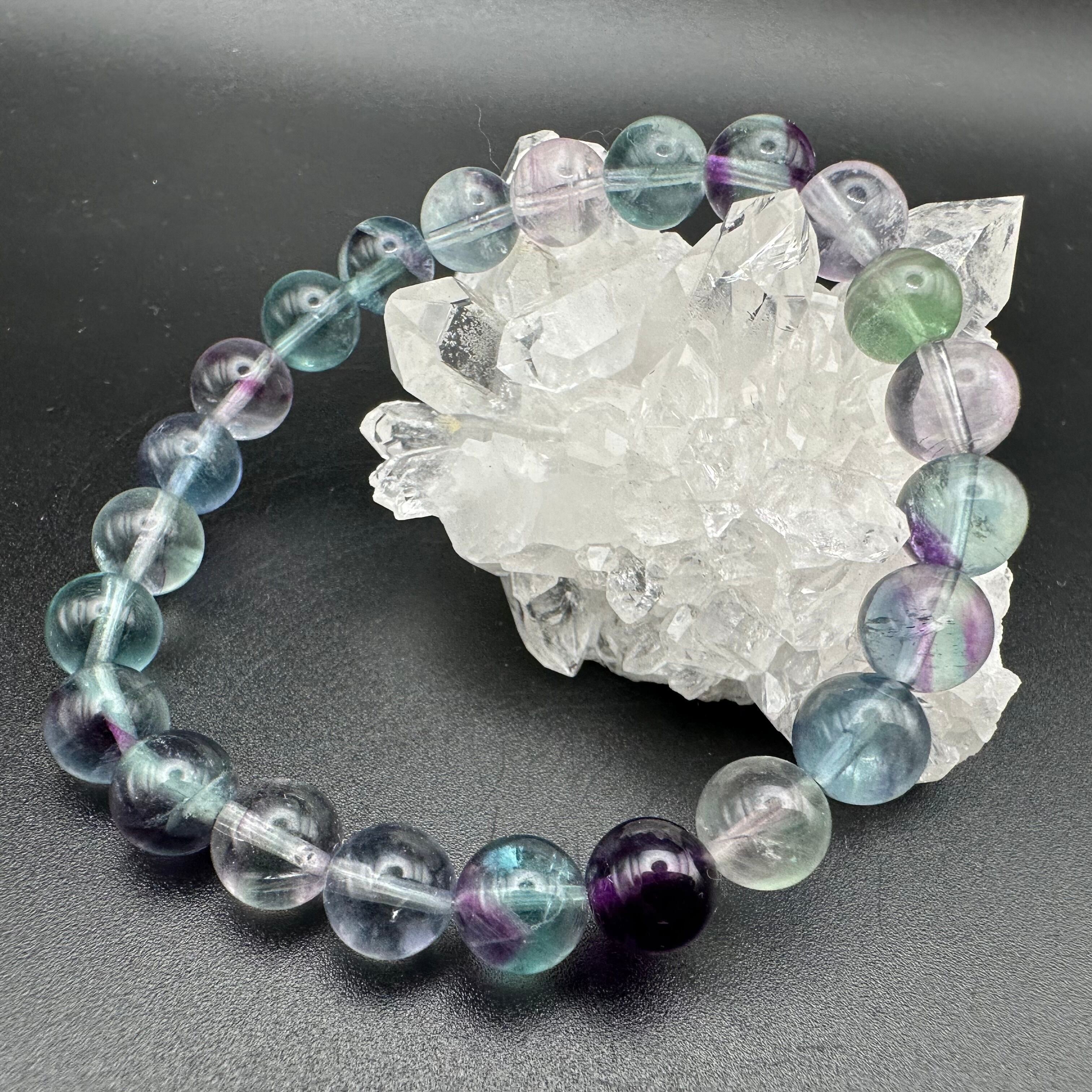 マルチカラーがとても楽しく、フローライトの魅力が詰まったような素敵なブレスレットです。