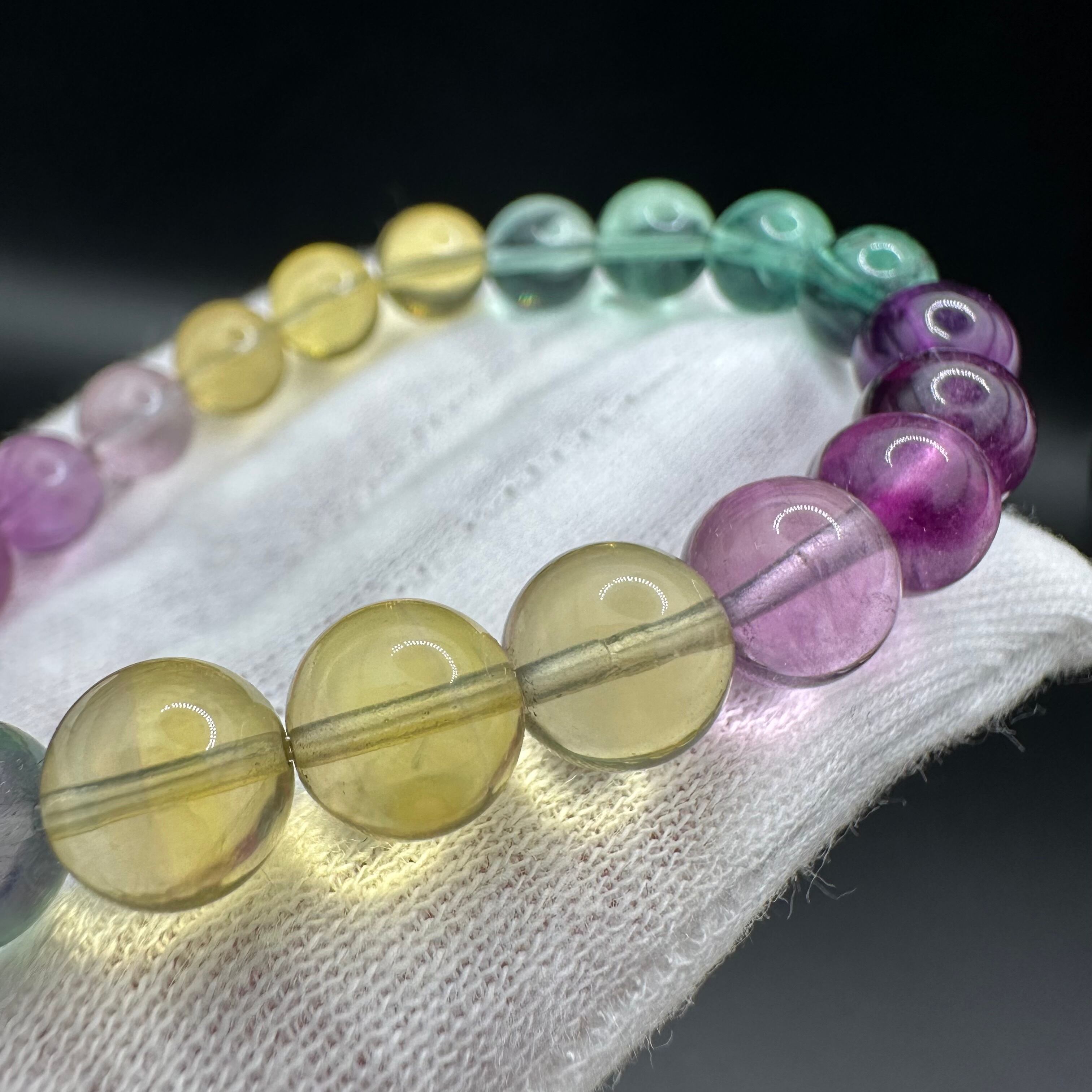 このアメリカ産のブレスレットはそんなフローライトのカラーチャートの様な一本です。