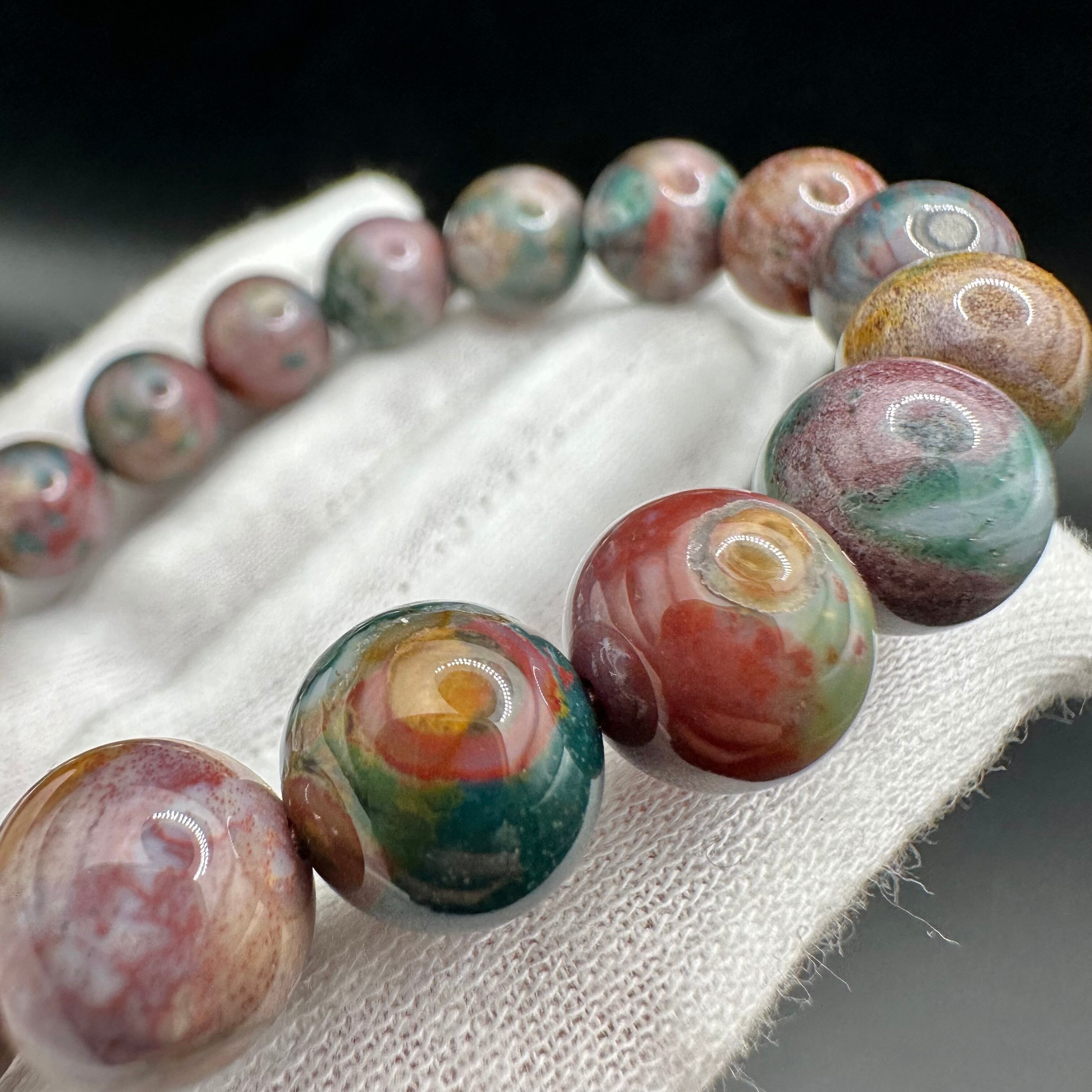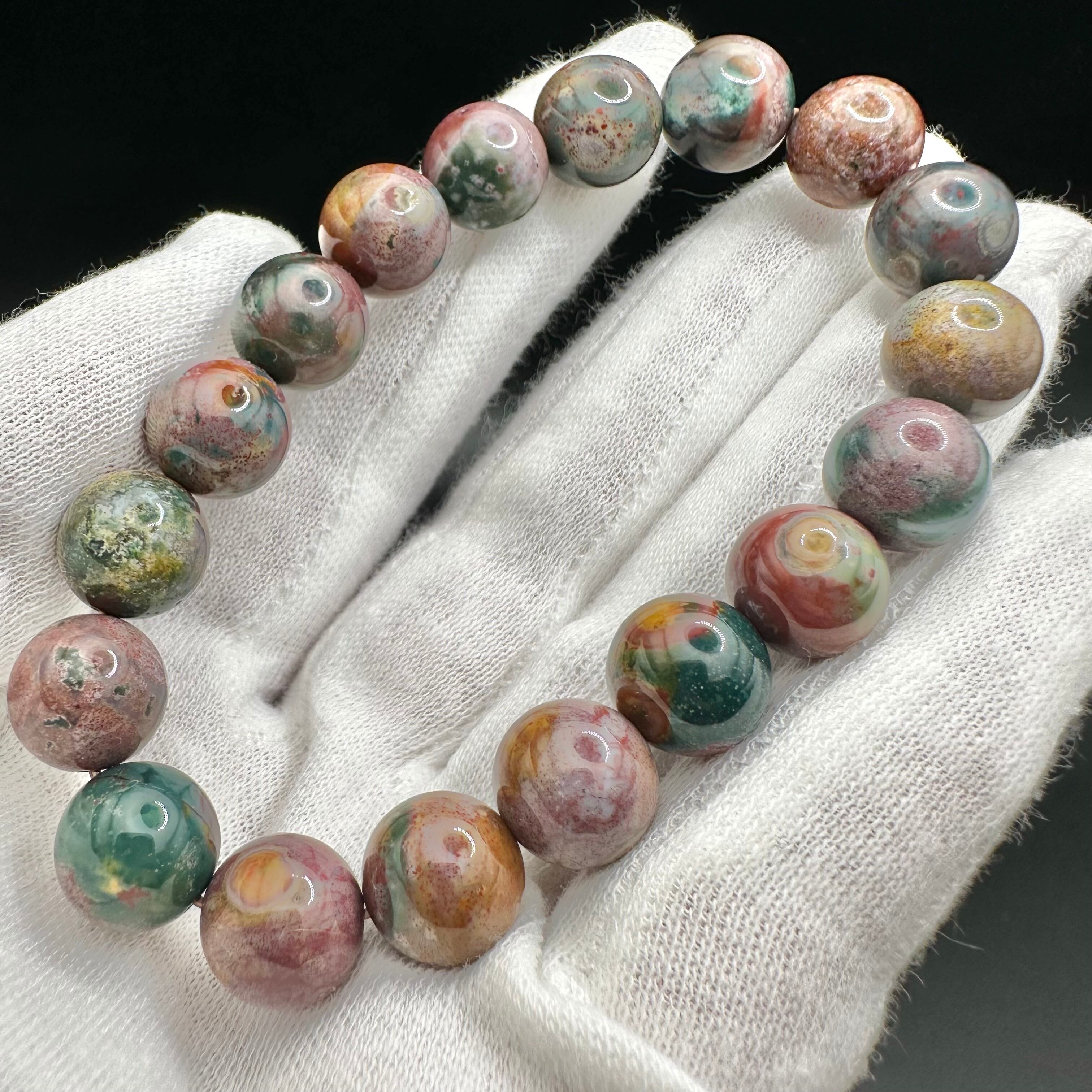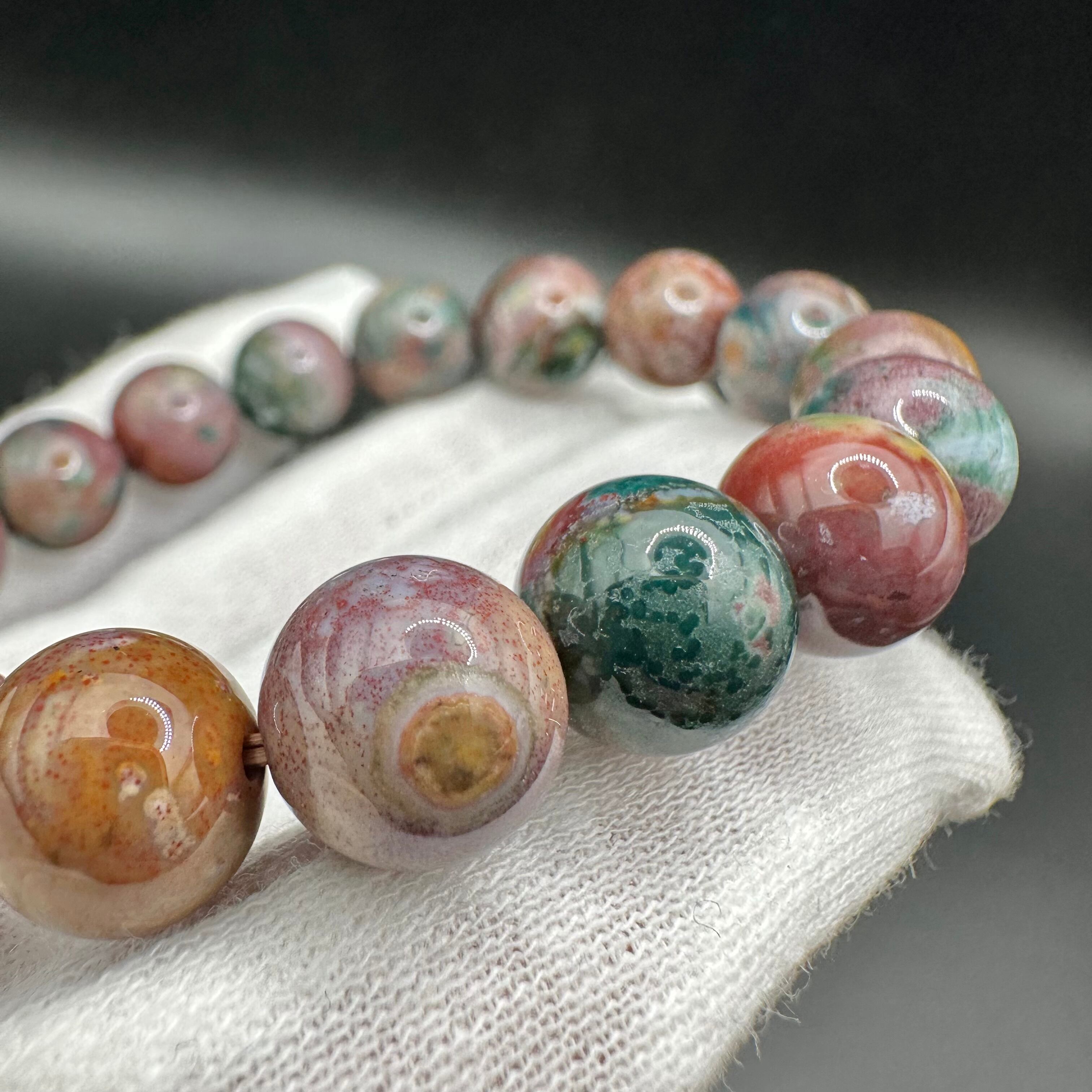 こちらのブレスレットはオーシャンジャスパーのカラーバリエーションの多さを堪能できるマルチカラータイプです。