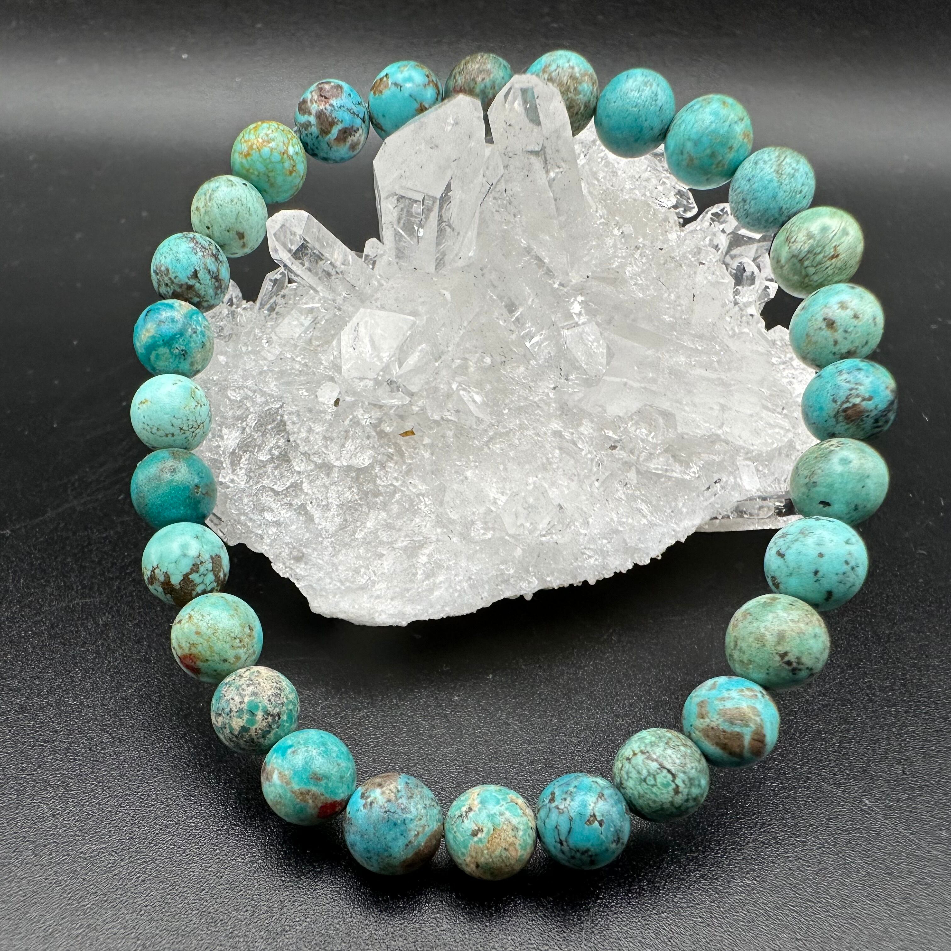 こちらは、ターコイズ特有の黒茶の模様がある玉を集めて、自然味がある玉を選びブレスレットにしました。