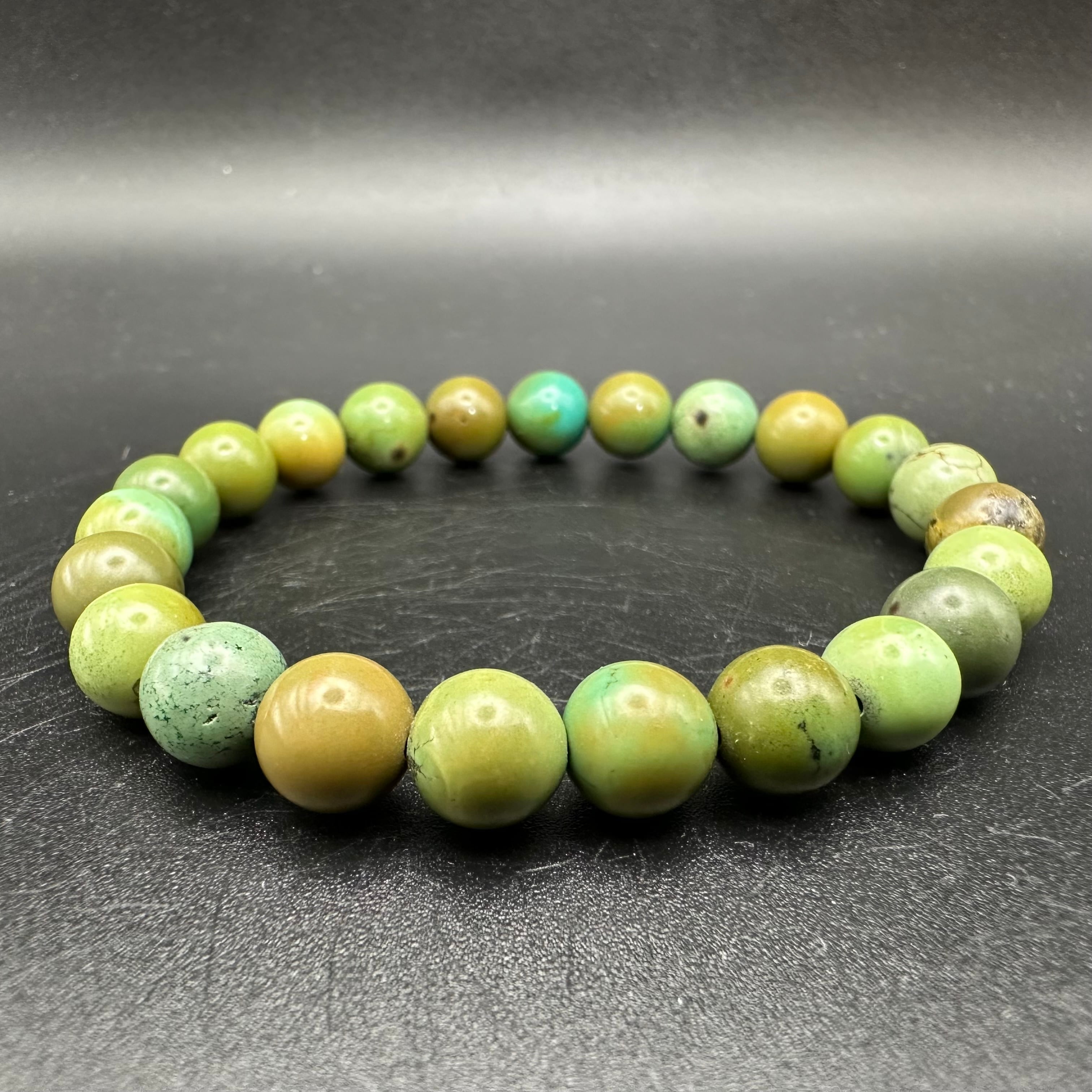 こちらは、かなり珍しいグリーン系のターコイズだけを集めたレアカラーのブレスレットです。