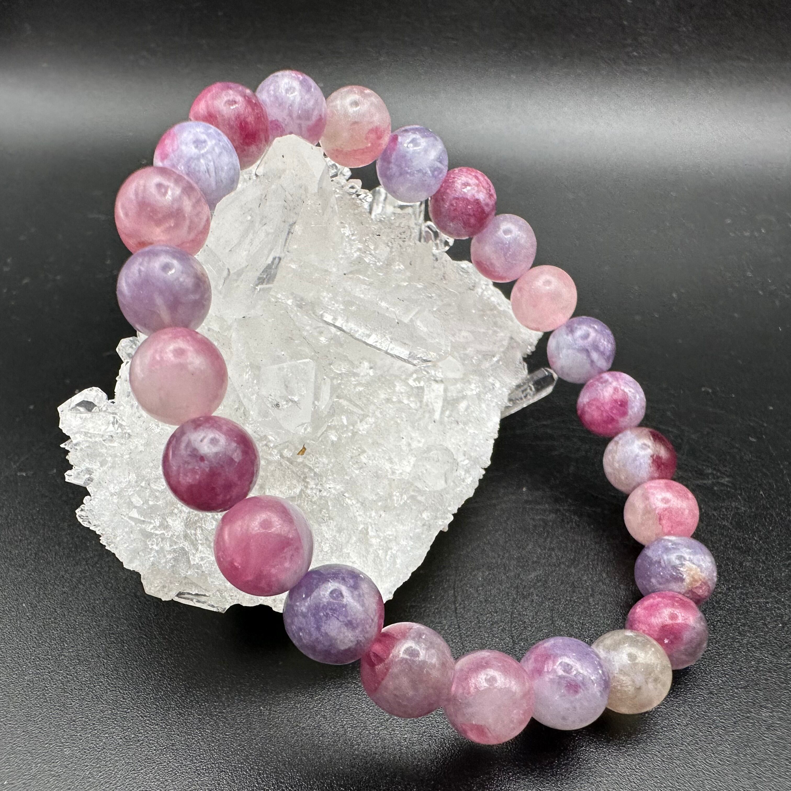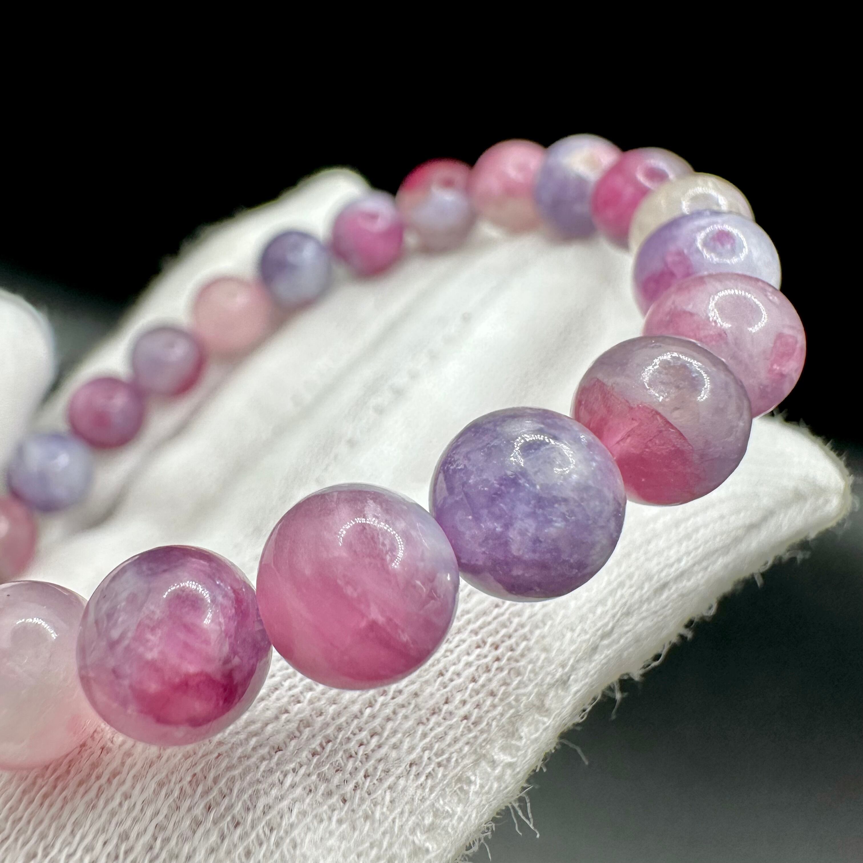 透明感がある部分もあり、ピンクトルマリンの濃いピンクと、レピドライトの濃い紫の発色がとても良く美しいです。