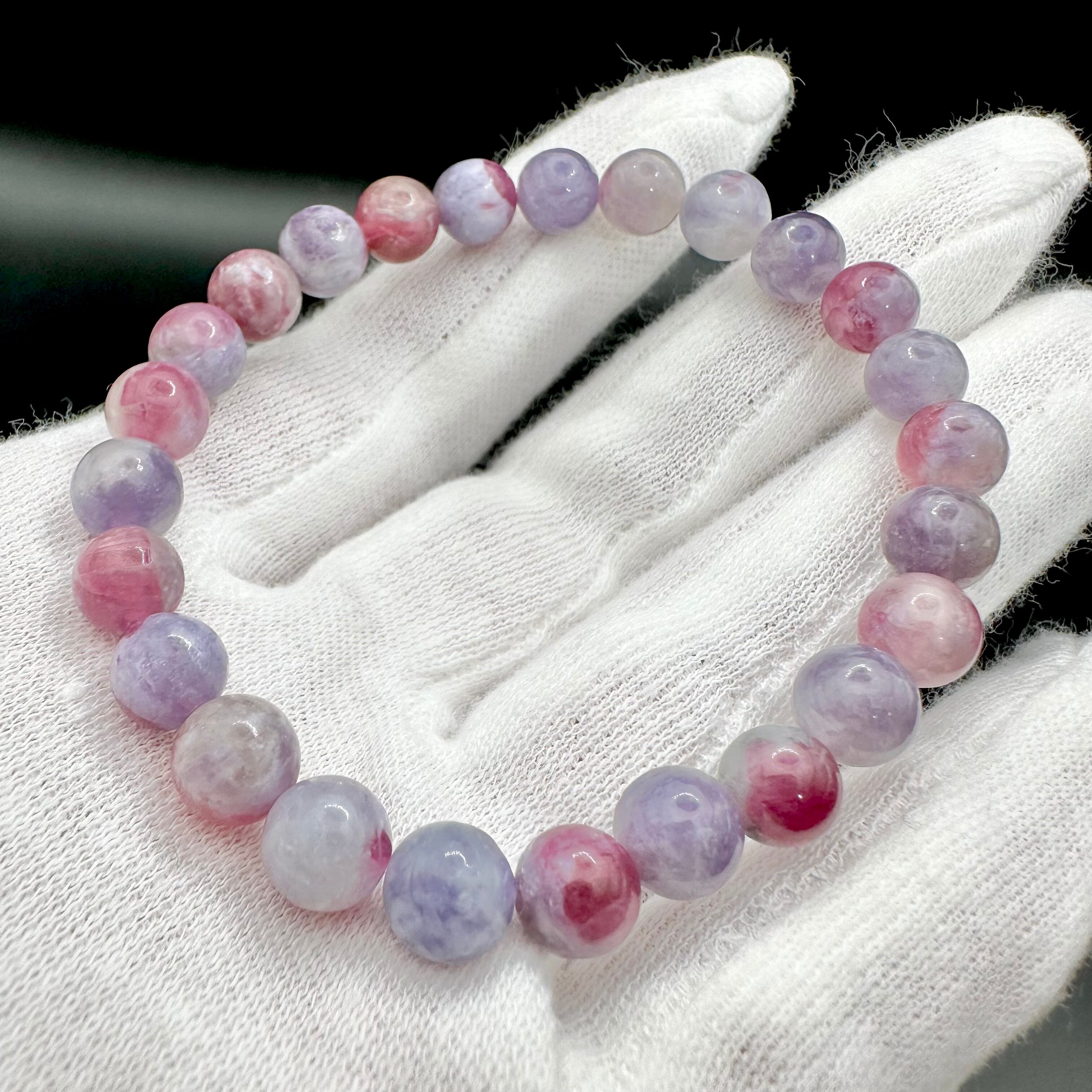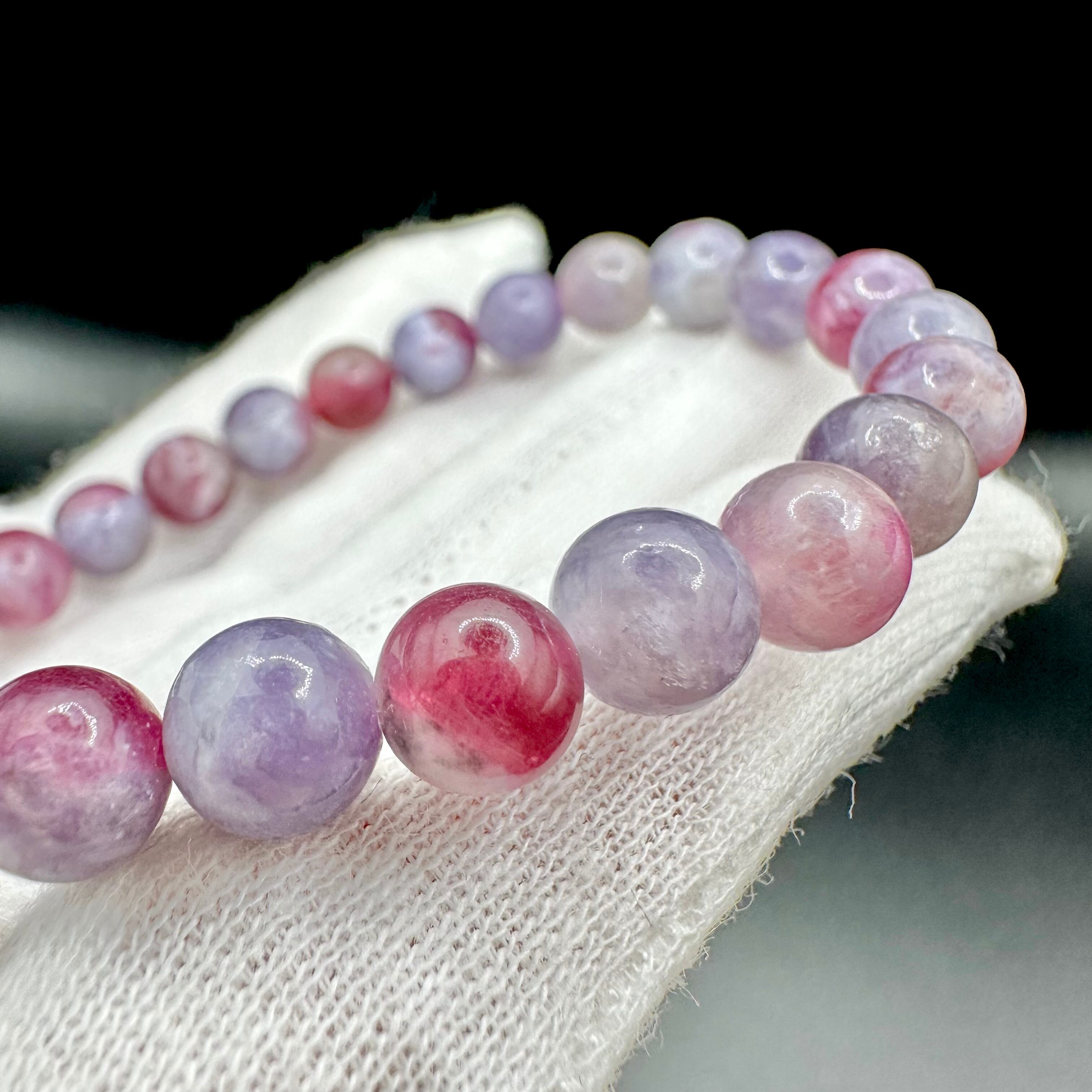 透明感がある部分もあり、ピンクトルマリンの濃いピンクと、レピドライトの濃い紫の発色がとても良く美しいです。