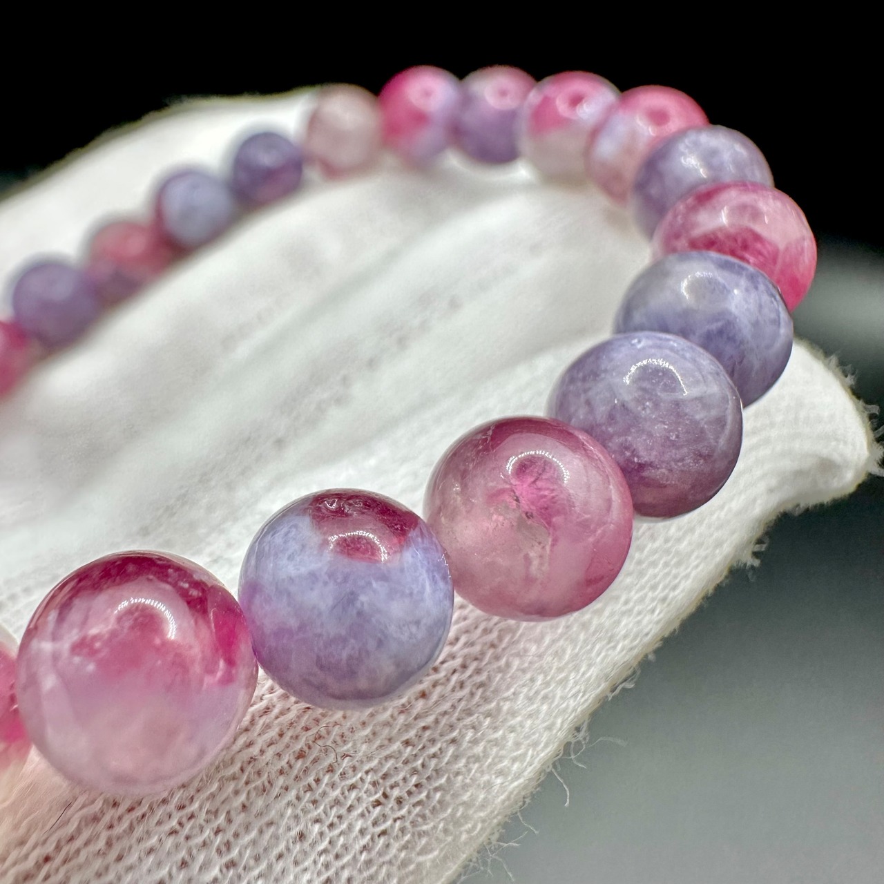 透明感がある部分もあり、ピンクトルマリンの濃いピンクと、レピドライトの濃い紫の発色がとても良く美しいです。