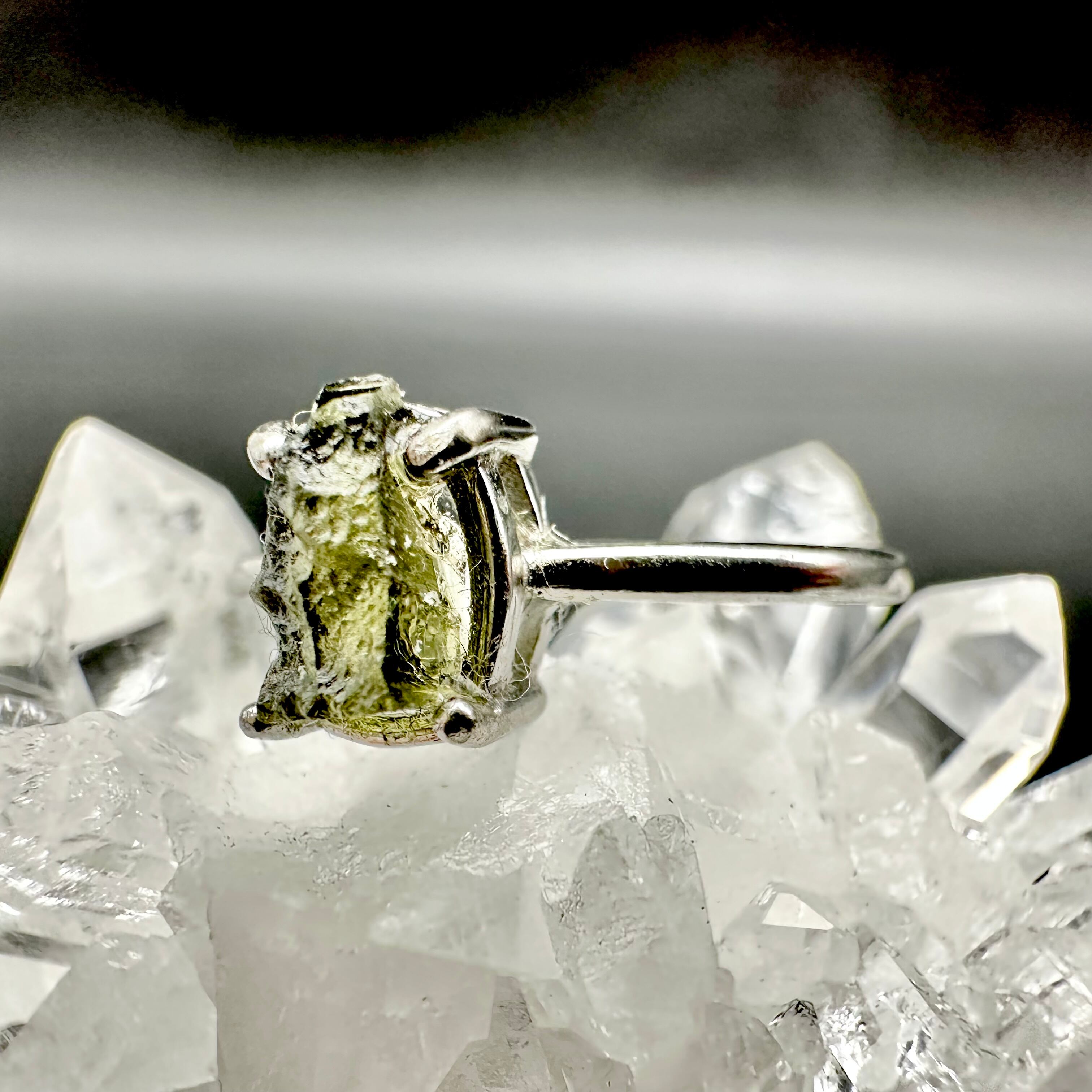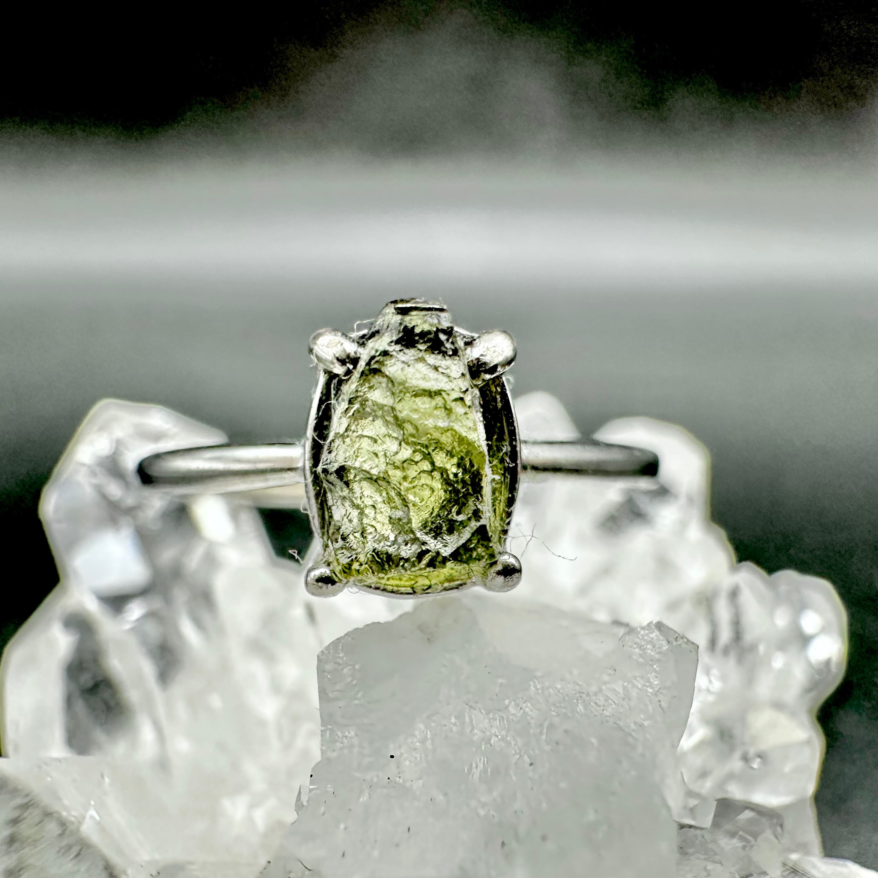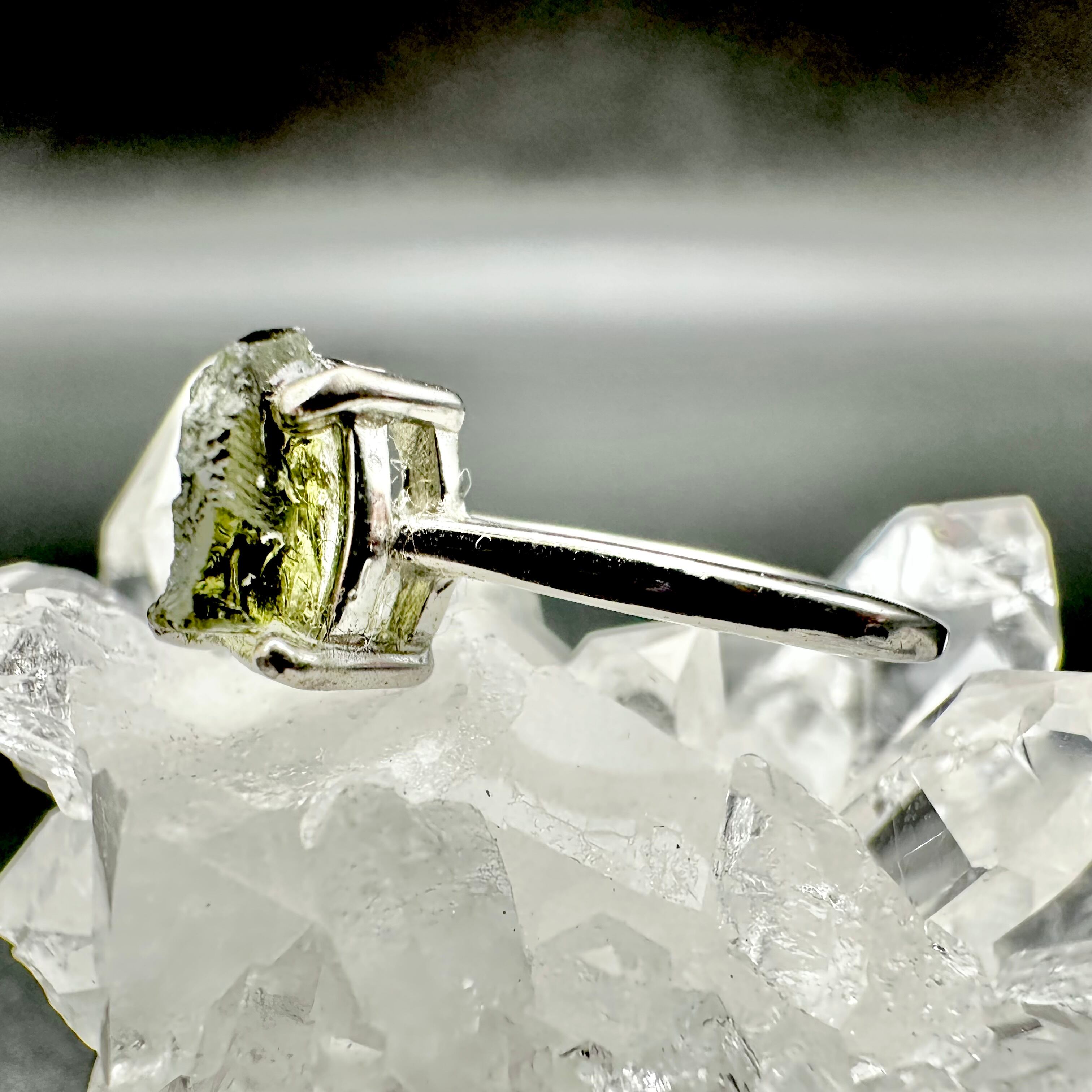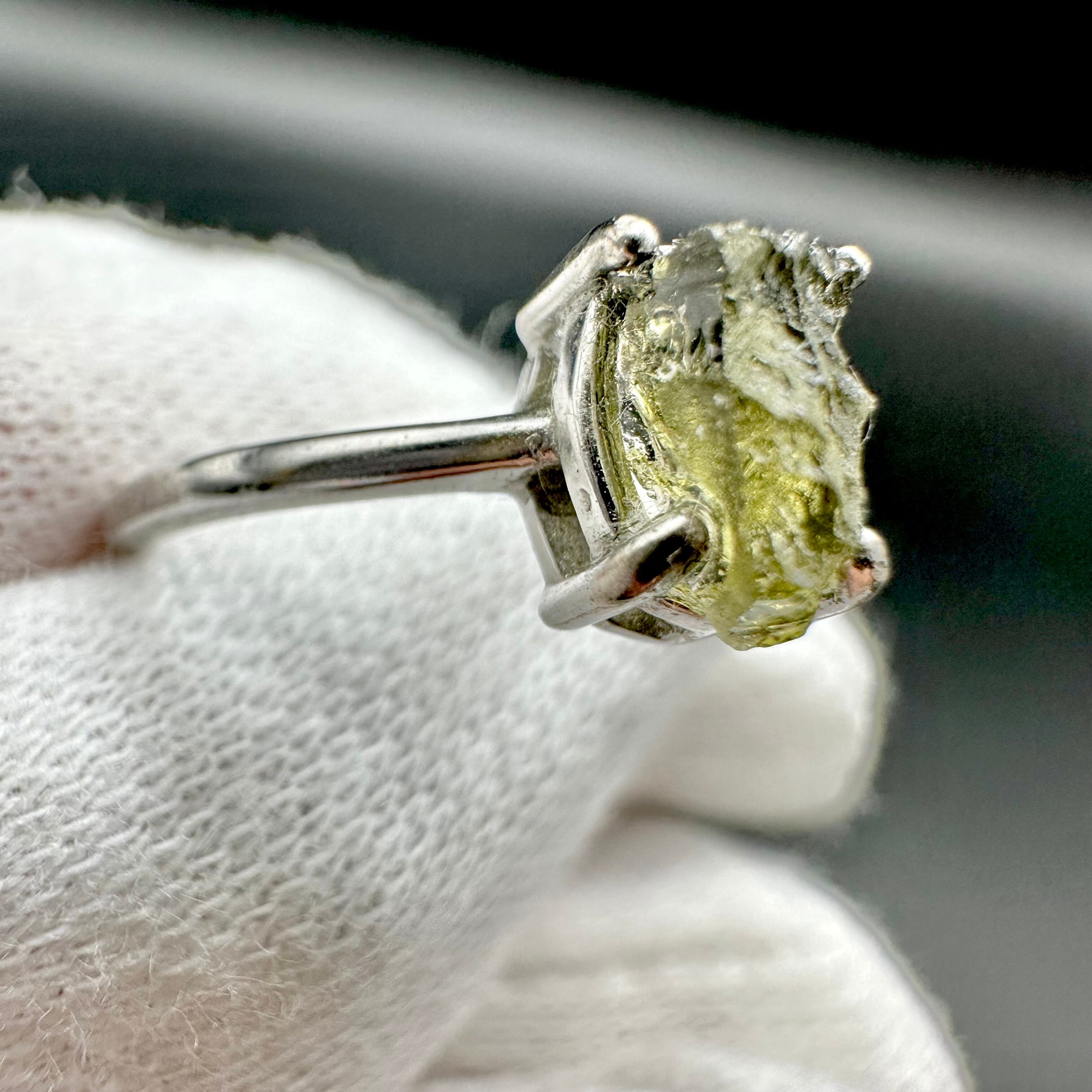今回は小さいながらもしっかりとモルダバイトのグリーンが楽しめる原石をリングに仕立てました。
