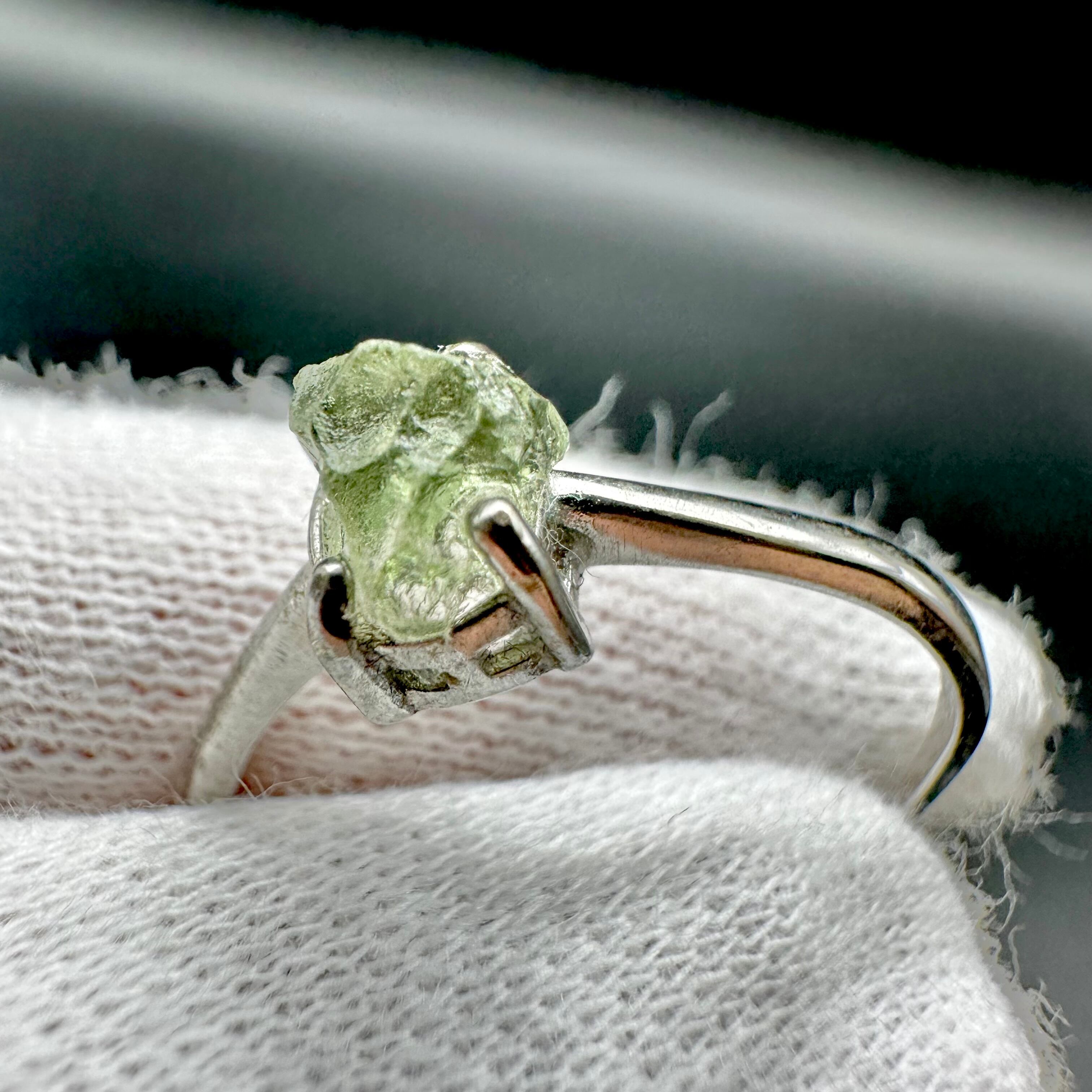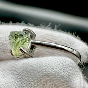 今回は小さいながらもしっかりとモルダバイトのグリーンが楽しめる原石をリングに仕立てました。