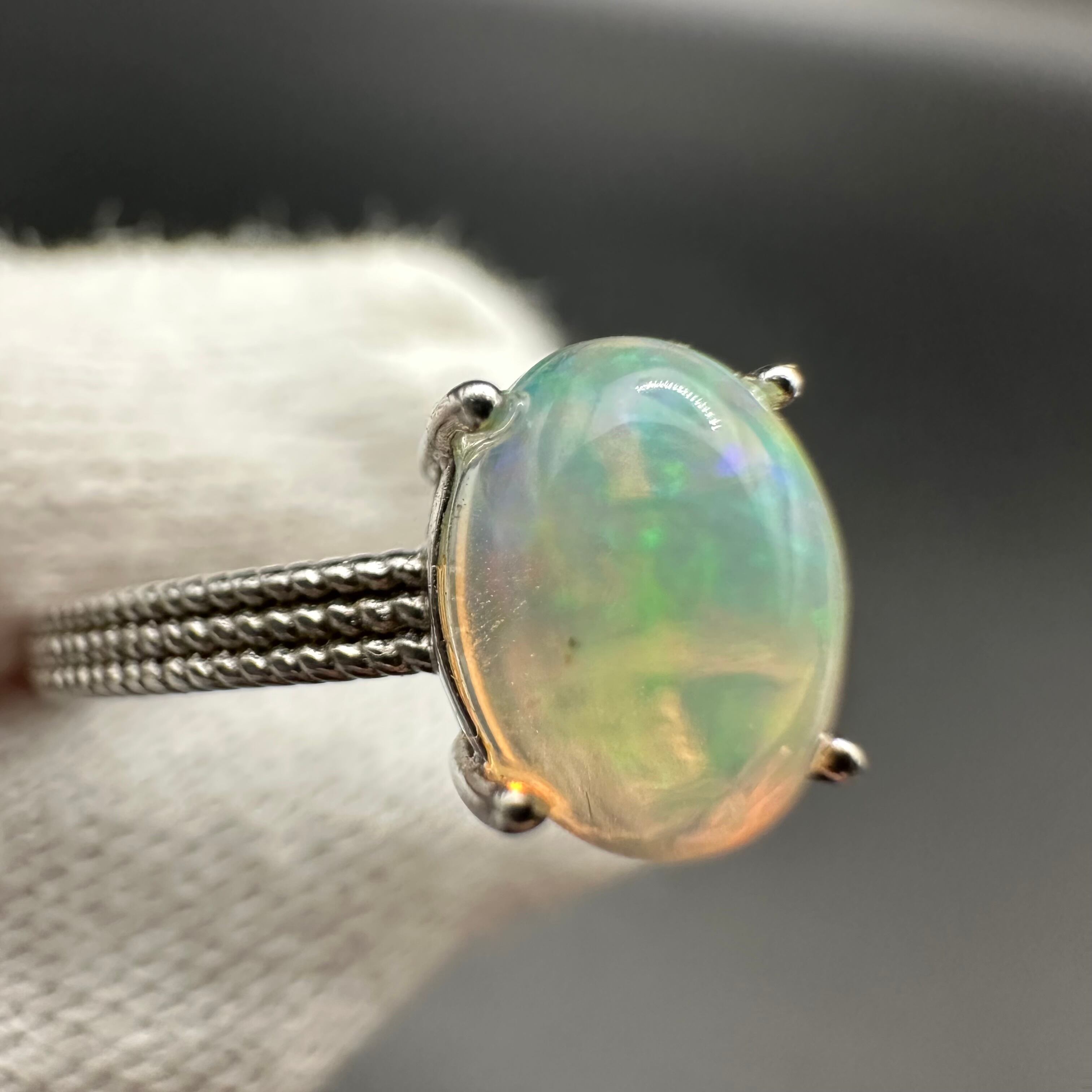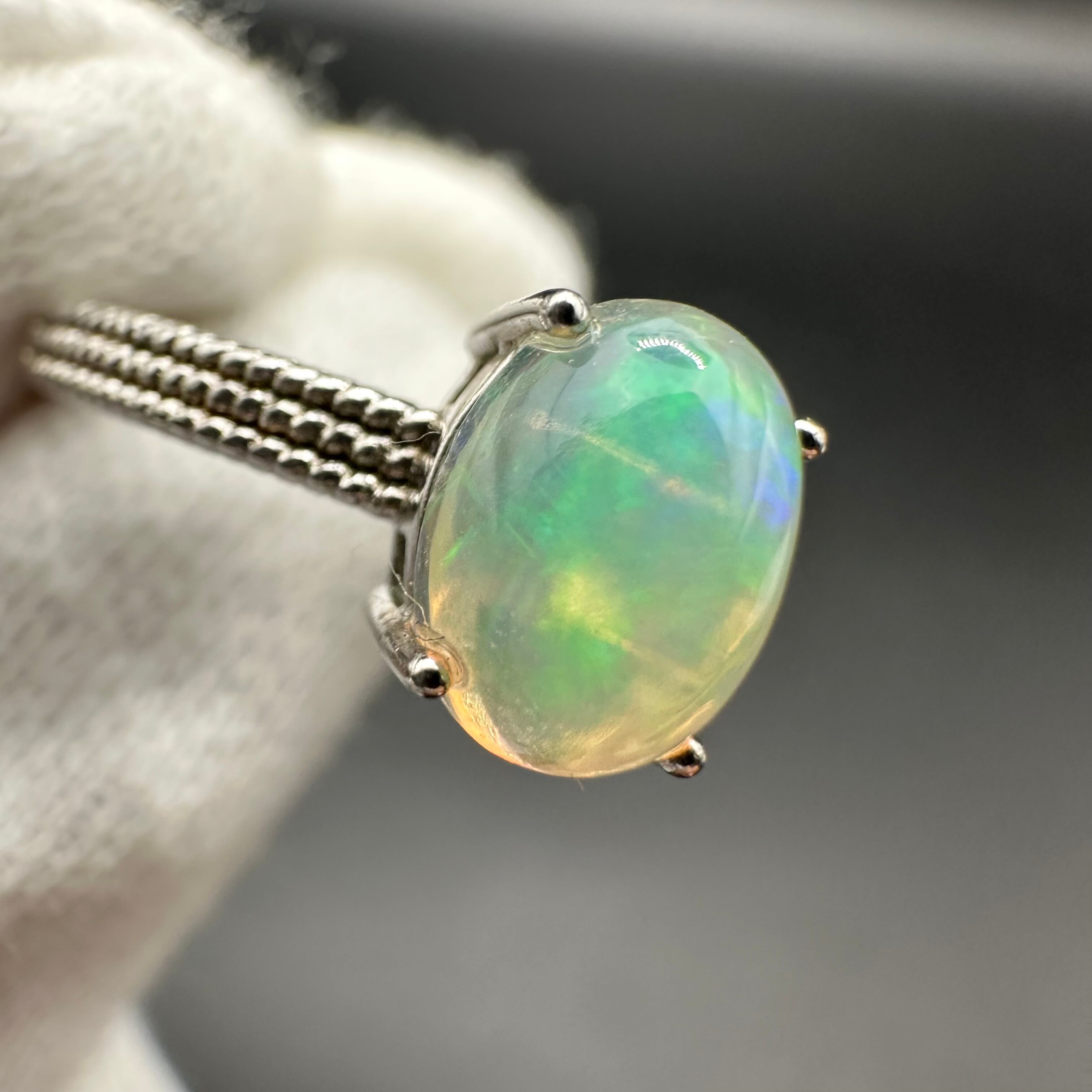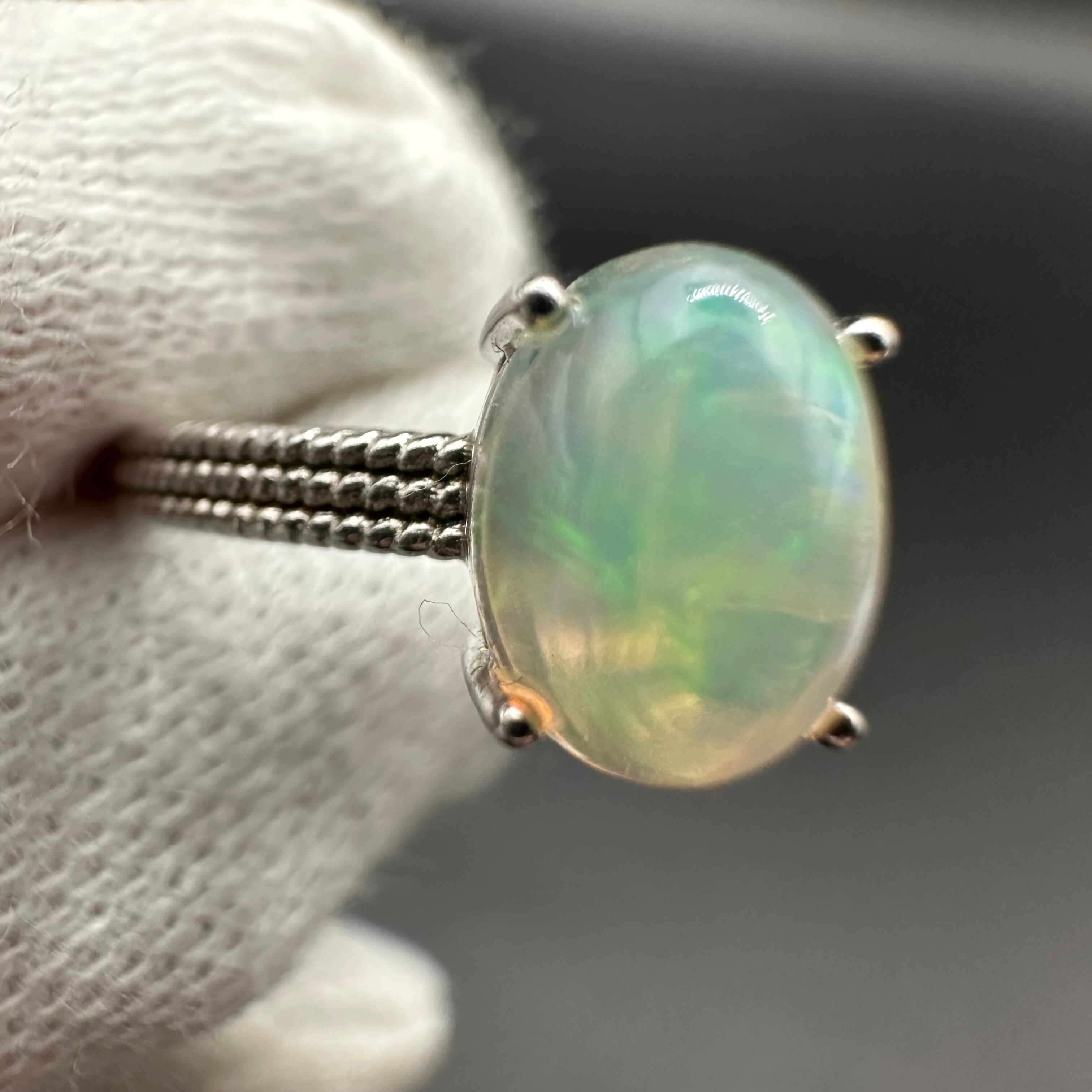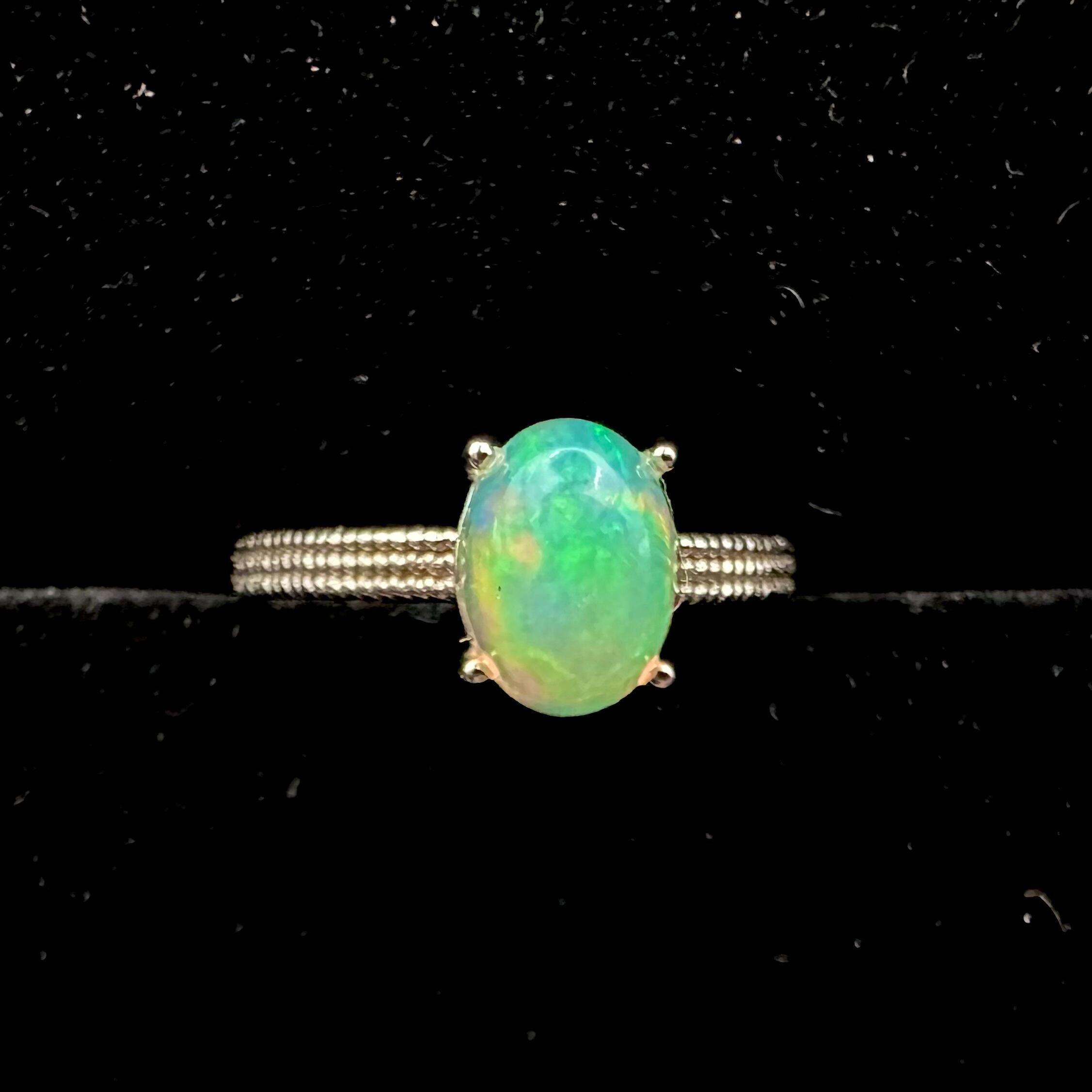 大き目の遊色がものすごく美しいエチオピア産のプレシャスオパールをシンプルに仕立てたオススメのリングです。