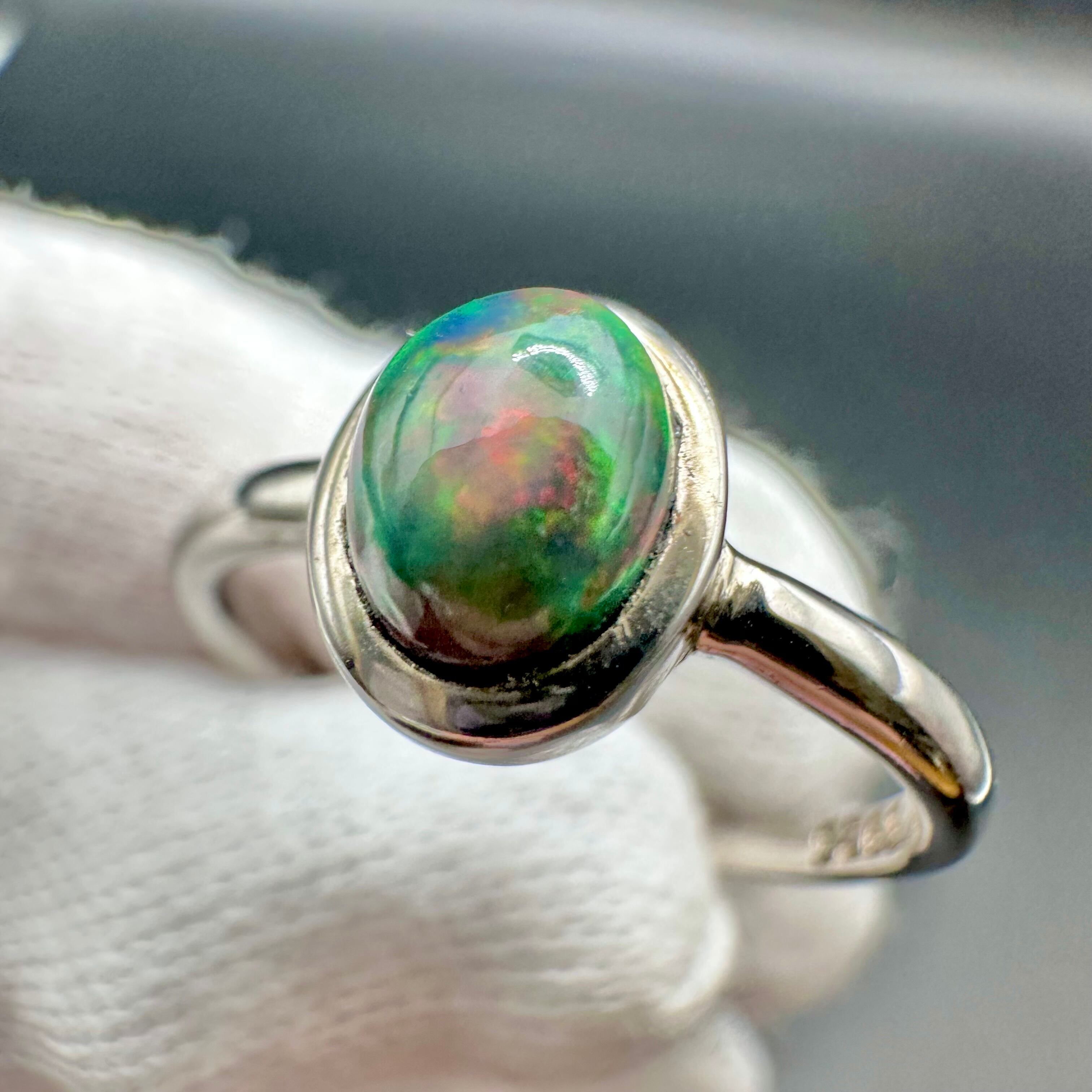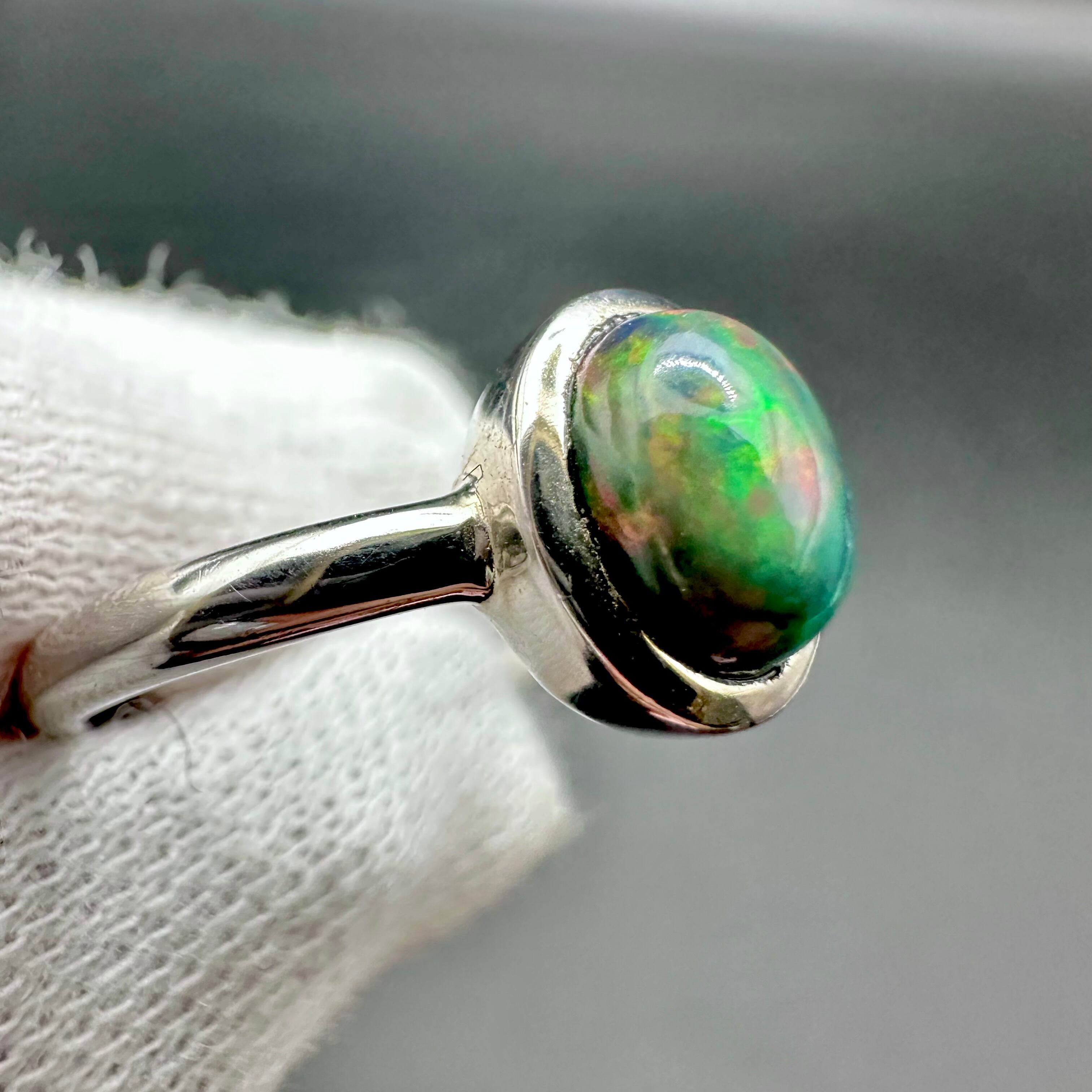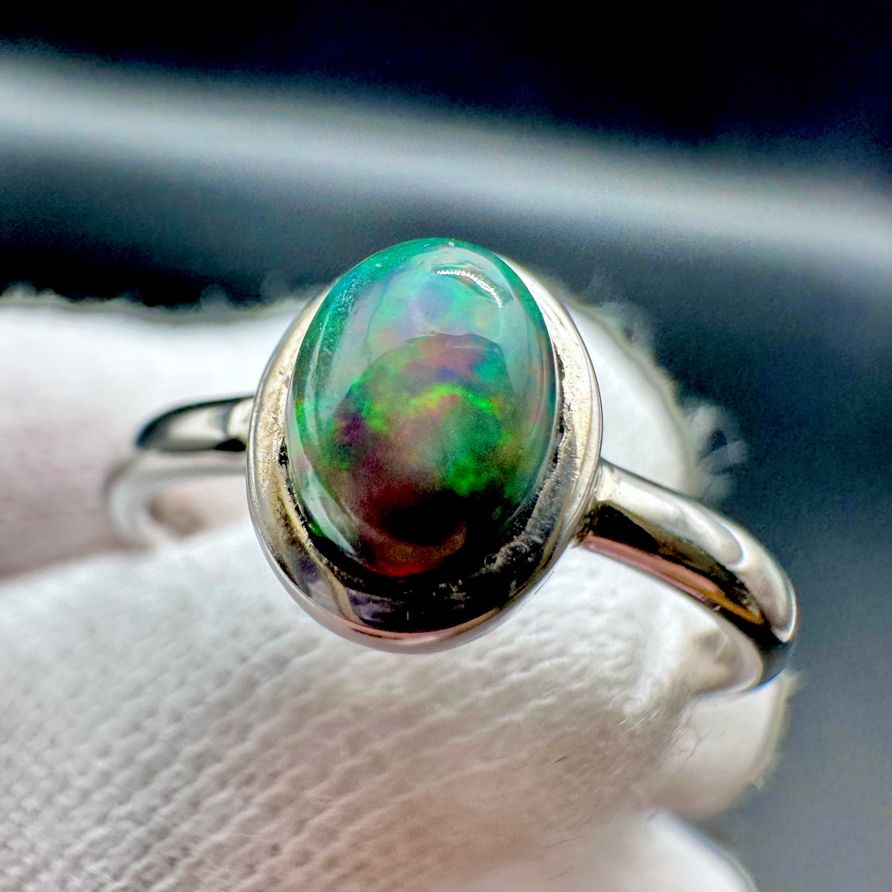 大き目の遊色がものすごく美しいエチオピア産のブラックオパールをシンプルに仕立てたオススメのリングです。