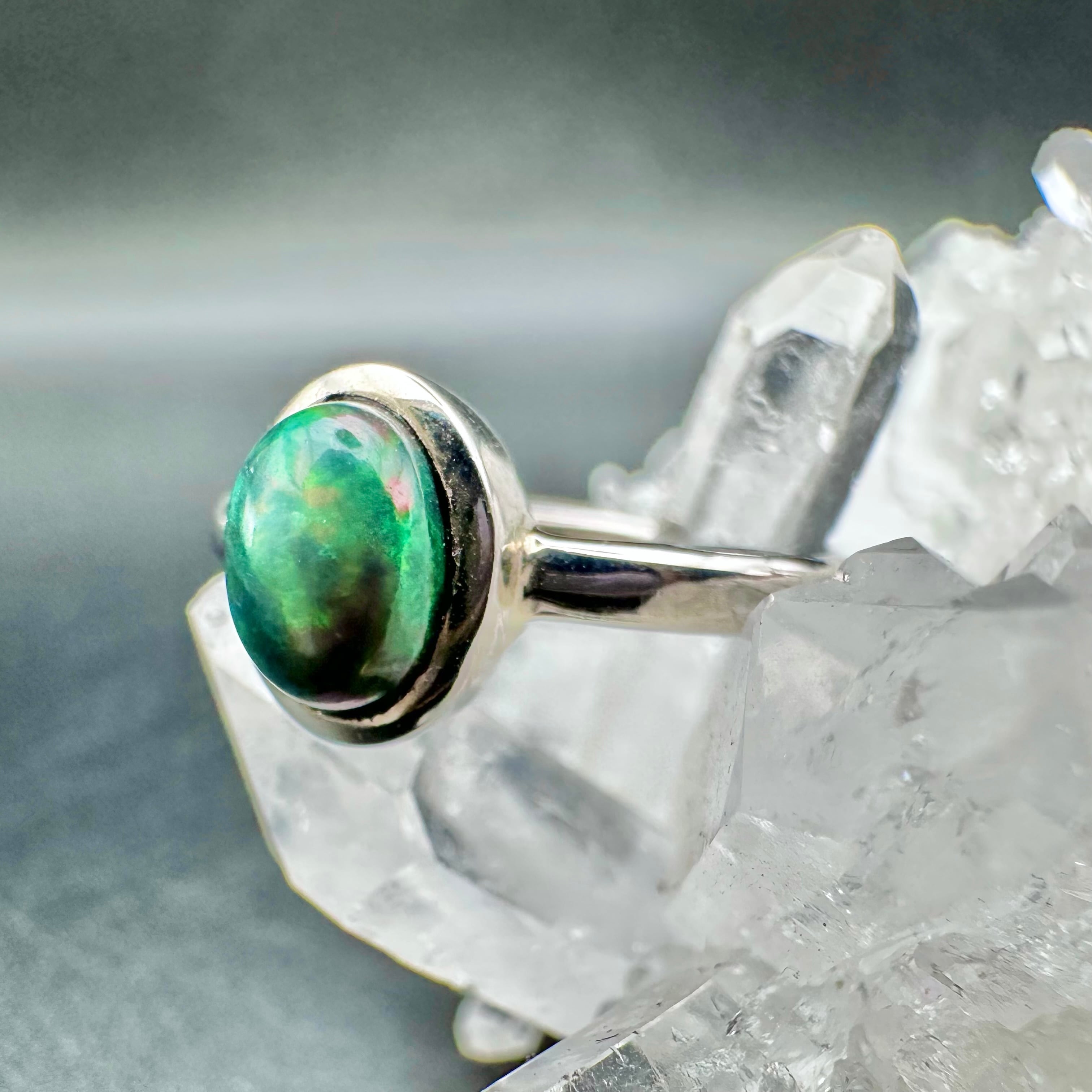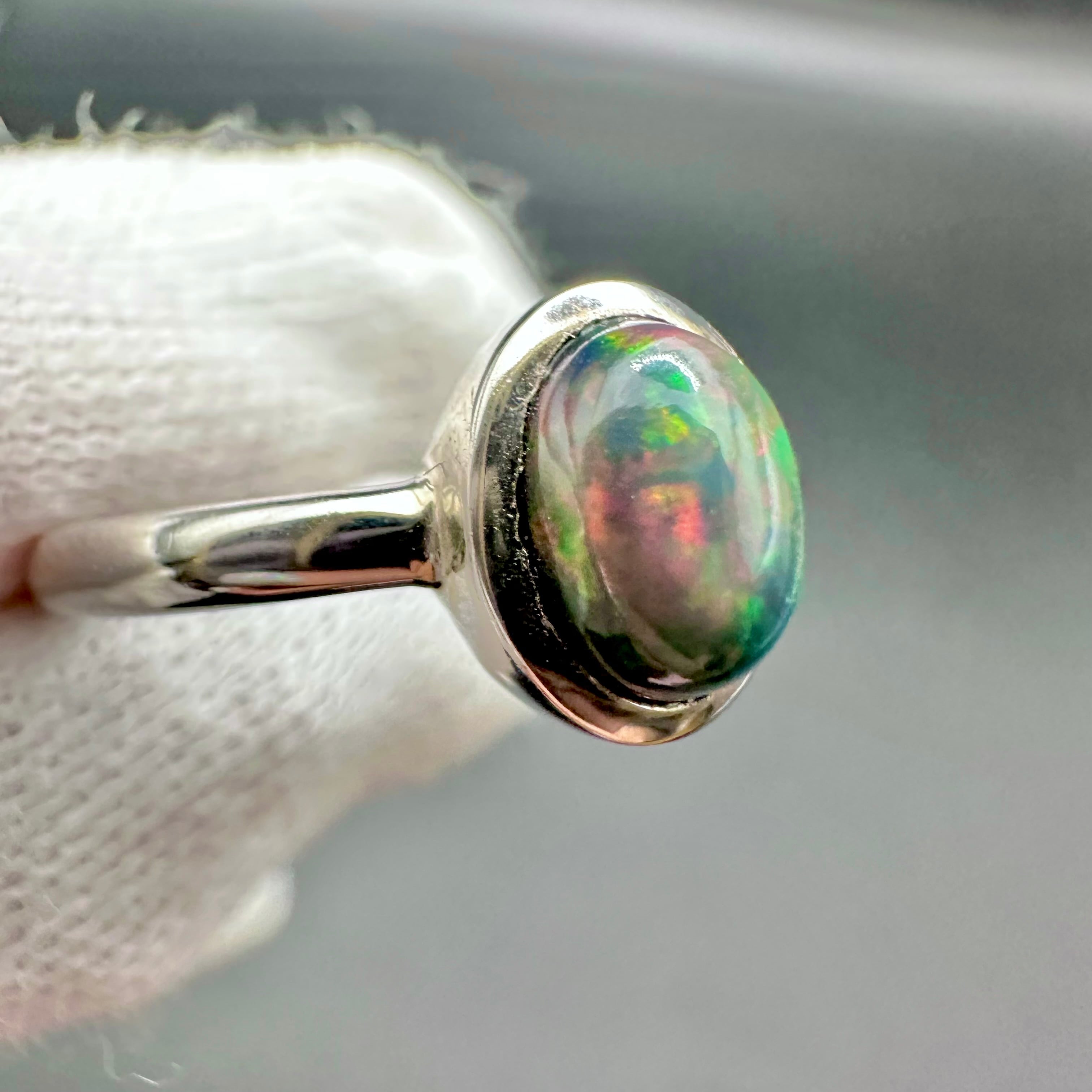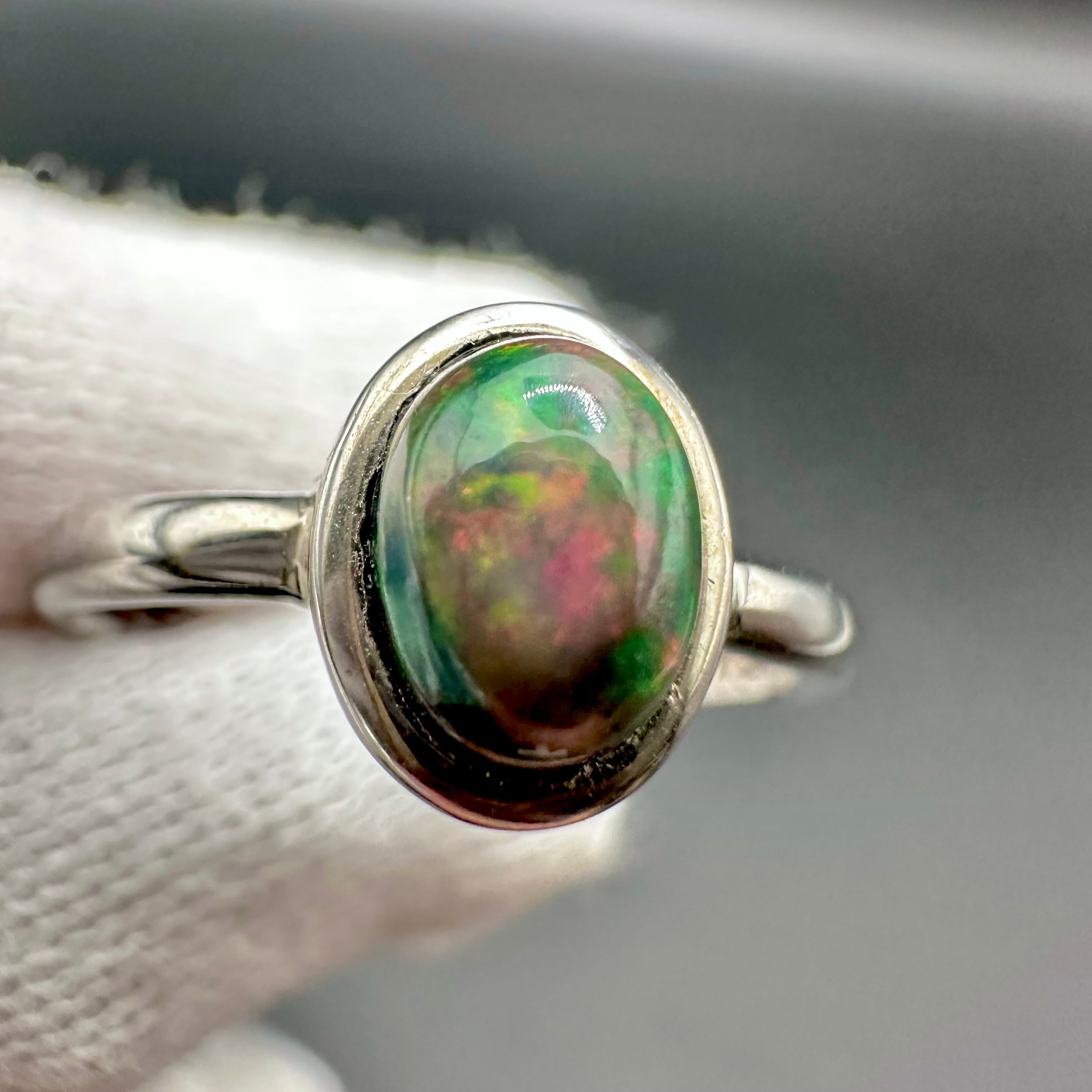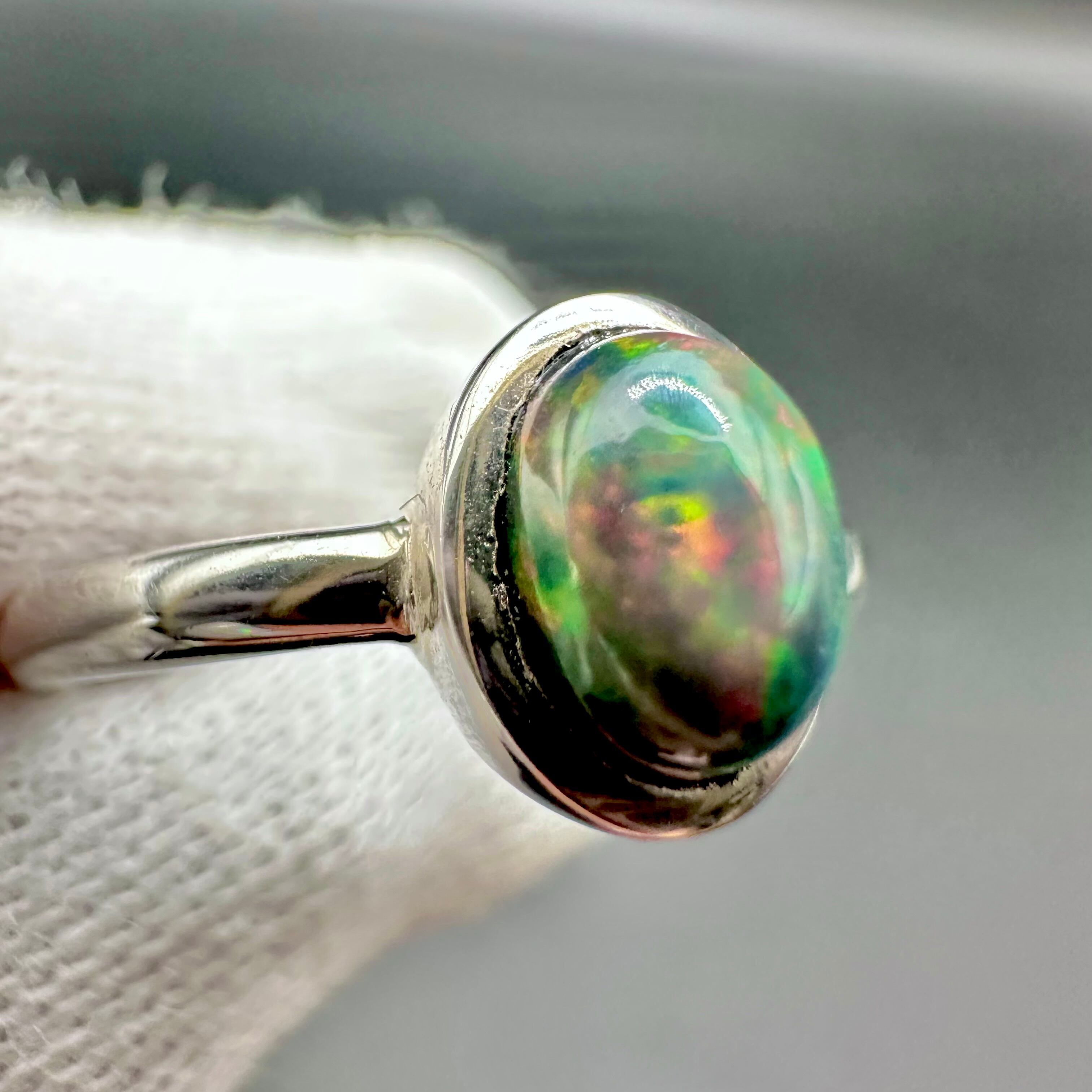 大き目の遊色がものすごく美しいエチオピア産のブラックオパールをシンプルに仕立てたオススメのリングです。