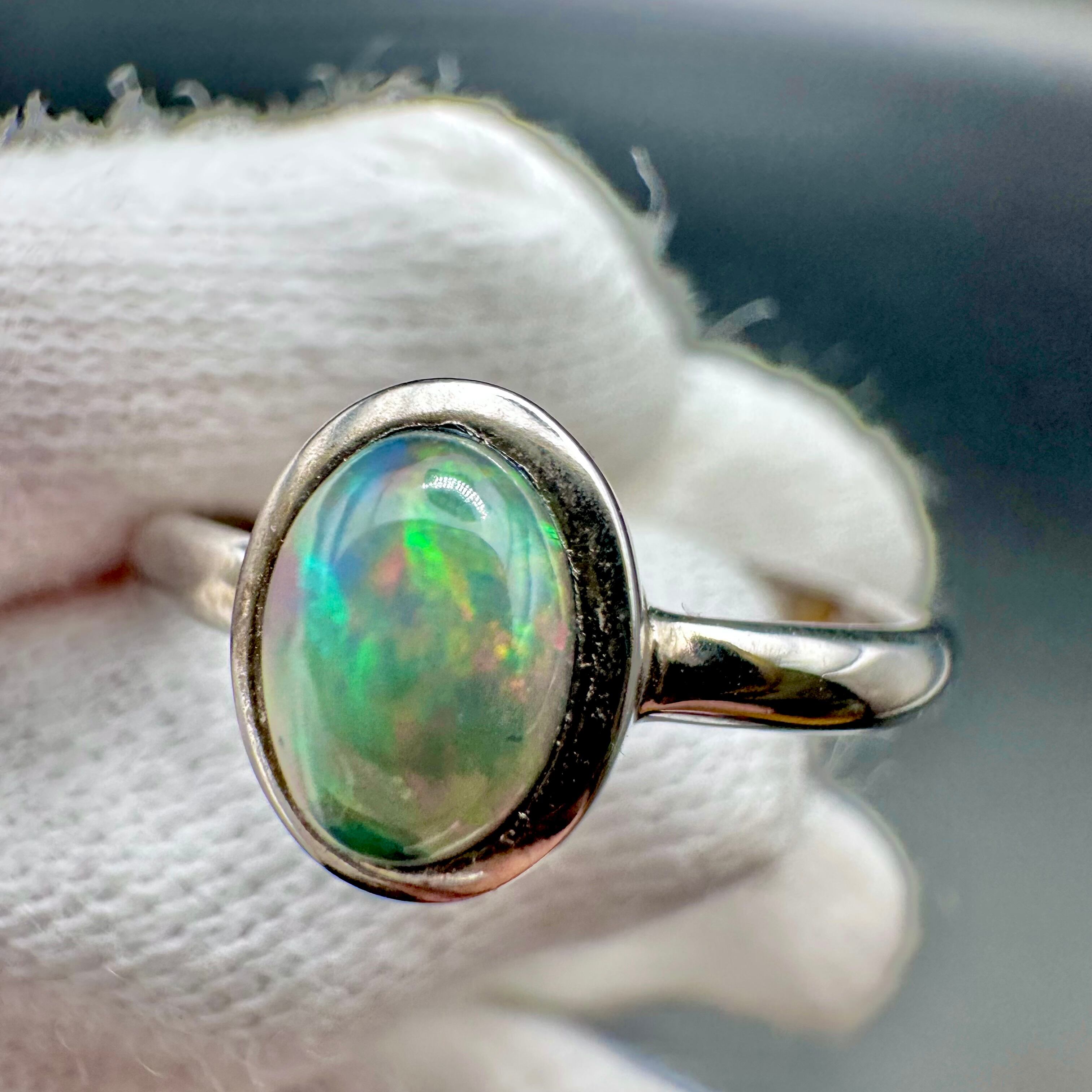 大き目の遊色がものすごく美しいエチオピア産のブラックオパールをシンプルに仕立てたオススメのリングです。