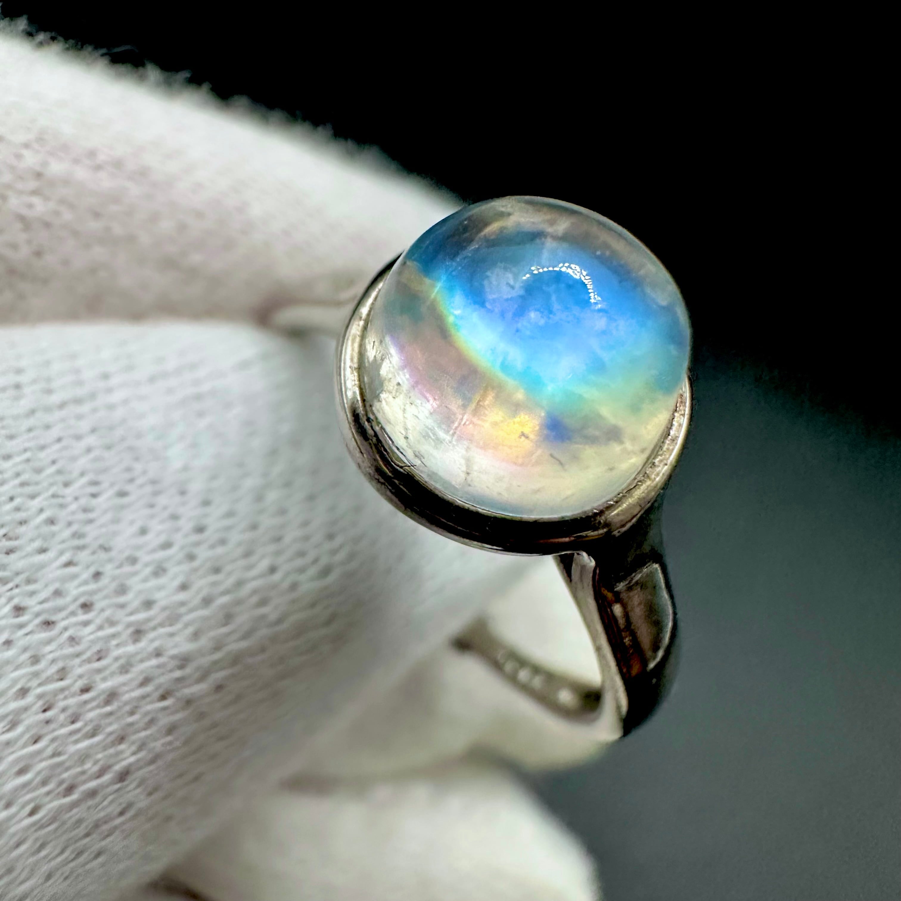 こちらのリングはルースにブルーやイエローなどのシラーがとても強く見られ、透明感も非常に高く本当に美しいです。