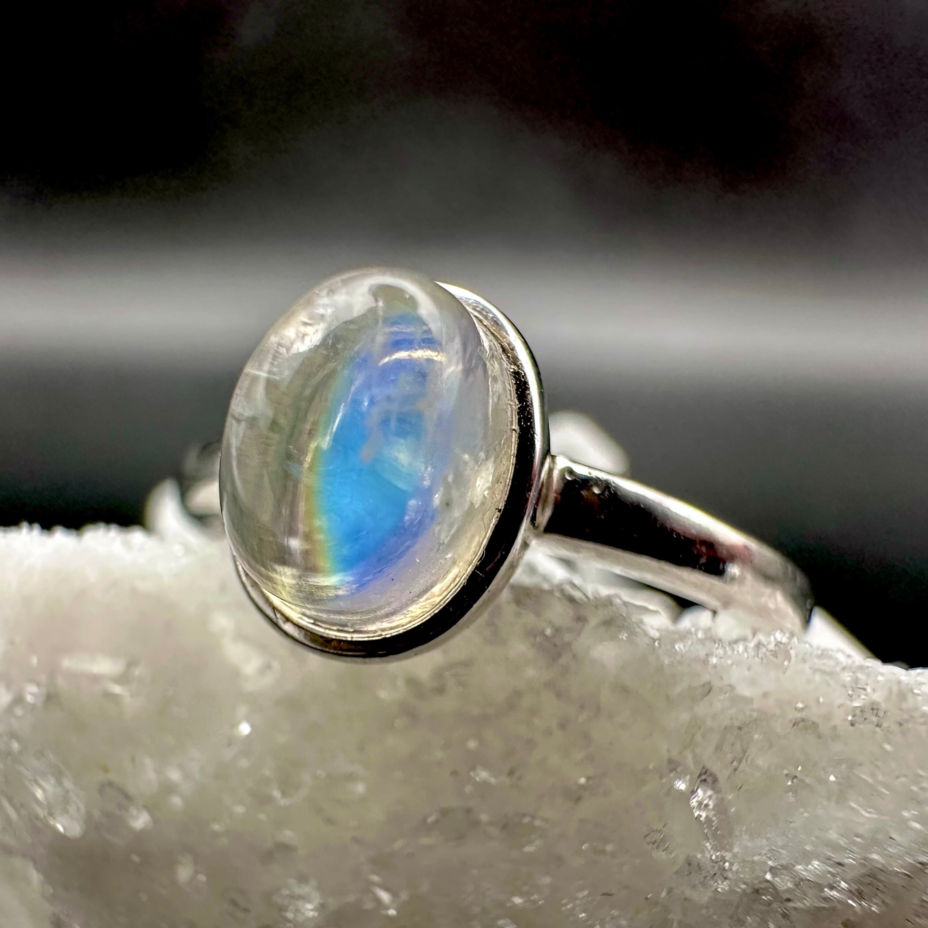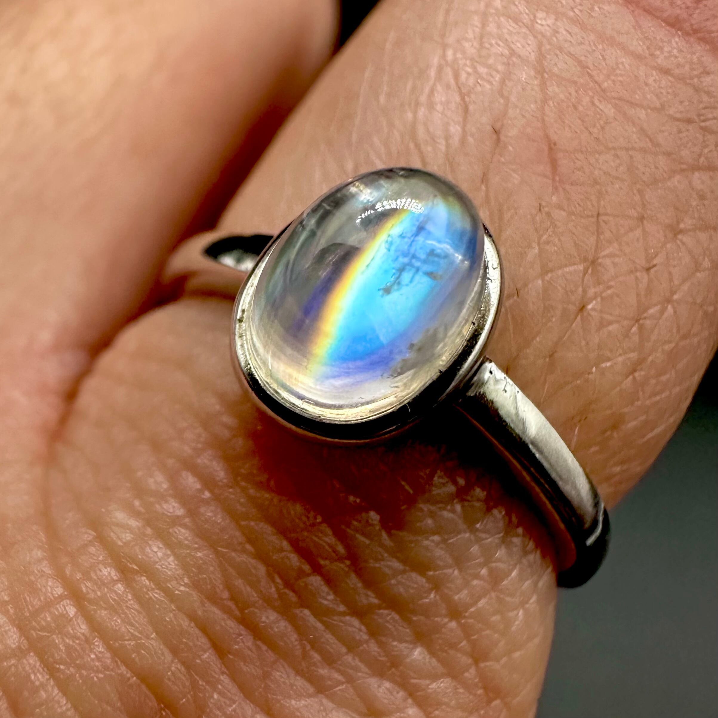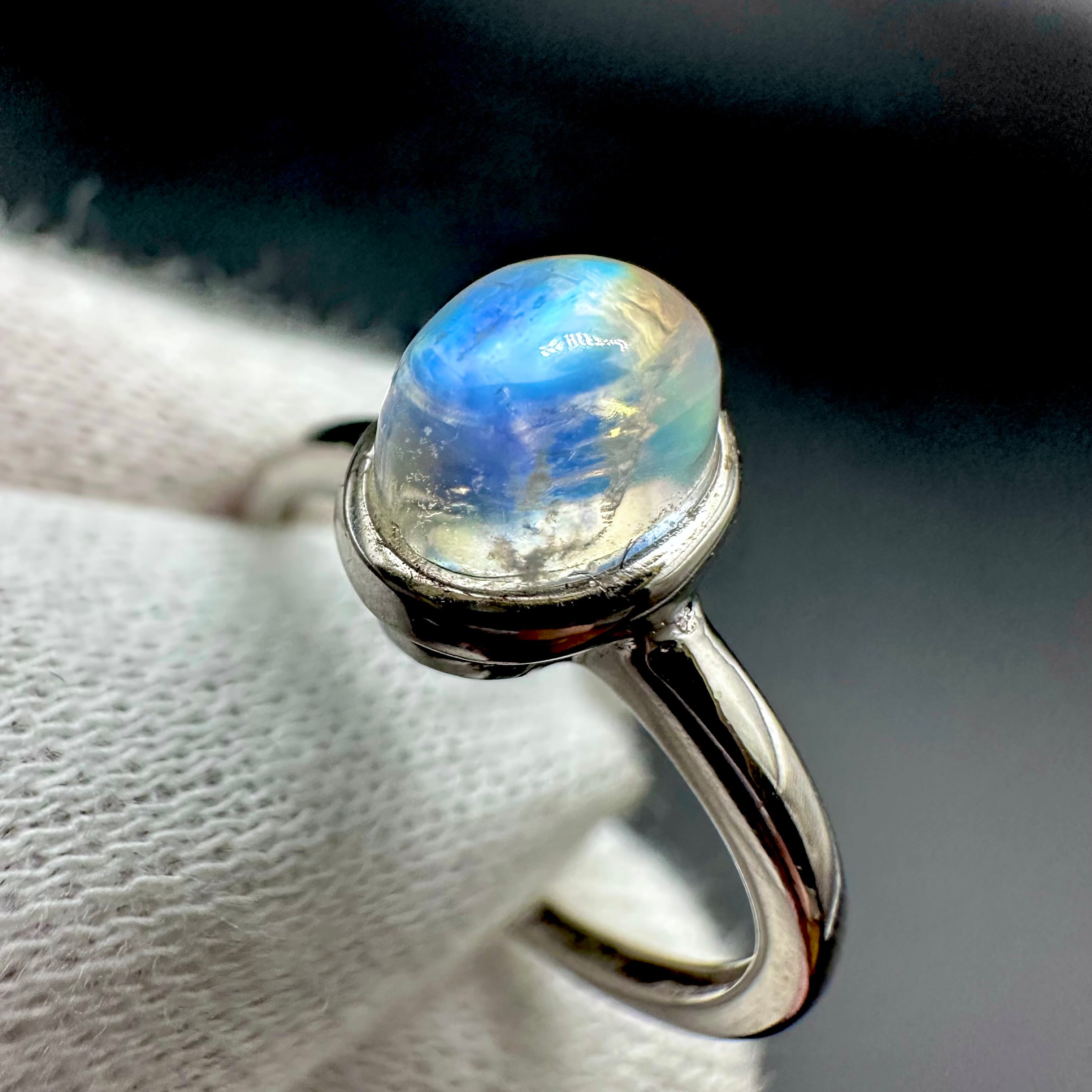 こちらのリングはルースのセンターにレインボーのシラーがとても強く見られ、透明感も非常に高く本当に美しいです。
