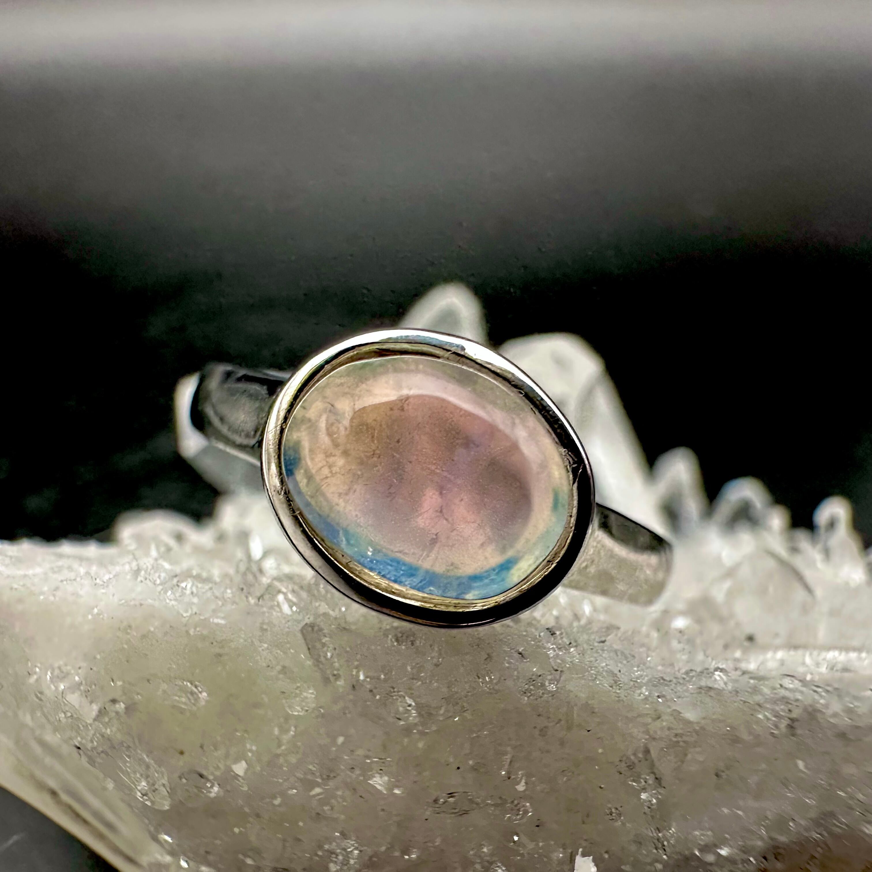 こちらのリングはブルーをメインにシラーがとても強く見られ、透明感も非常に高く本当に美しいです。