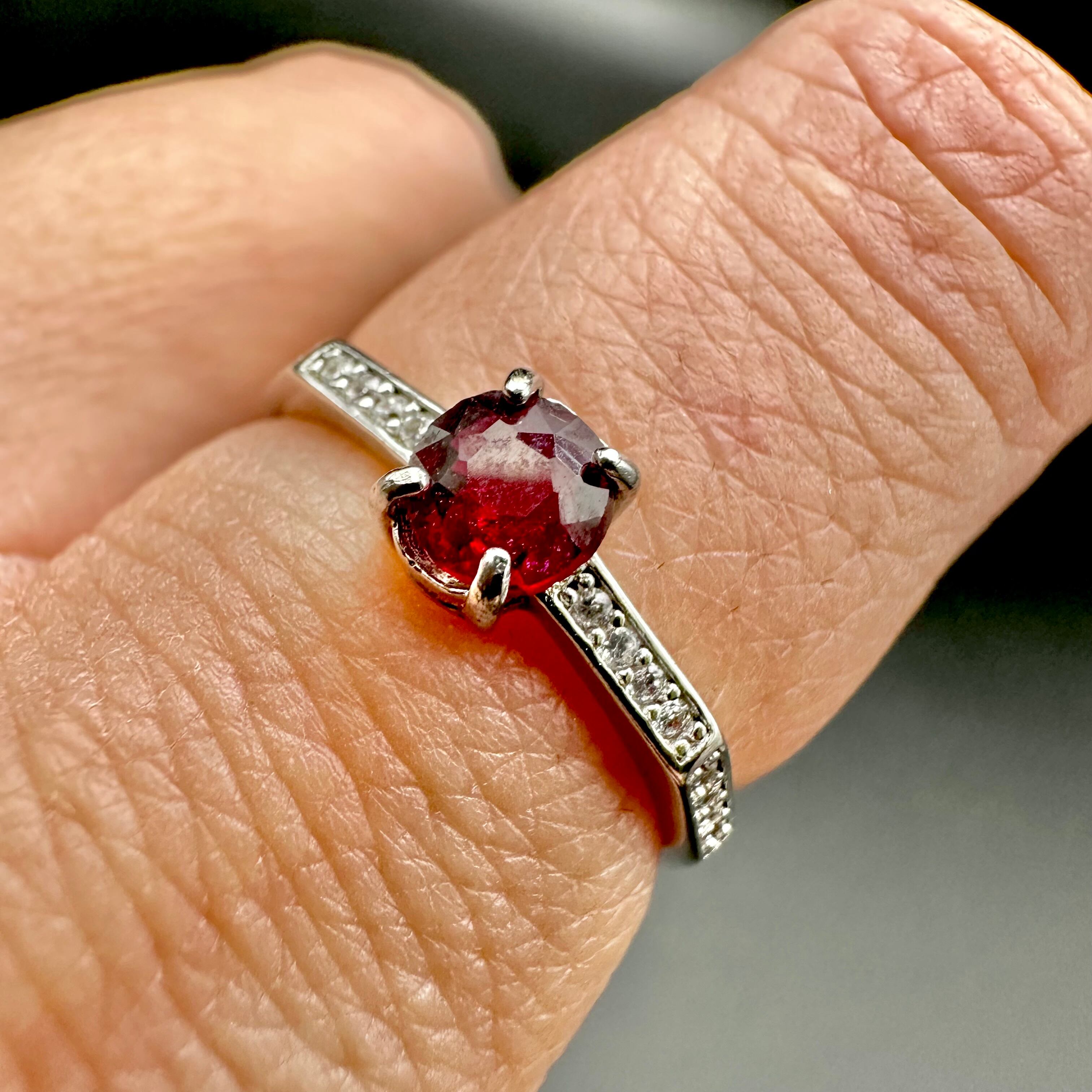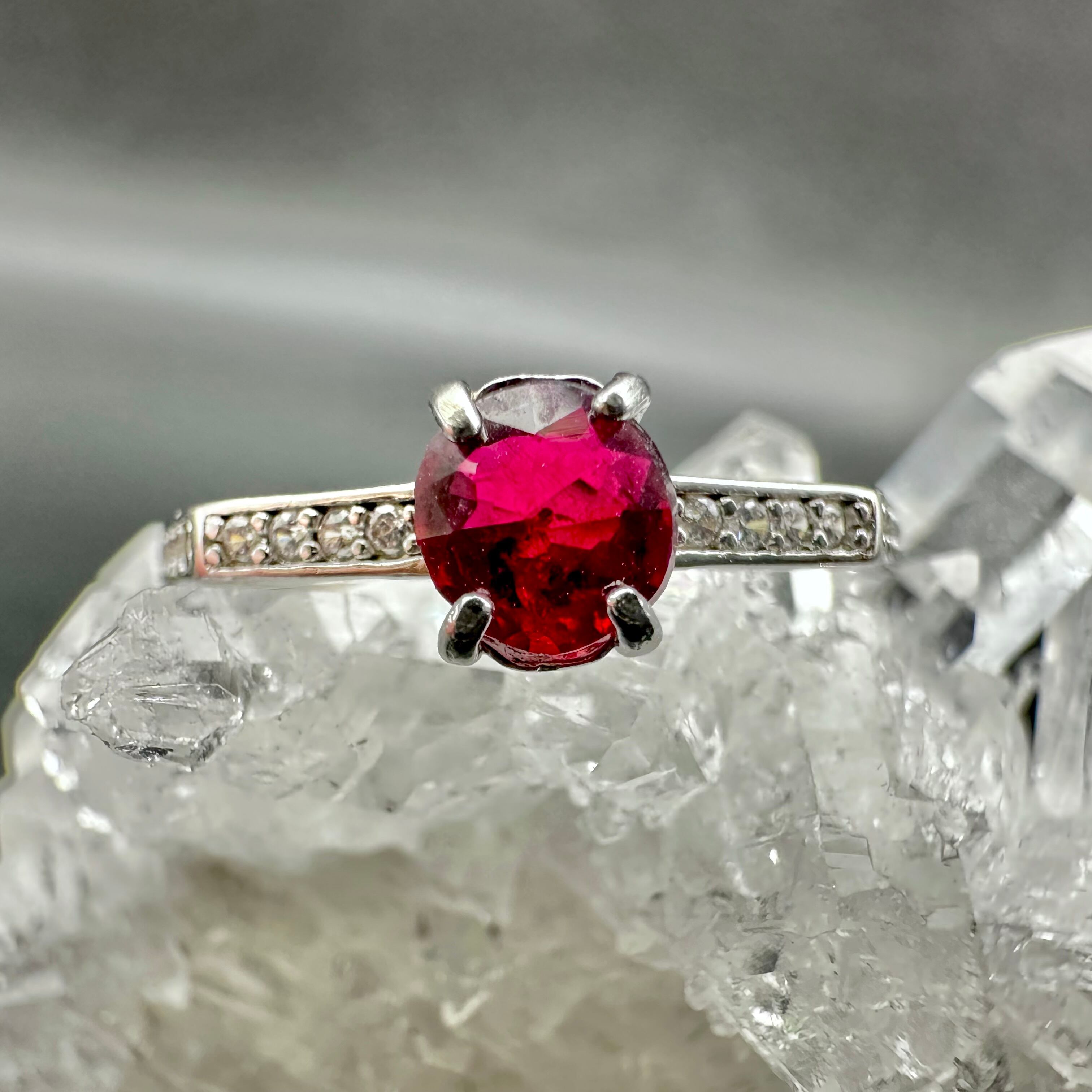 ルビーは、コランダムの変種で、ダイヤモンドに次ぐ硬度を持ち、語源はラテン語で「赤」を意味する「ルベウス」 (rubeus) に由来します。