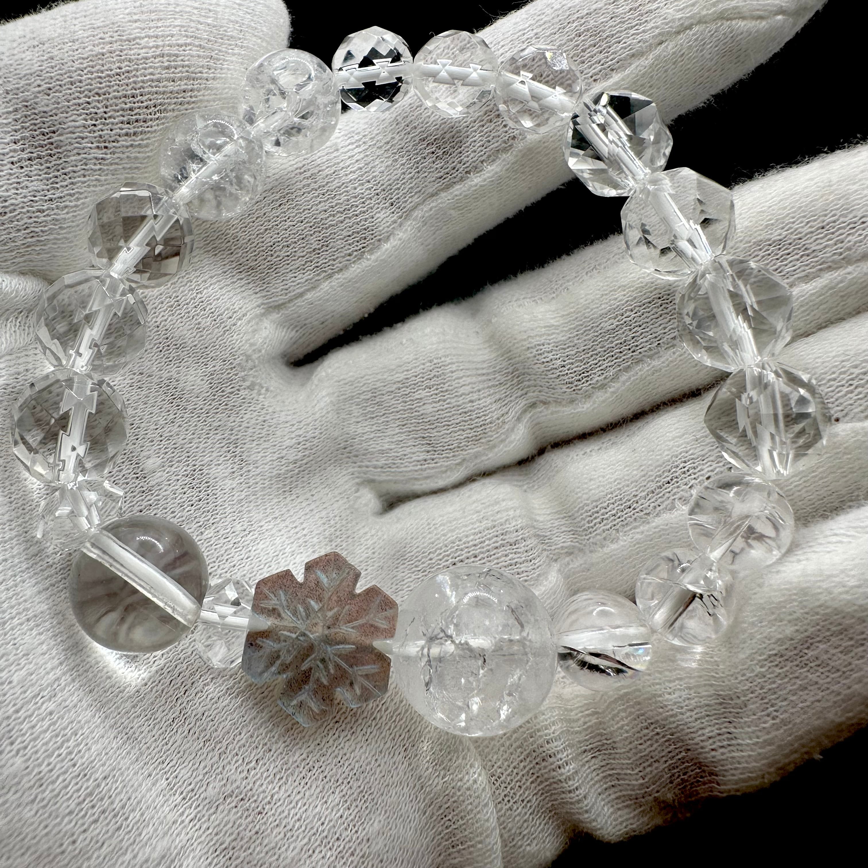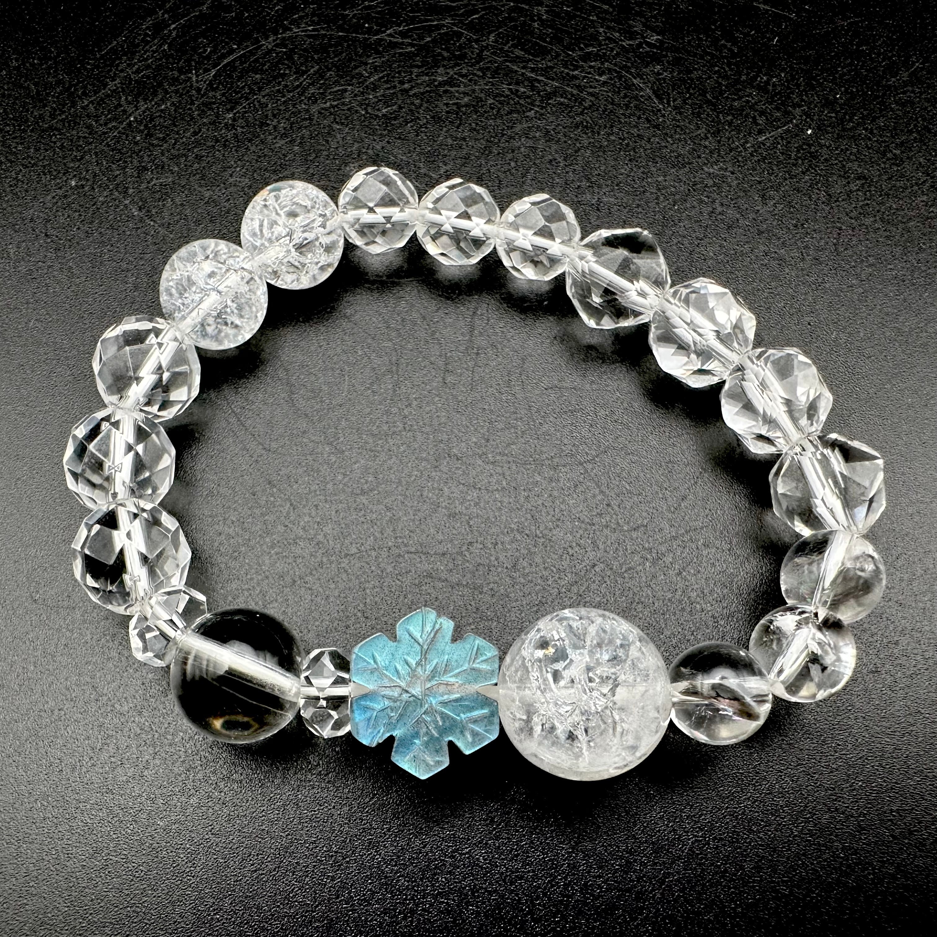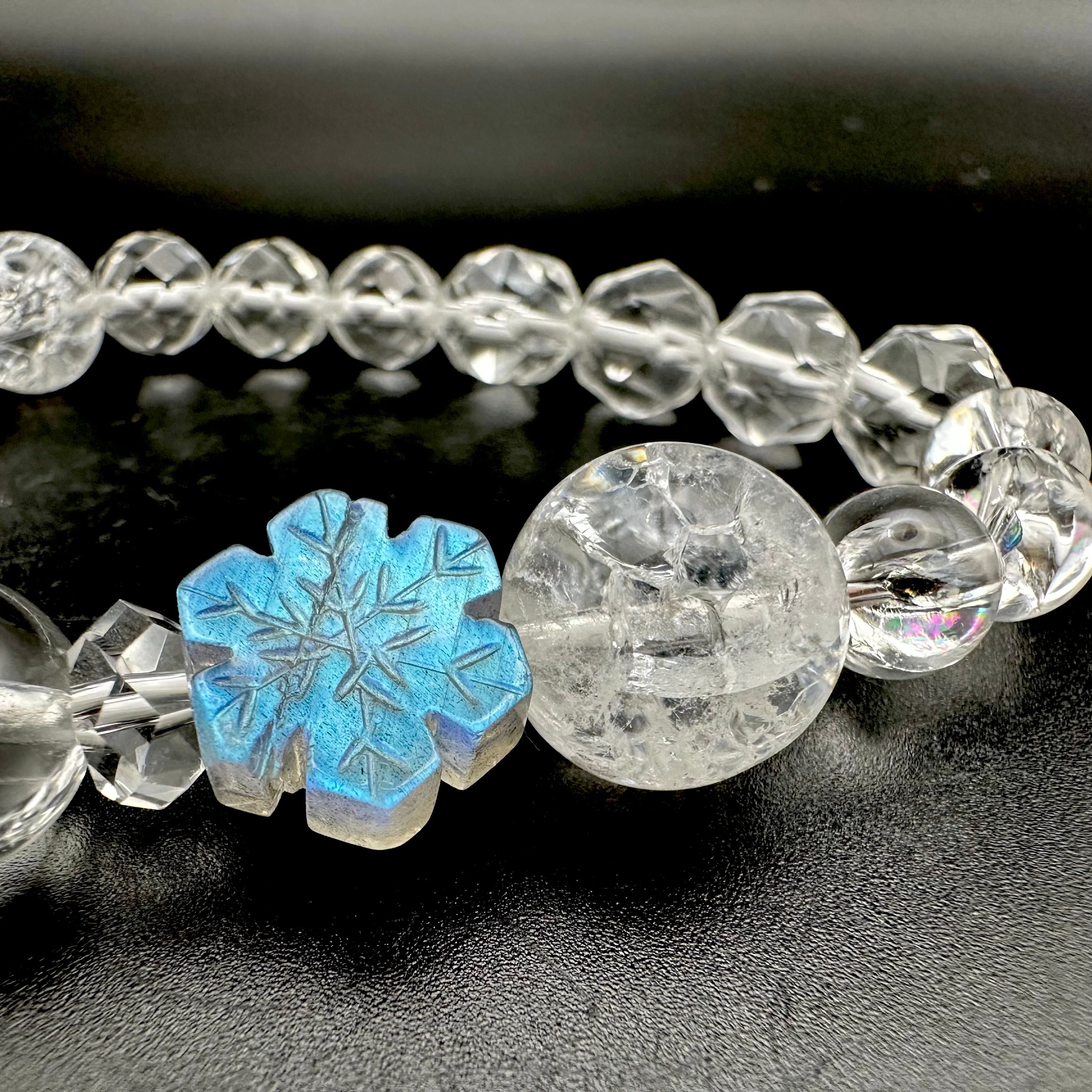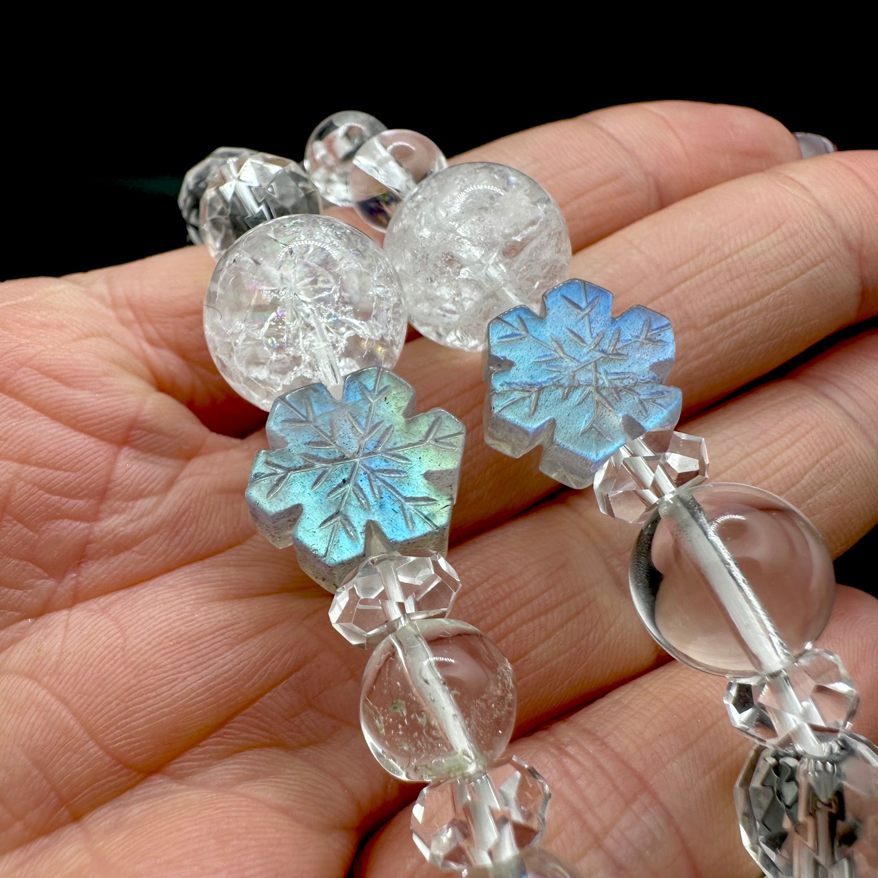 これからの季節にピッタリな雪の結晶をモチーフにしたラブラドライトを使ったデザインブレスレットです。