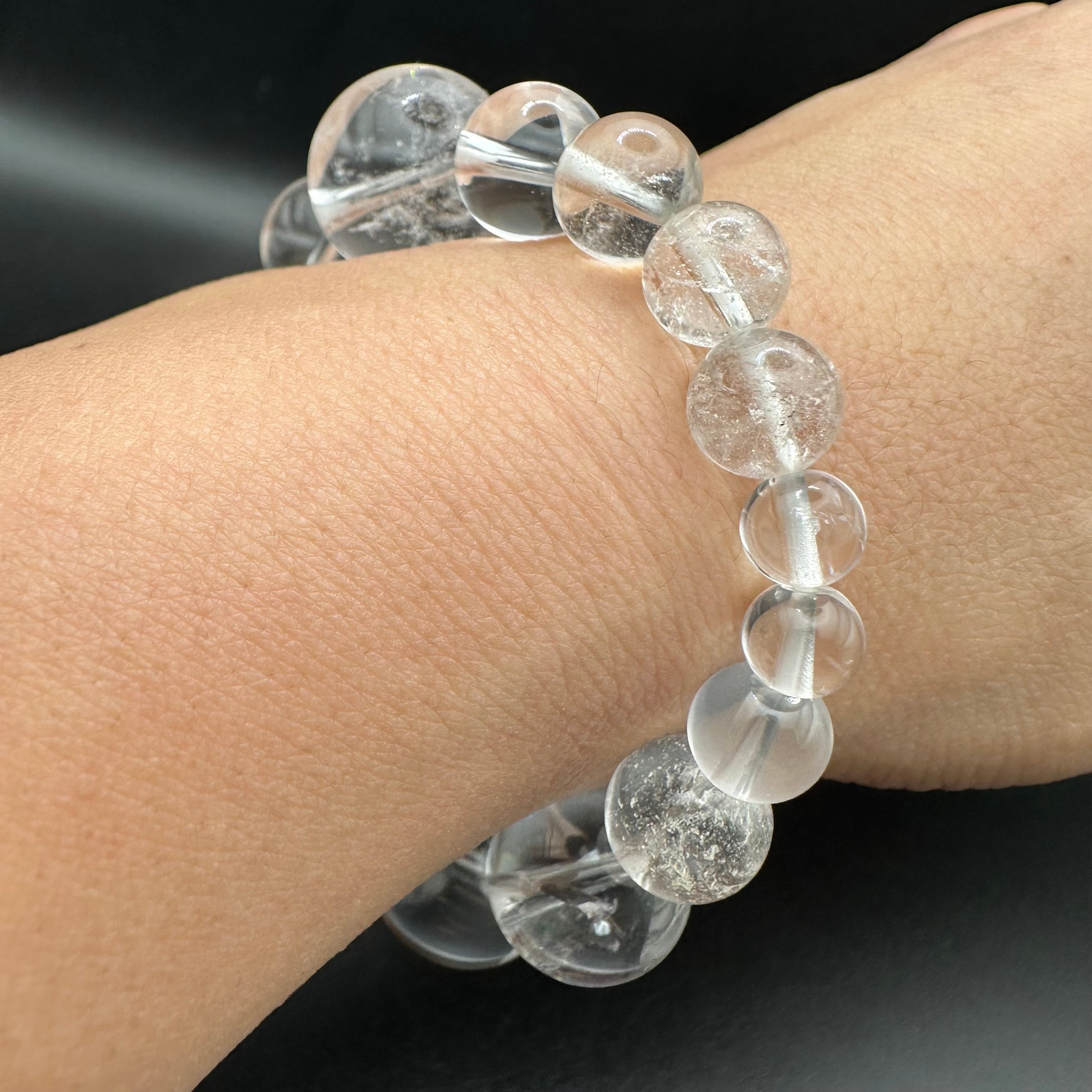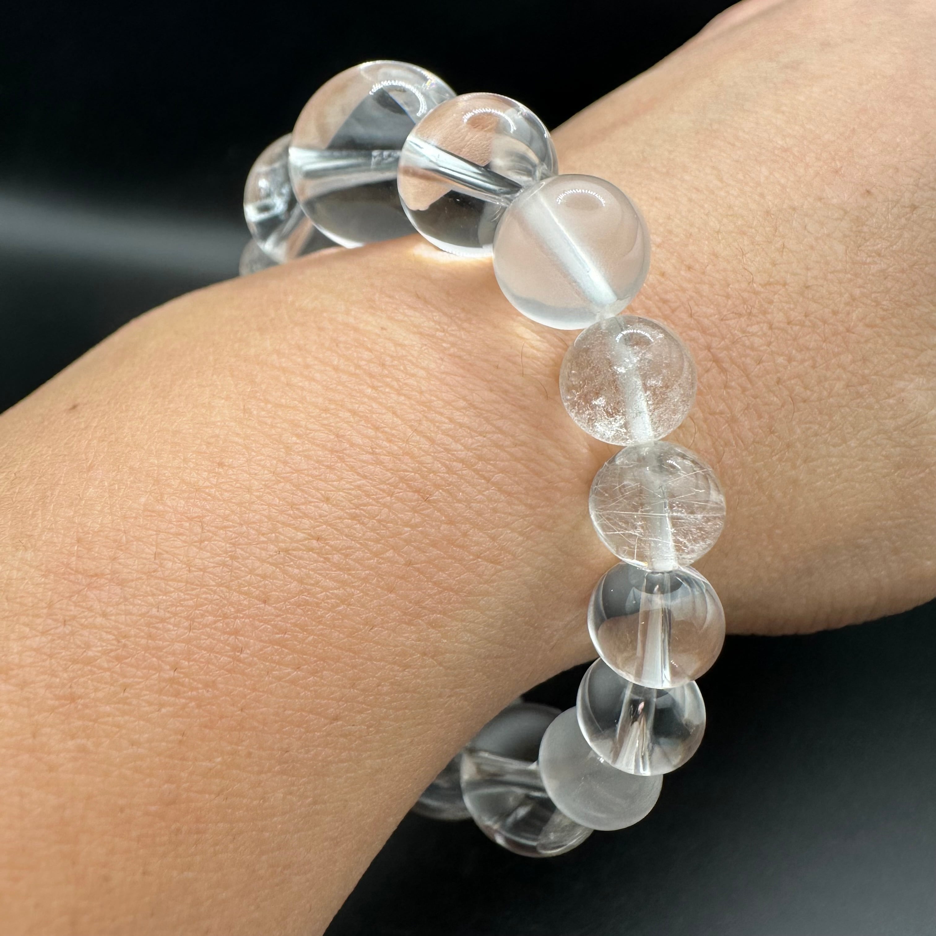 着ける場所により全く違った表情の水晶が見られるお気に入りのブレスレットが出来上がりました。