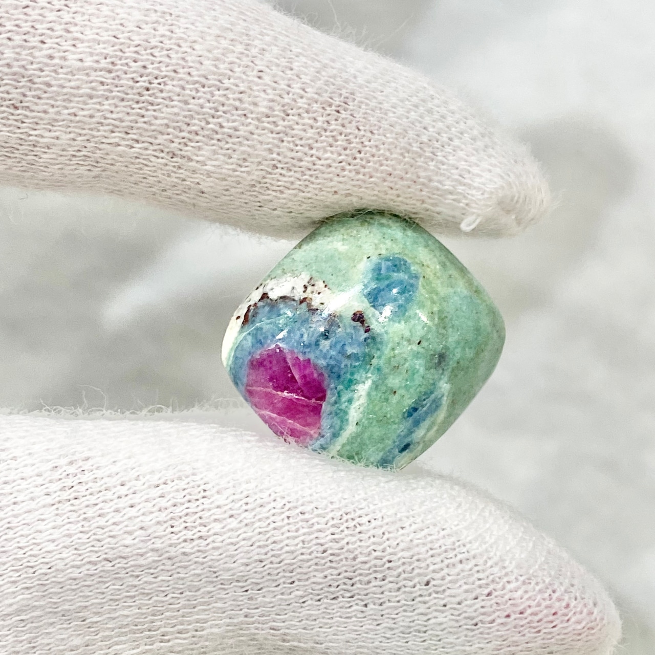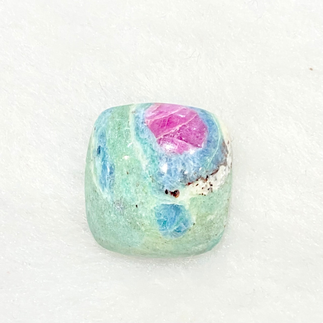 全体的にパステル系のカラーがすごく可愛いルースです。1番白っぽい所は雲母だと思われキラキラして見えます。