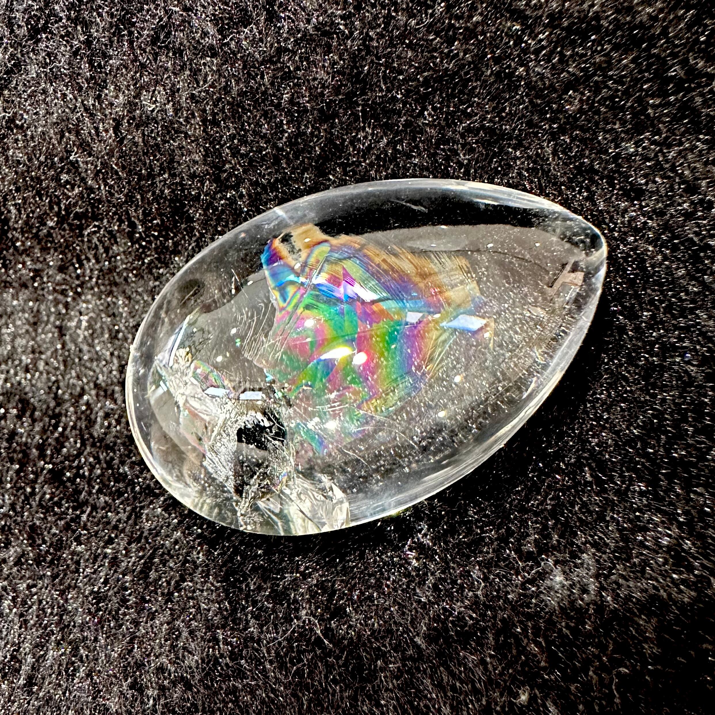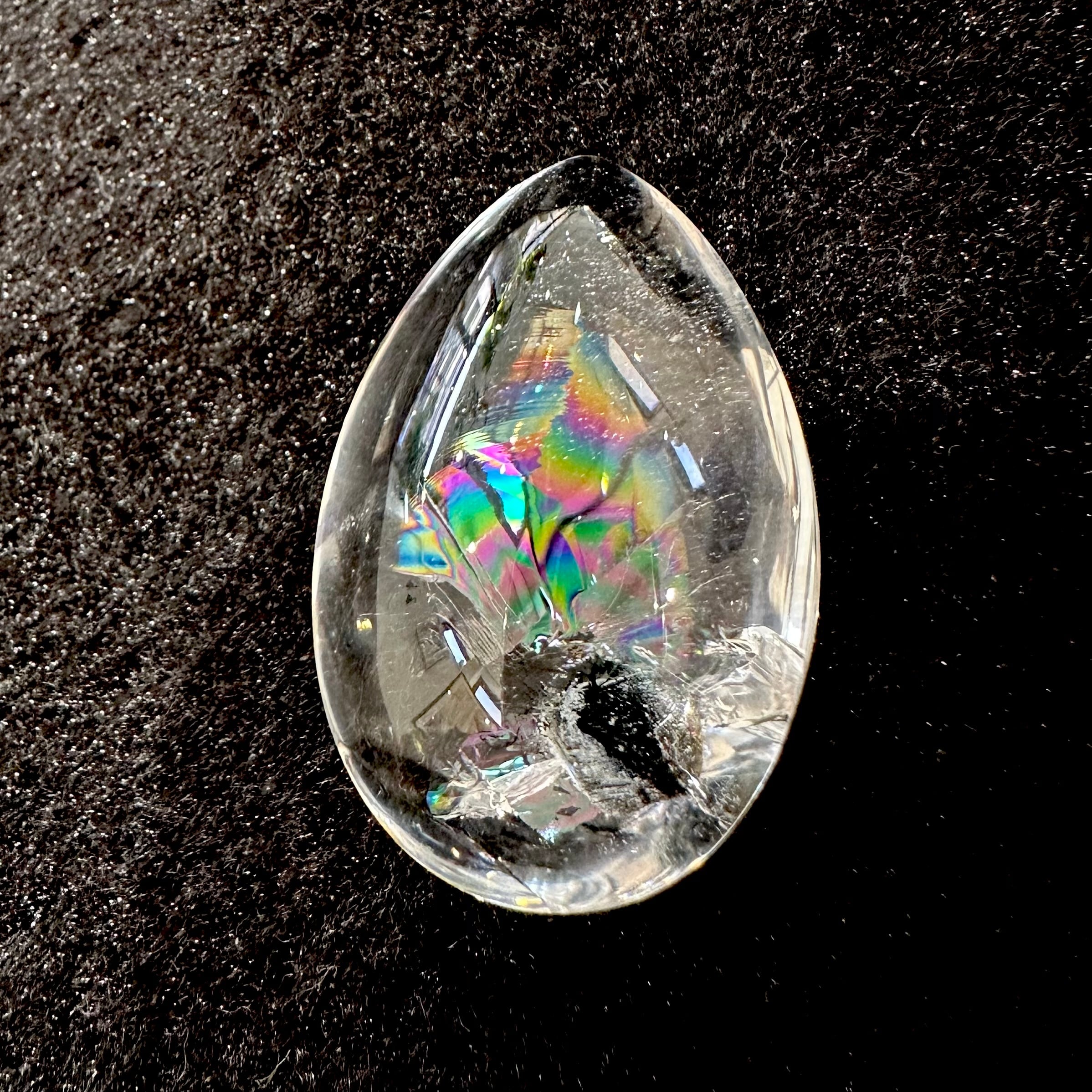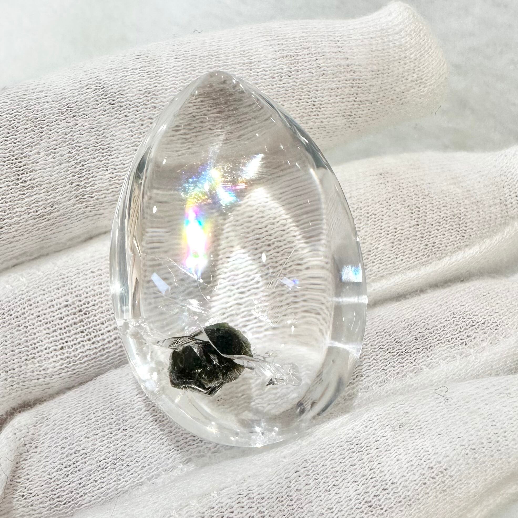 写真だと分かりにくいのですが、クローライトはとても深くキレイなグリーンで、そこを起点に虹が扇形の様に現れます。