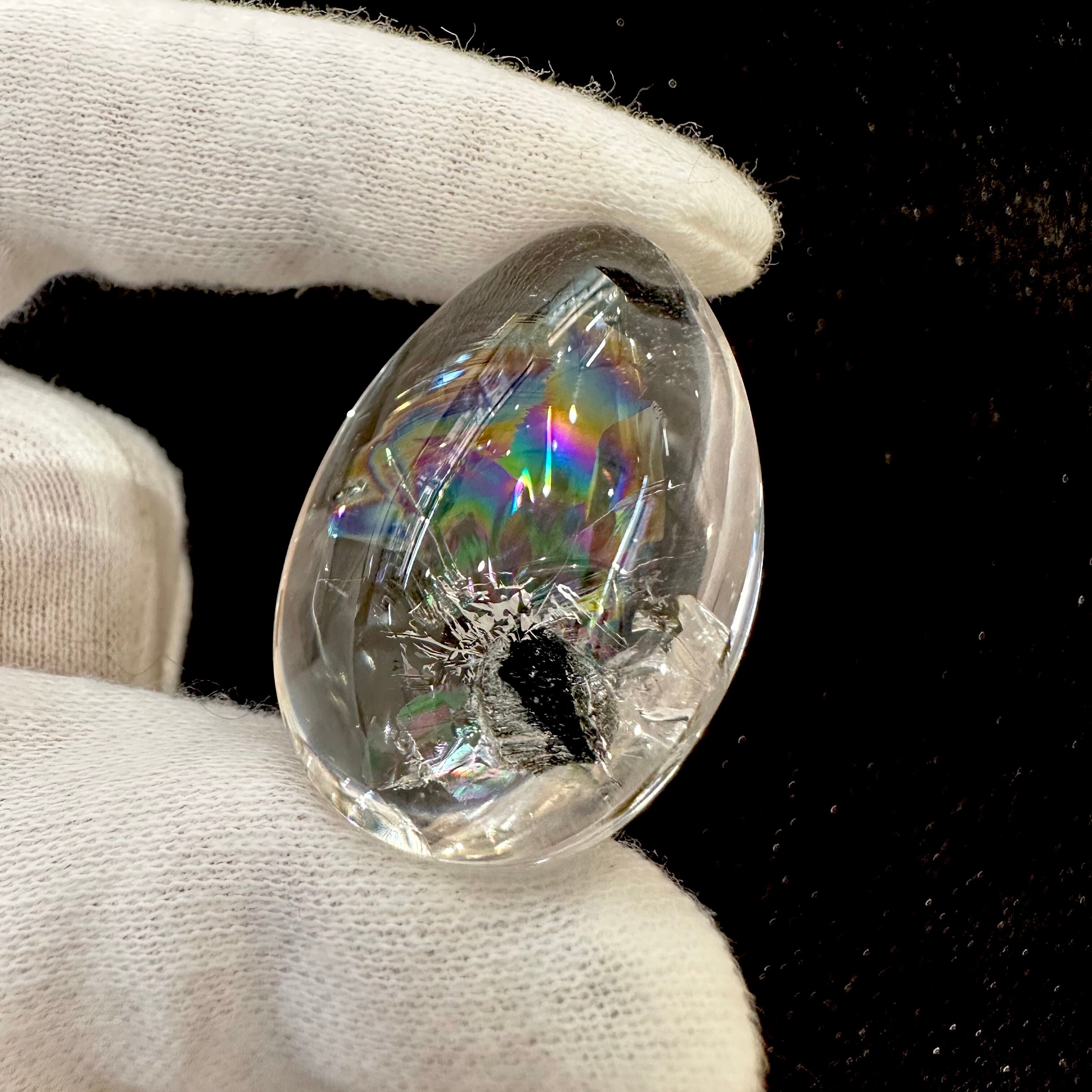 その水晶部分には全面に極彩色のレインボーが現れる素晴らしいピースです。