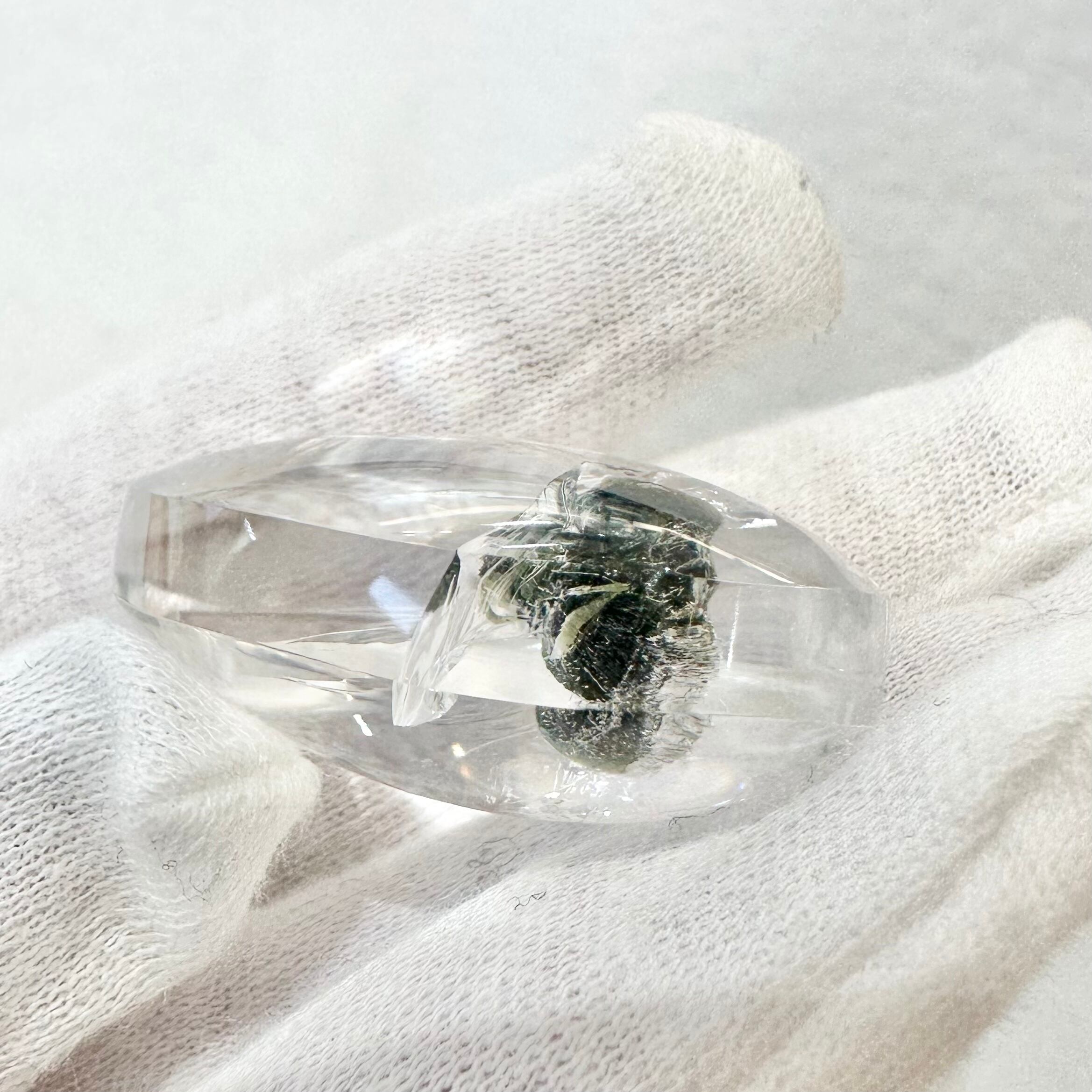 マリモの様な深いグリーンの丸っこいクローライトがインクルージョンされた水晶。