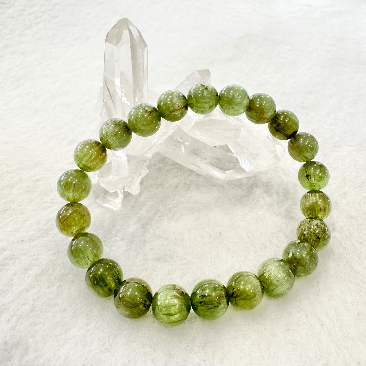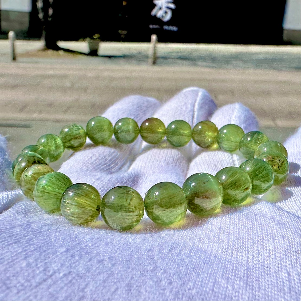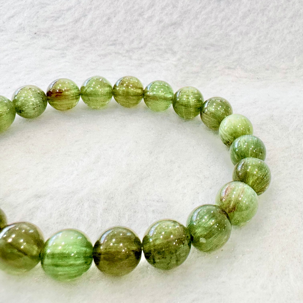 キャッツアイも出るとてもキレイなグリーンアパタイトのブレスレットです。
