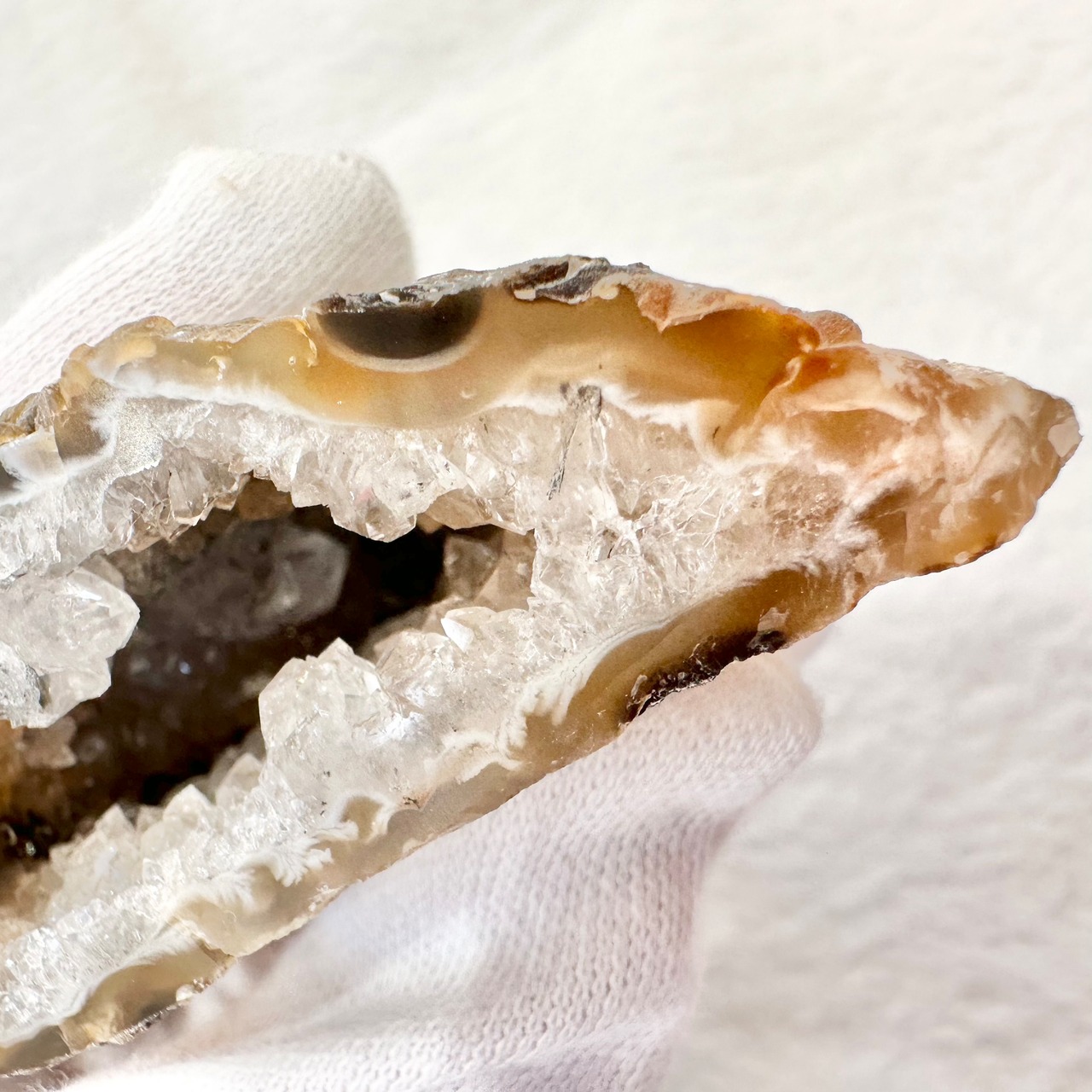 中の水晶部分は結晶は細かいながら至る所が虹色に輝きキラッキラです。