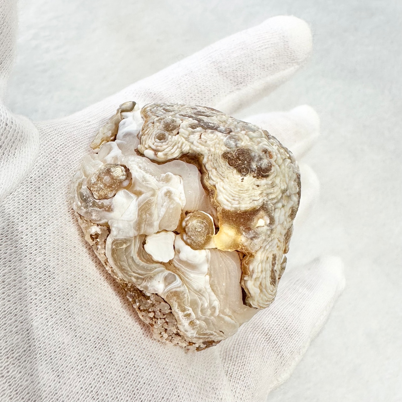 外側は貝を思わせる様なサークル模様が見られ、白とカフェオレ色のコントラストが中々可愛く珍しいです。
