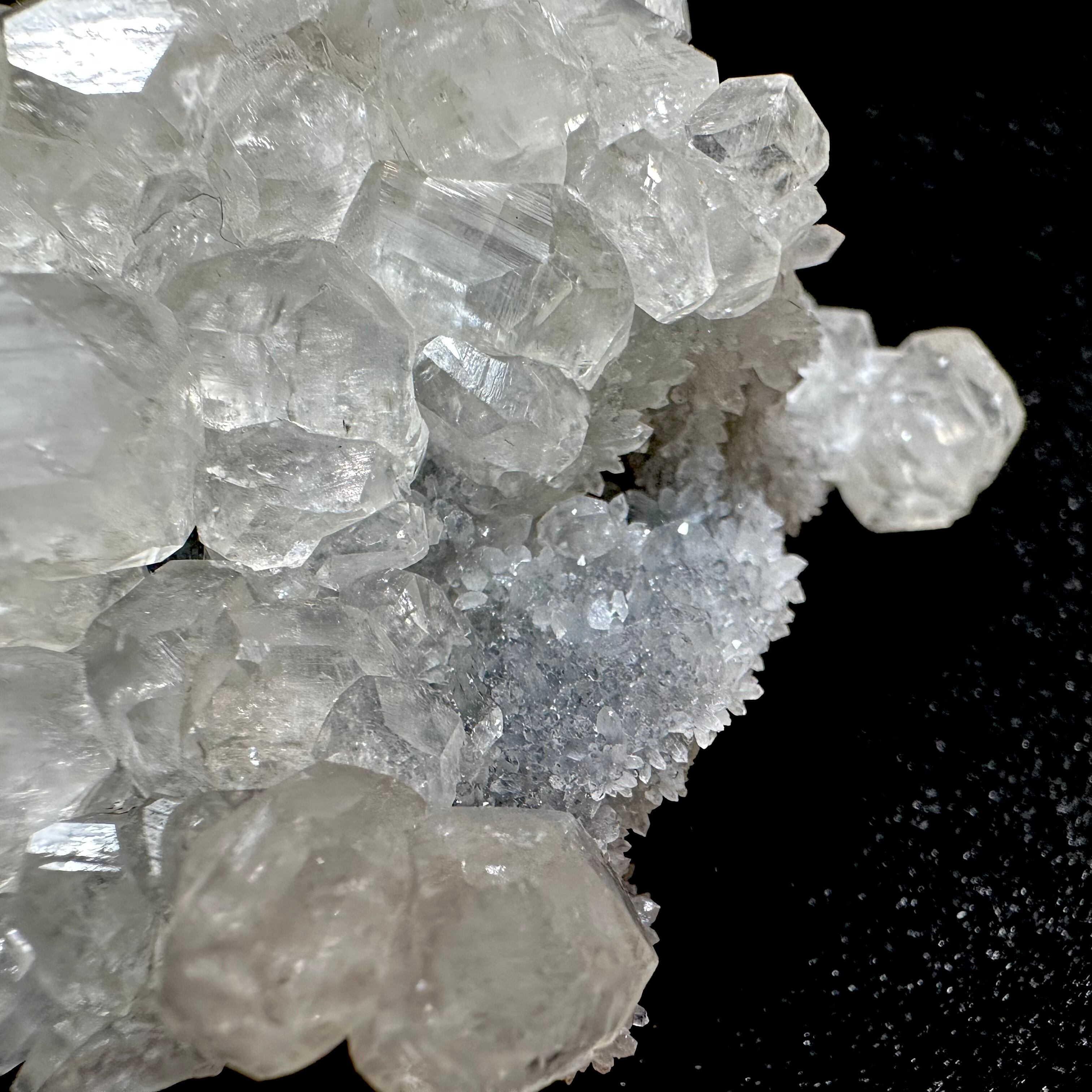 アラレの様な形がなんとも可愛いく、サイドや裏面は水晶だと思われる細かな結晶がキラキラとドゥルージー化しており、裏も表も面白い見所が盛りだくさんの原石です。