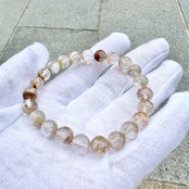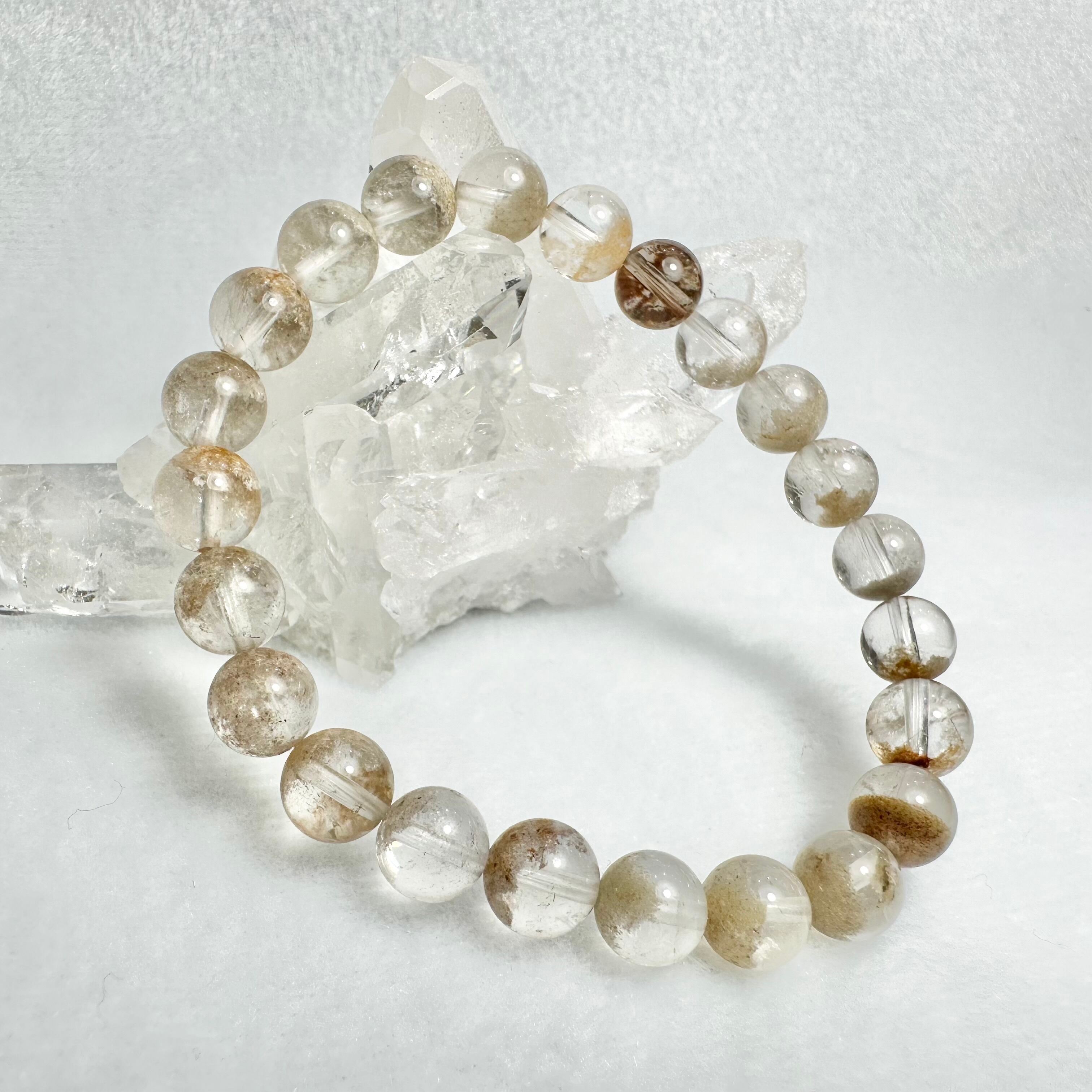 ブラウンやベージュの母岩の上に初雪の様にホワイトガーデンが入った様な味わい深い、ガーデンクォーツ好きには堪らない一本です。