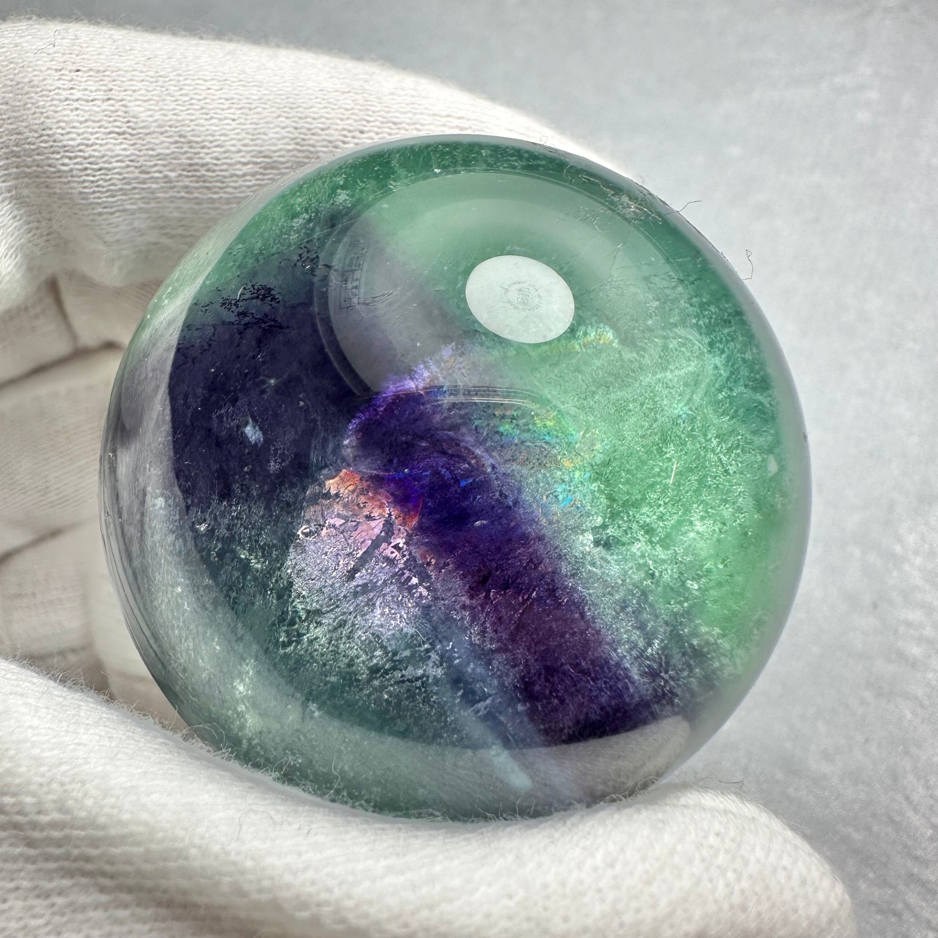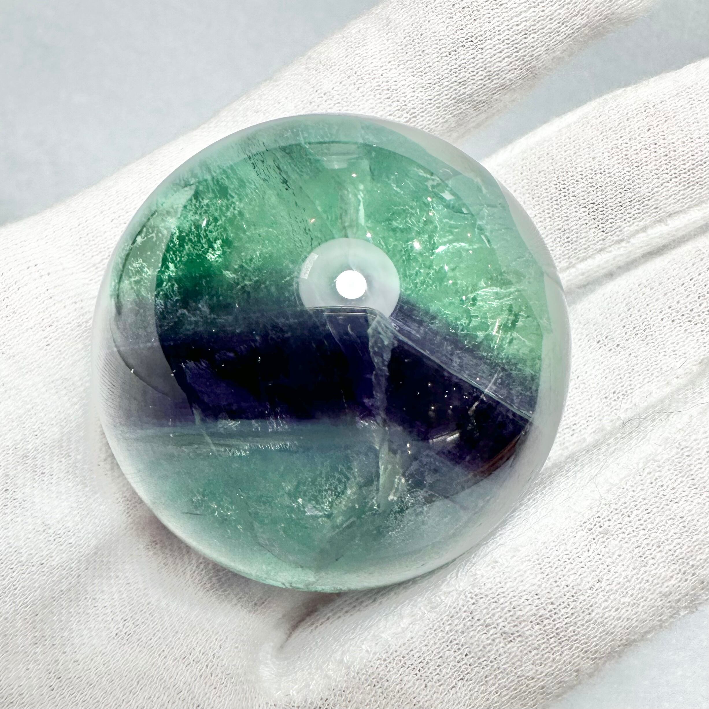 グリーンとパープルに淡いブルーが少し入った色味が美しいフローライトのスフィアです。