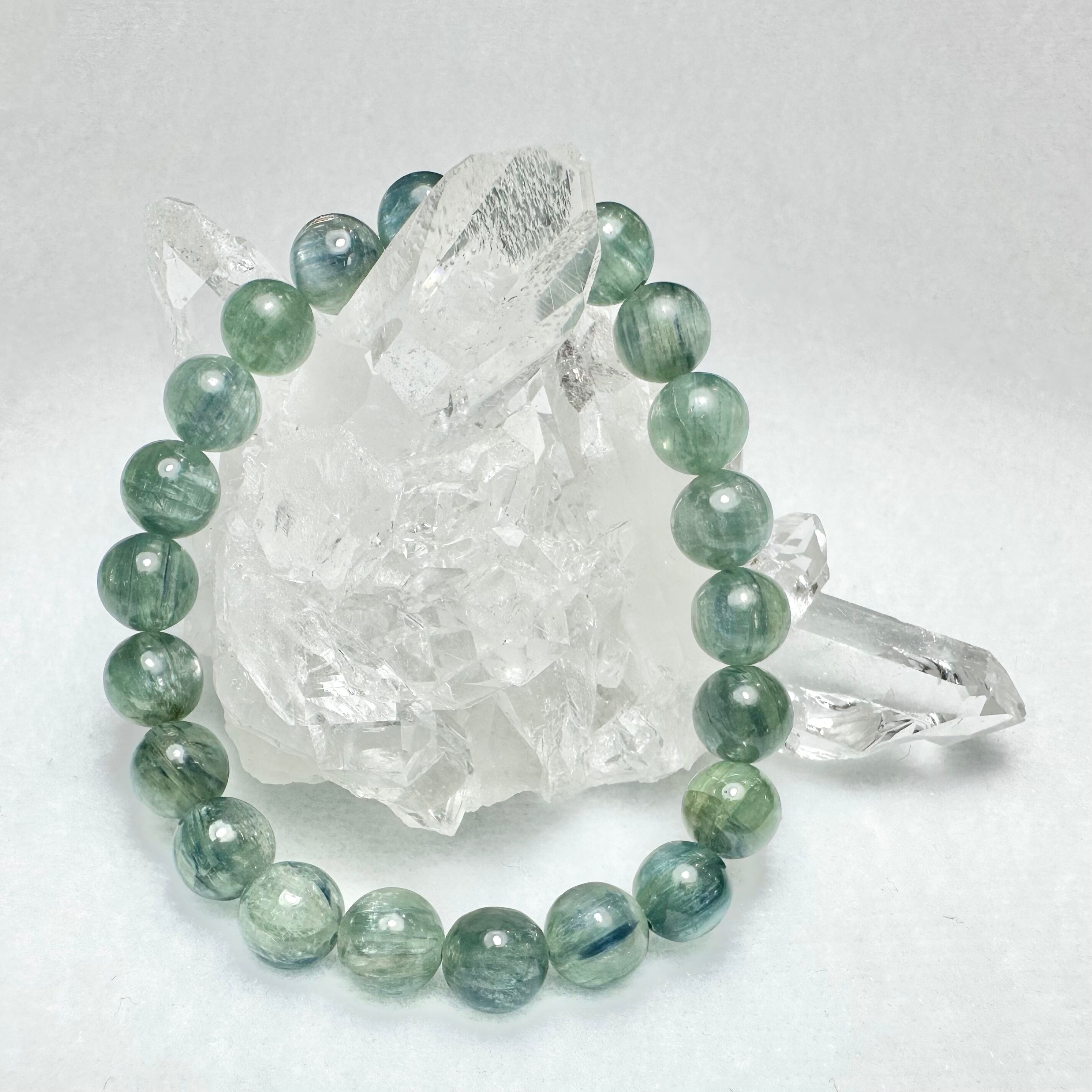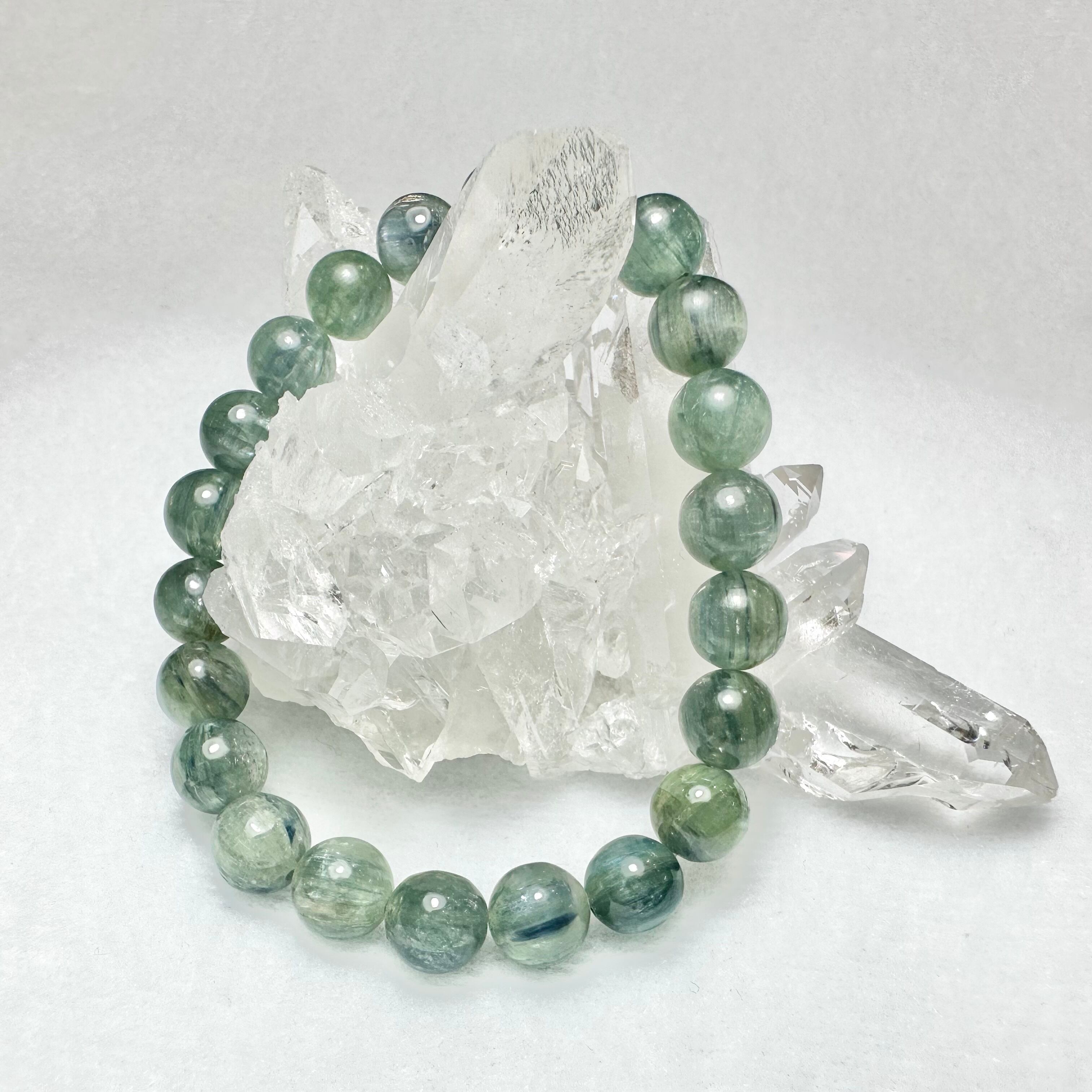 透明度があり、ブルーグリーンとグリーン、ブルーが混ざった様なすごく素敵な色合いの美しいカイヤナイトです。