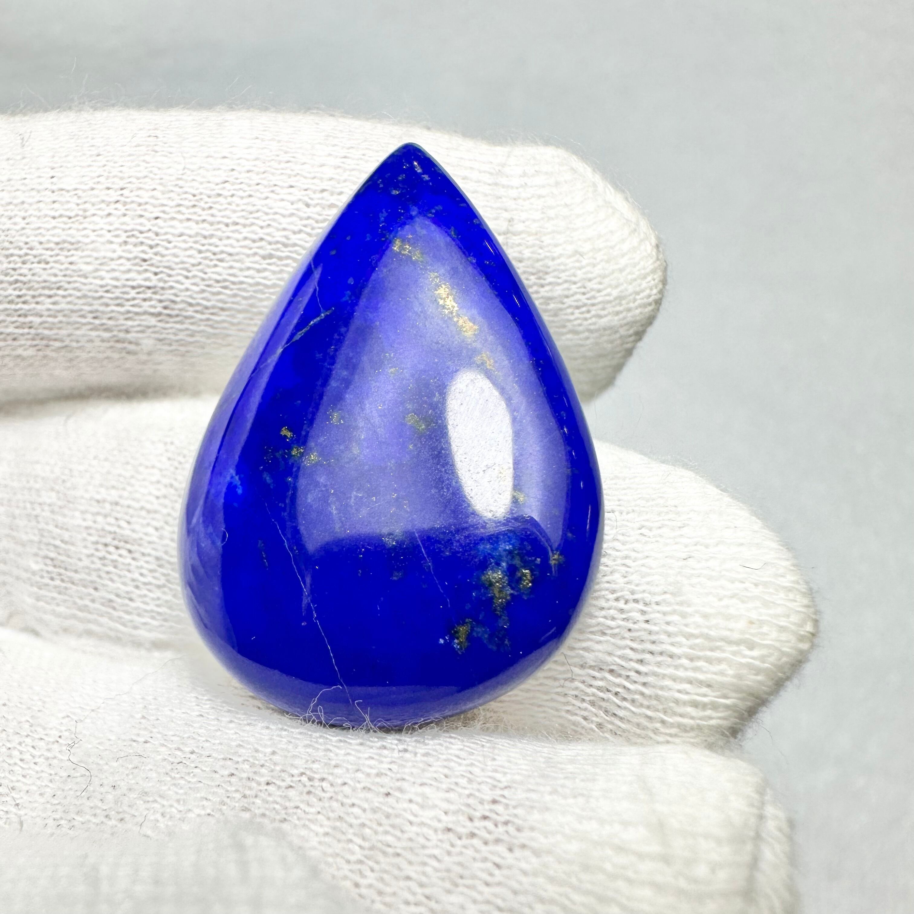 こちらは目が覚める様な美しいブルーに表面には線状にパイライトが入っています。