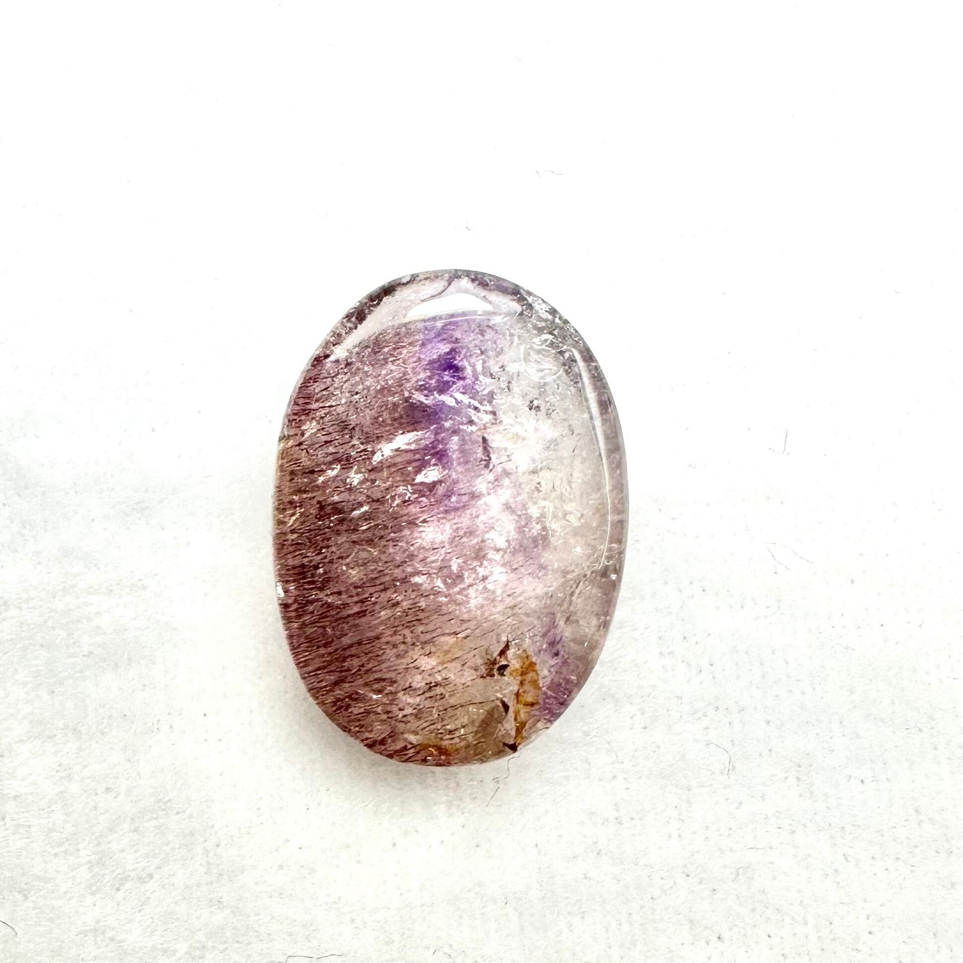 アメシスト・ゲーサイト・スモーキーが美しくインクルージョンされたエレスチャルアメシスト(アメジストエレスチャル)のルースです。