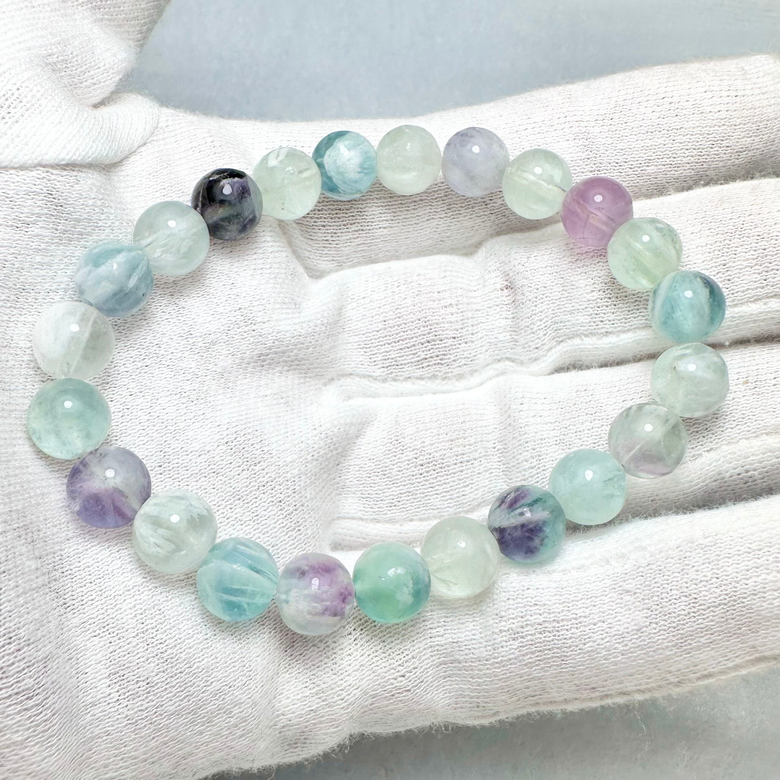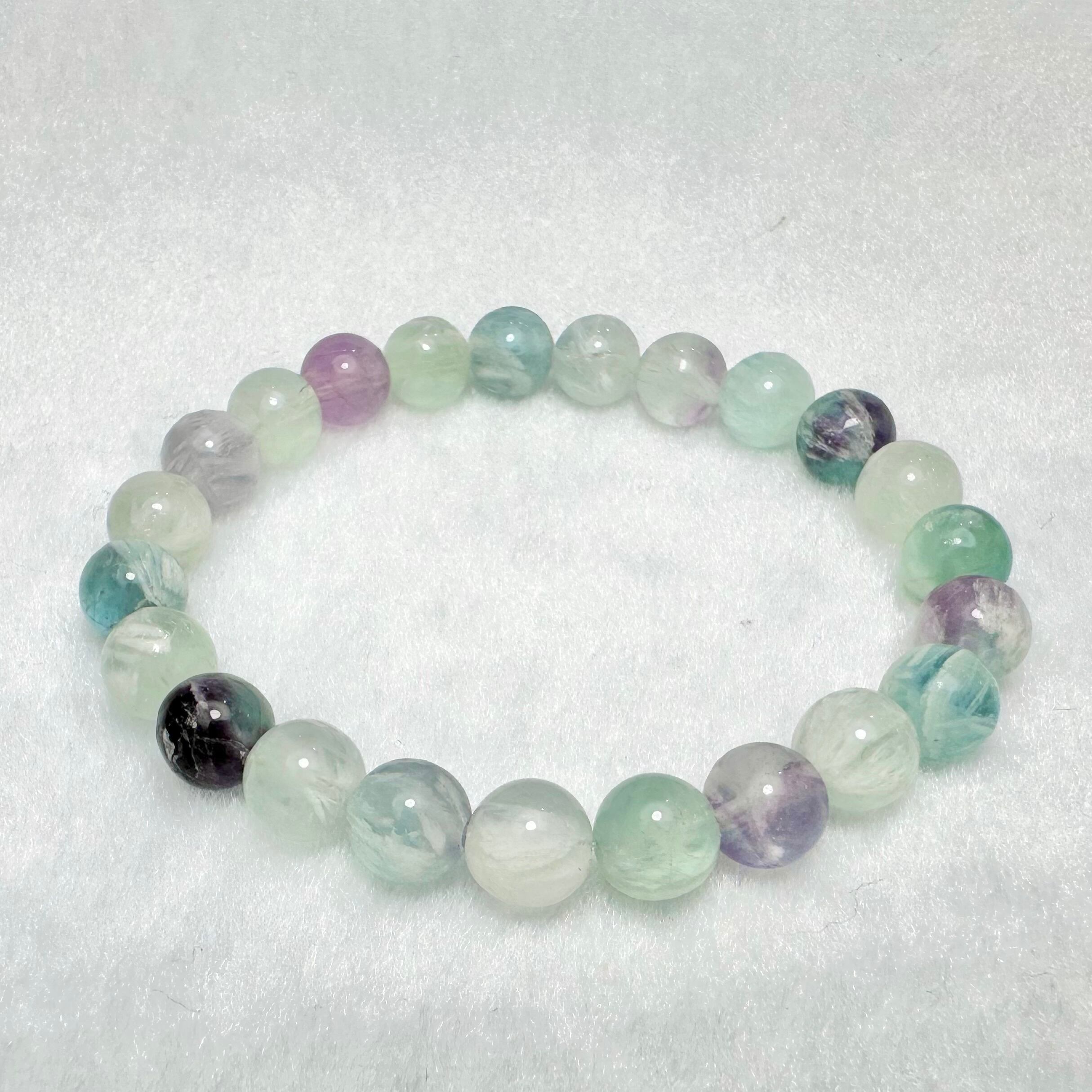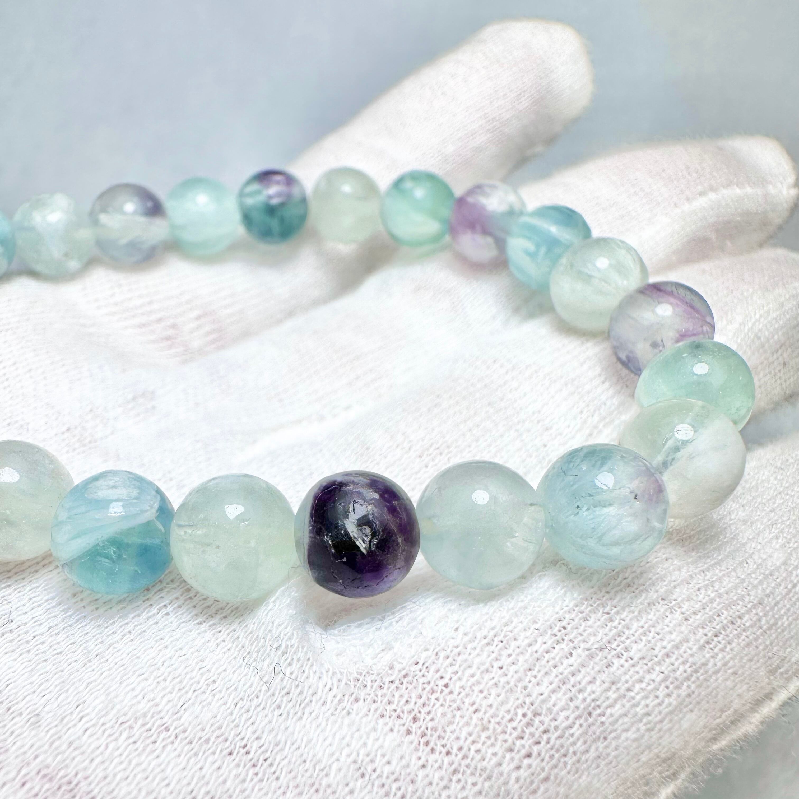 内包物が入ることによってフローライトの透明感が損なわれてしまうことも多いので、こちらは本当にクオリティも良いキレイなブレスレットです。