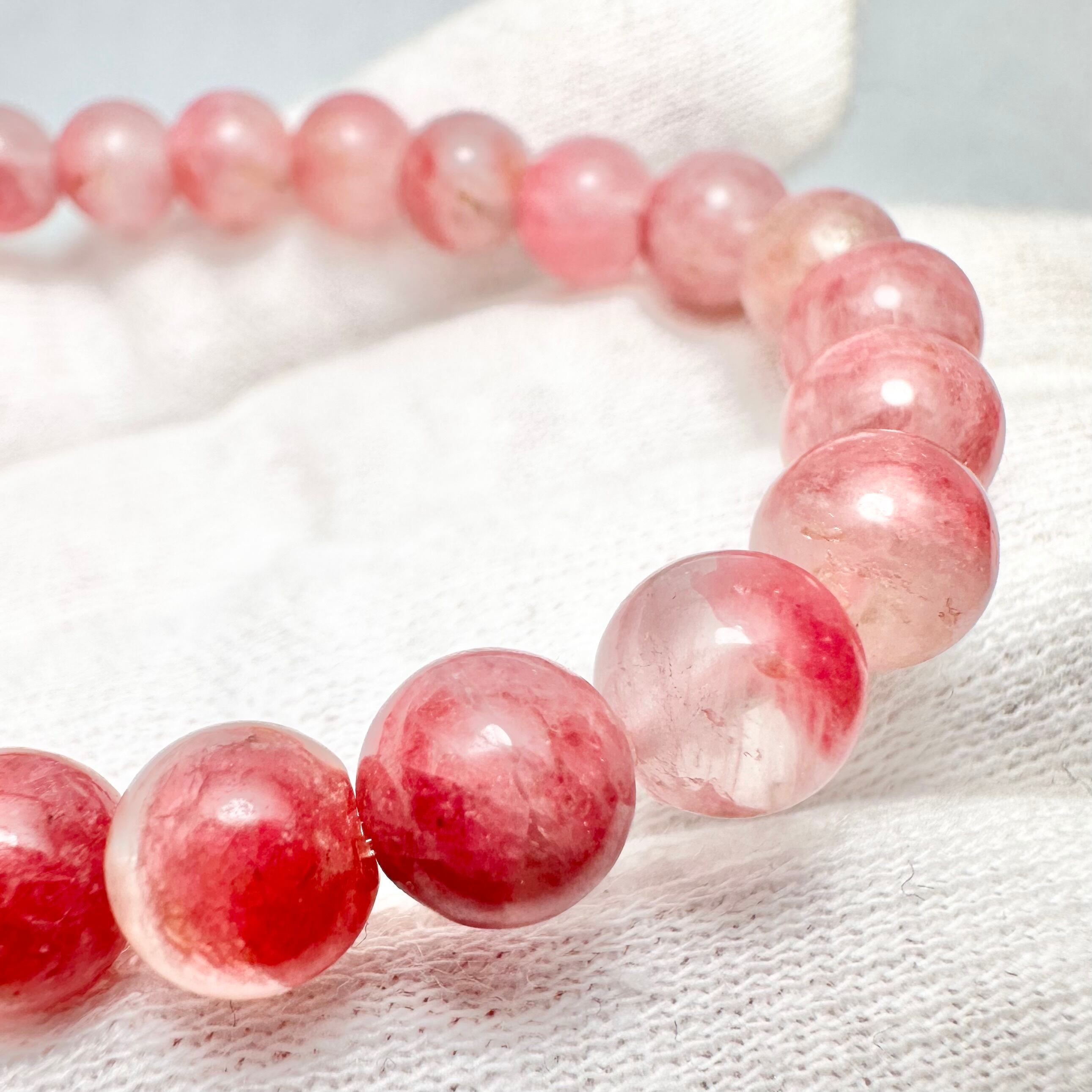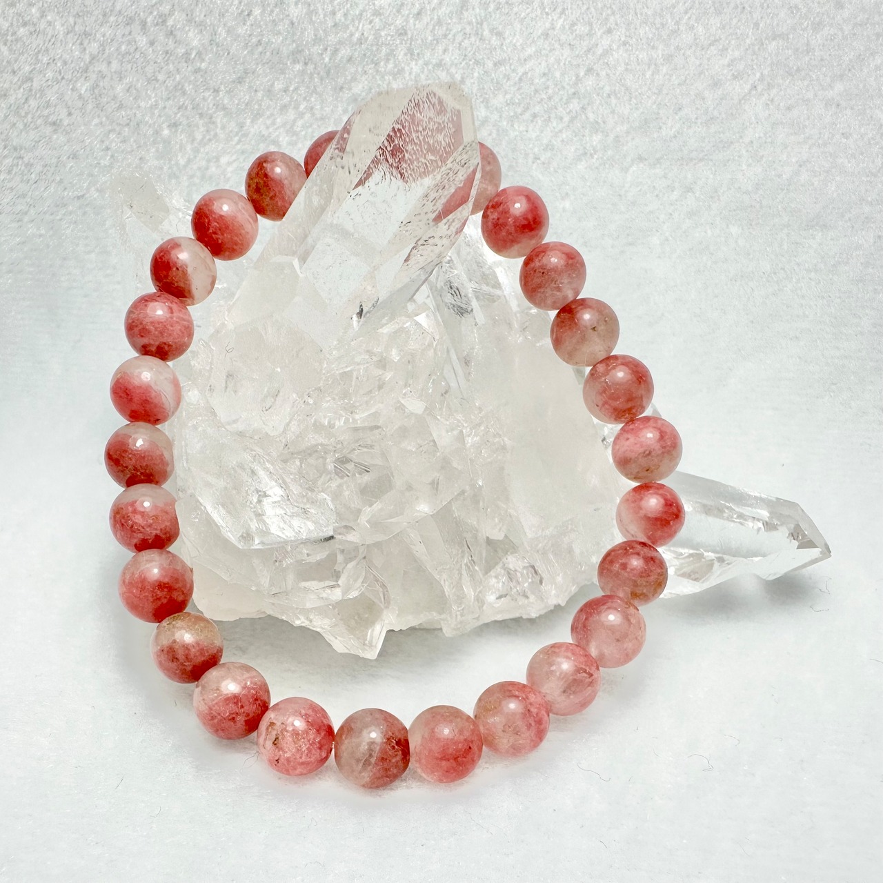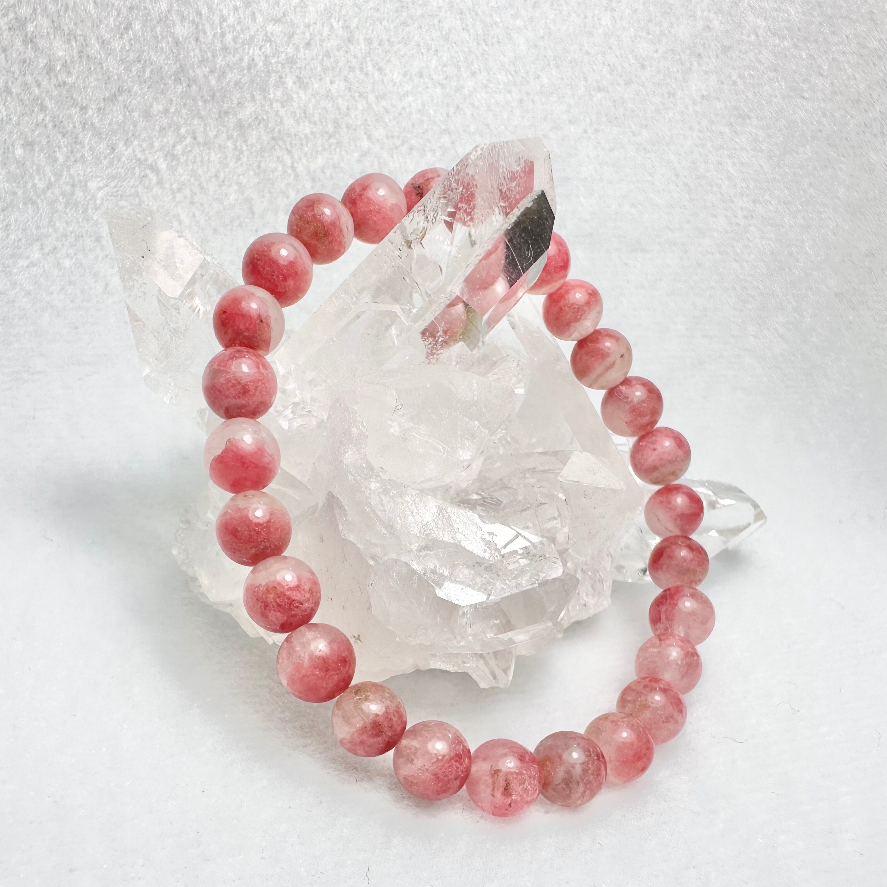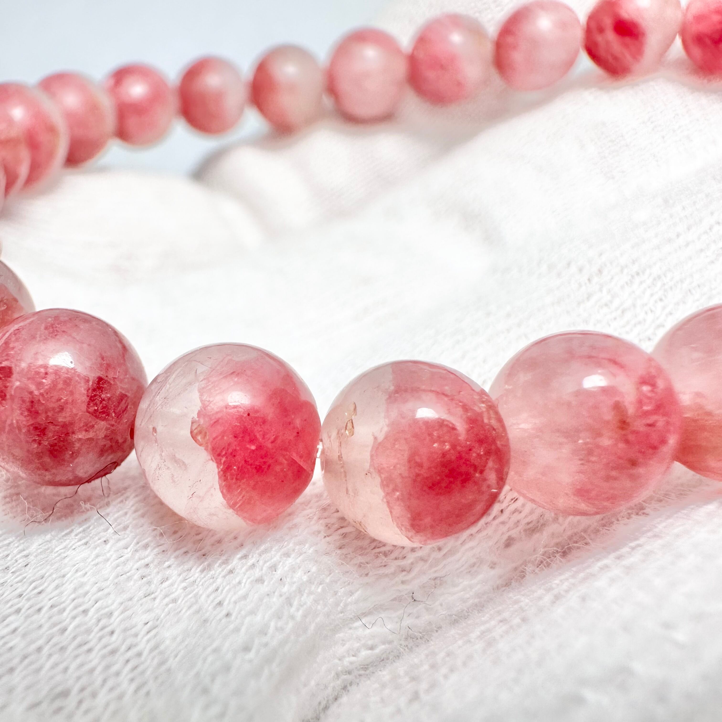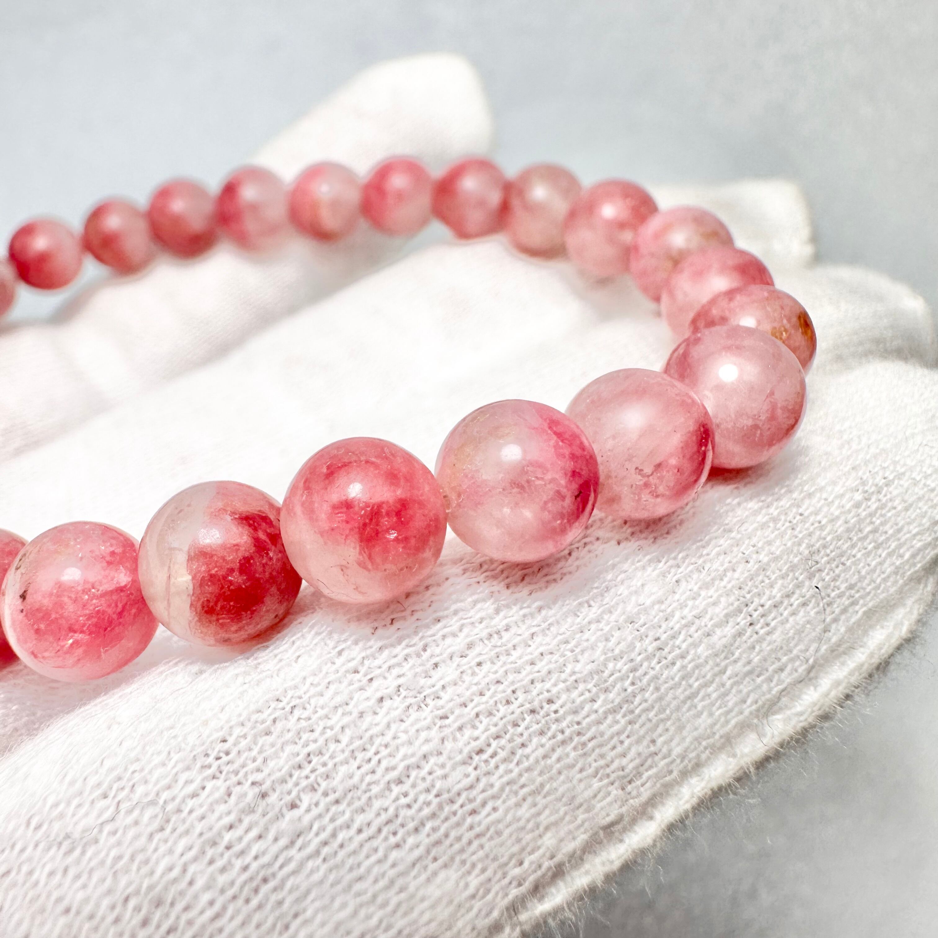 ロードナイトとシリカがキレイに半々に入った何とも言えない美しさを持った、ブレスレットです。