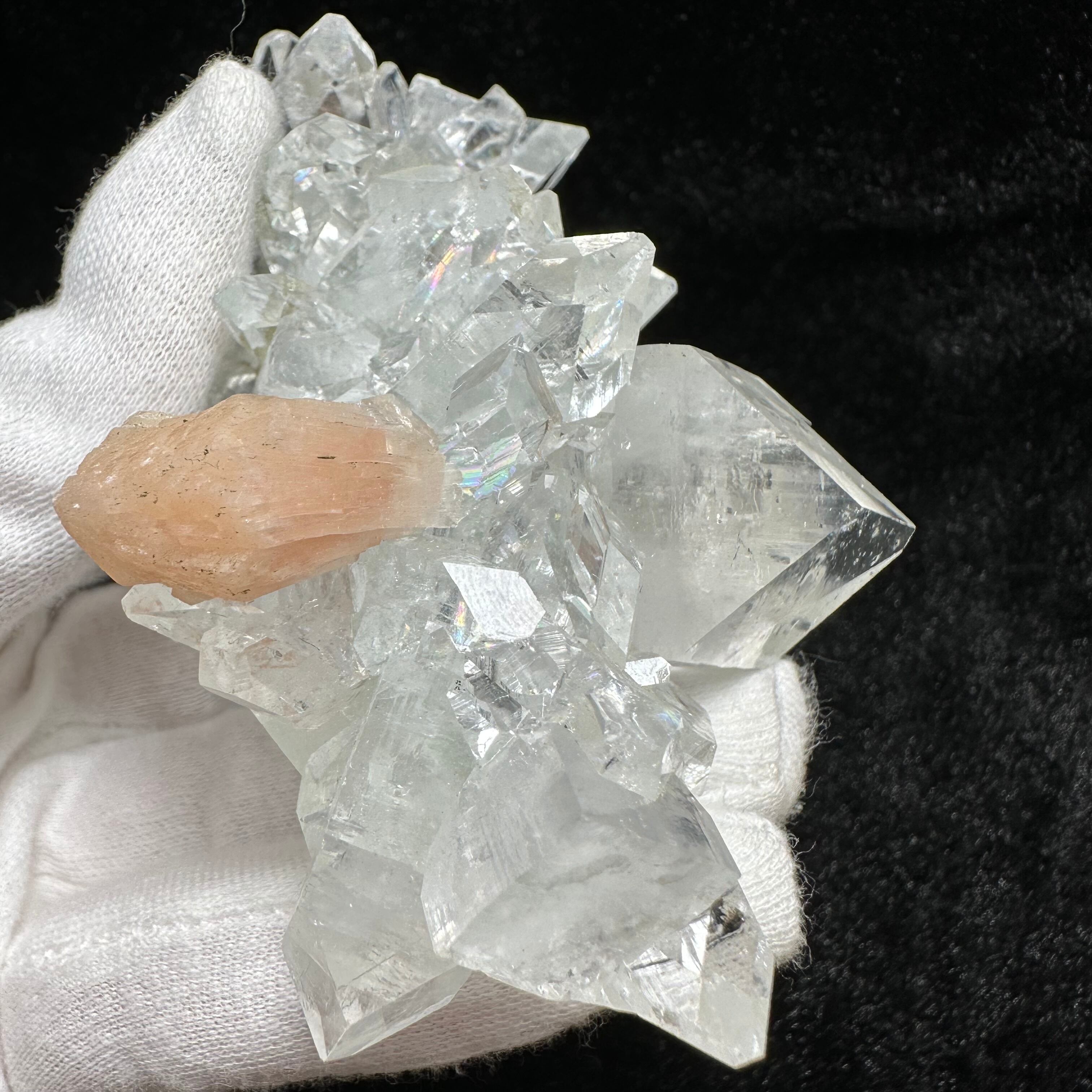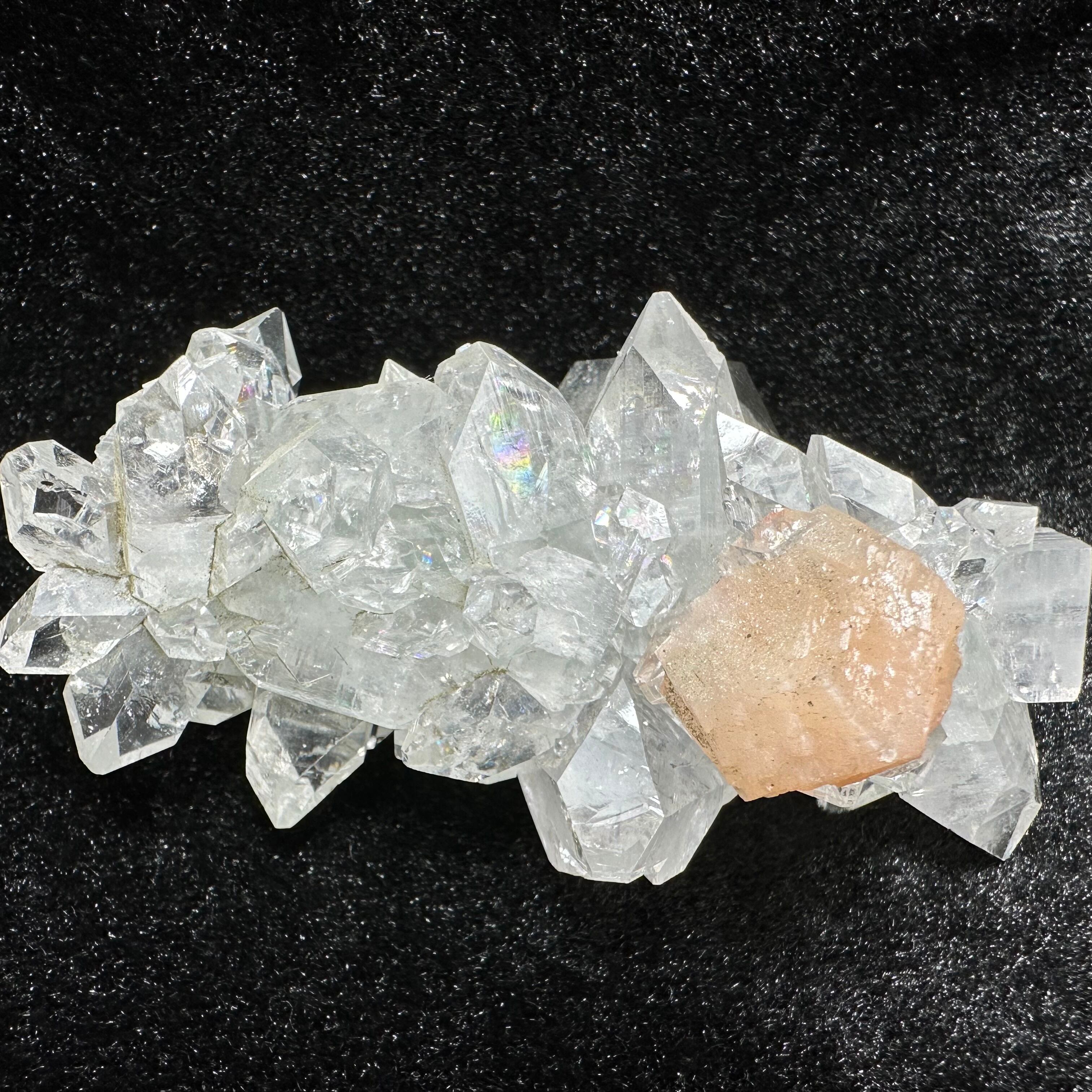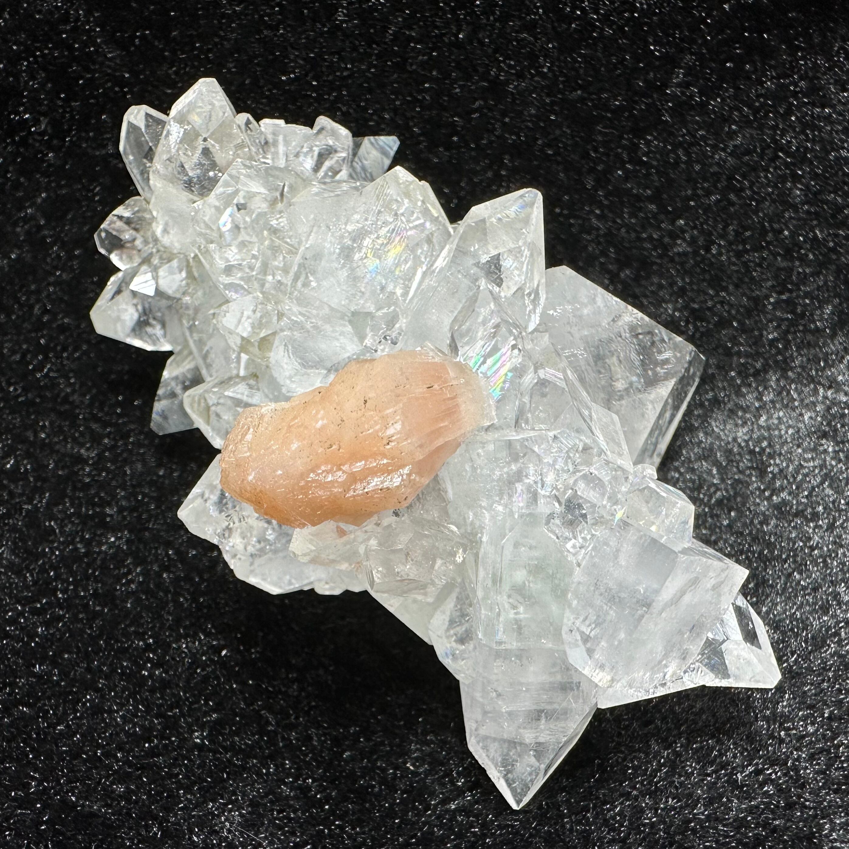 透明感が高くキラキラなアポフィライトとサーモンピンクのスティルバイトが共生した形も整って美しい原石です。