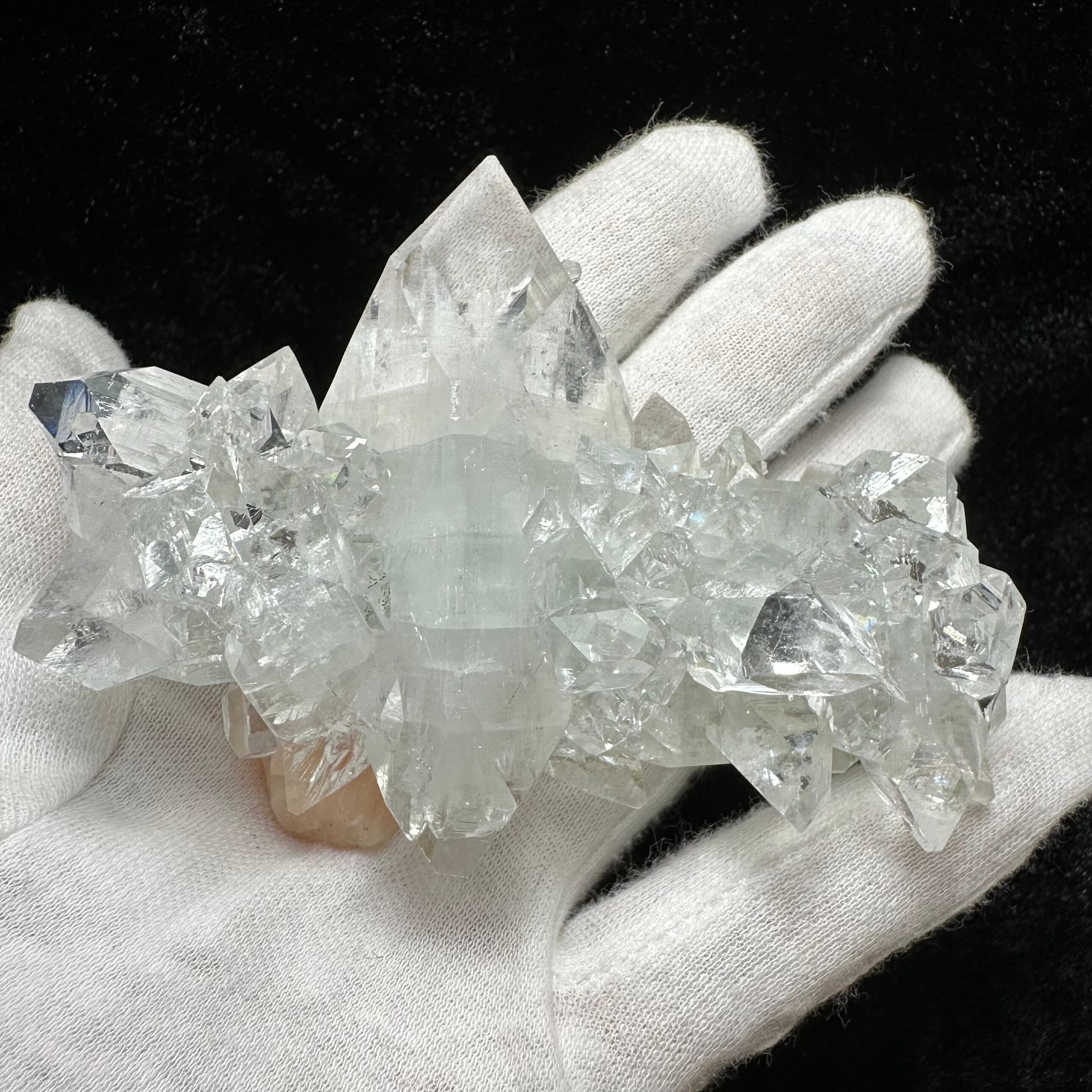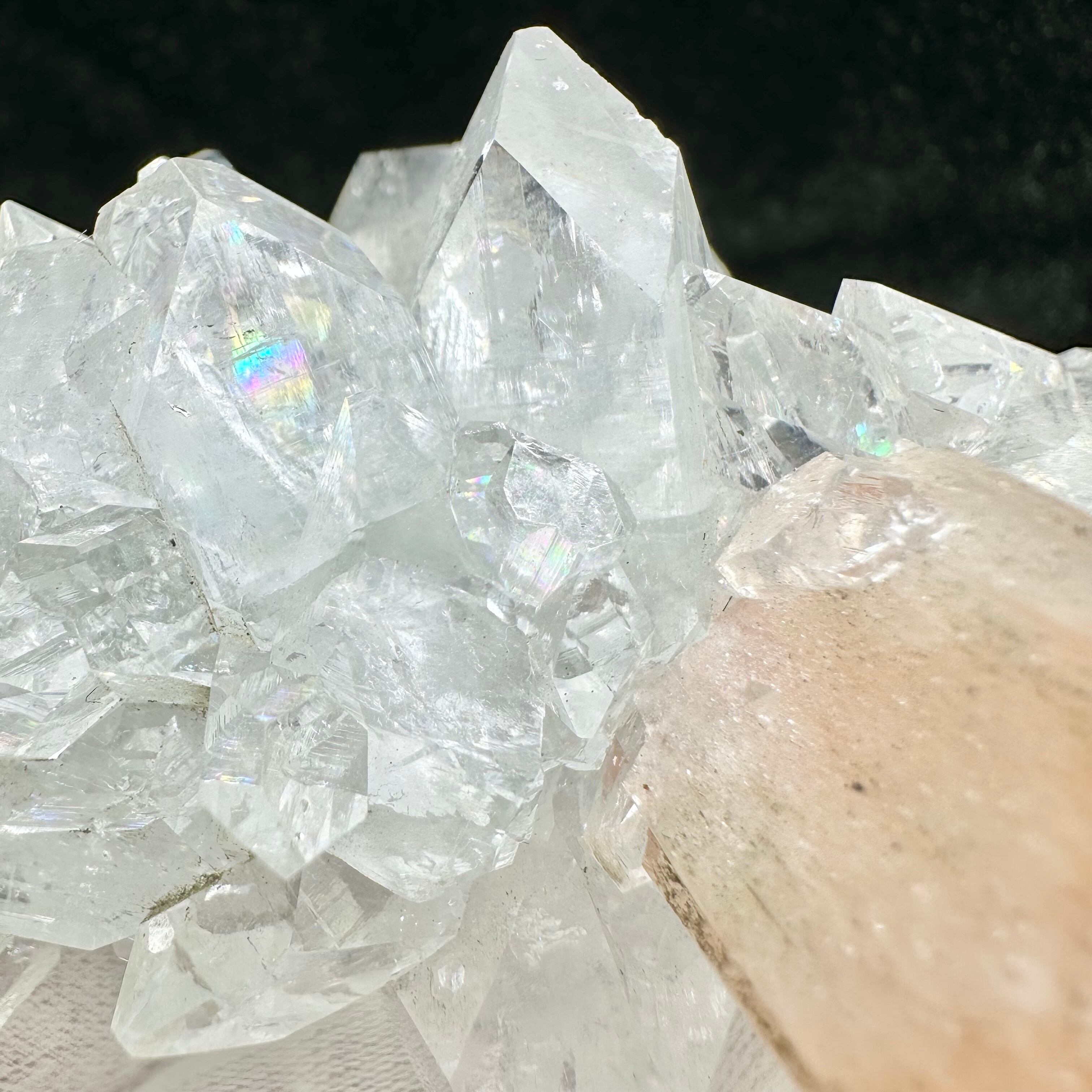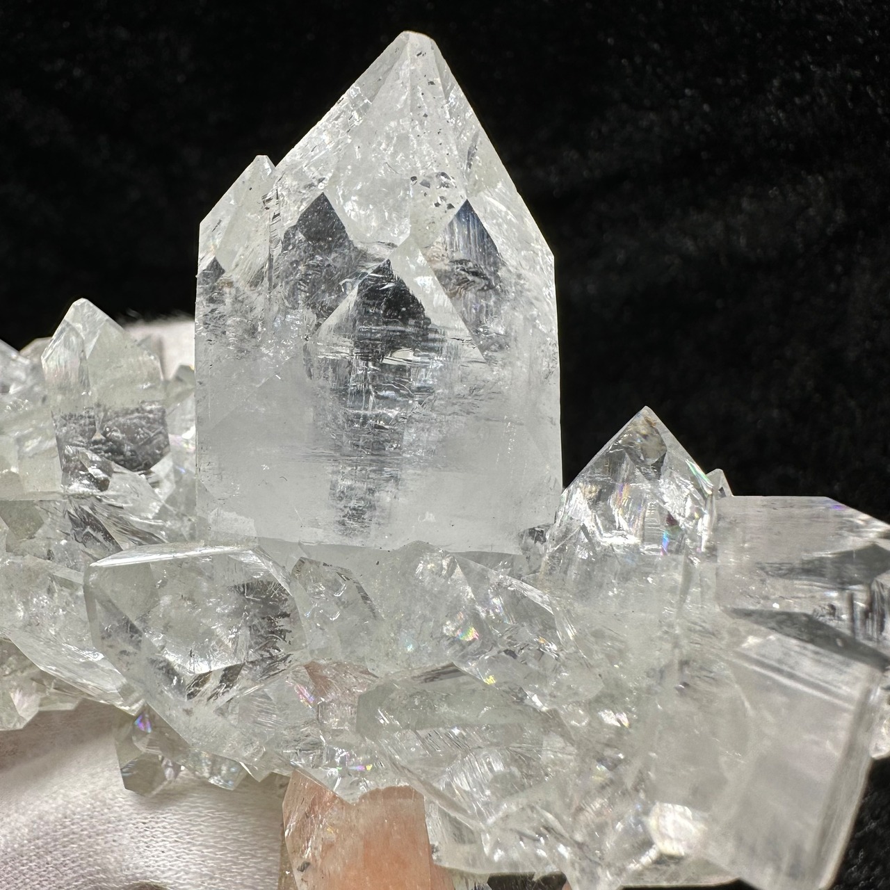 透明感が高くキラキラなアポフィライトとサーモンピンクのスティルバイトが共生した形も整って美しい原石です。