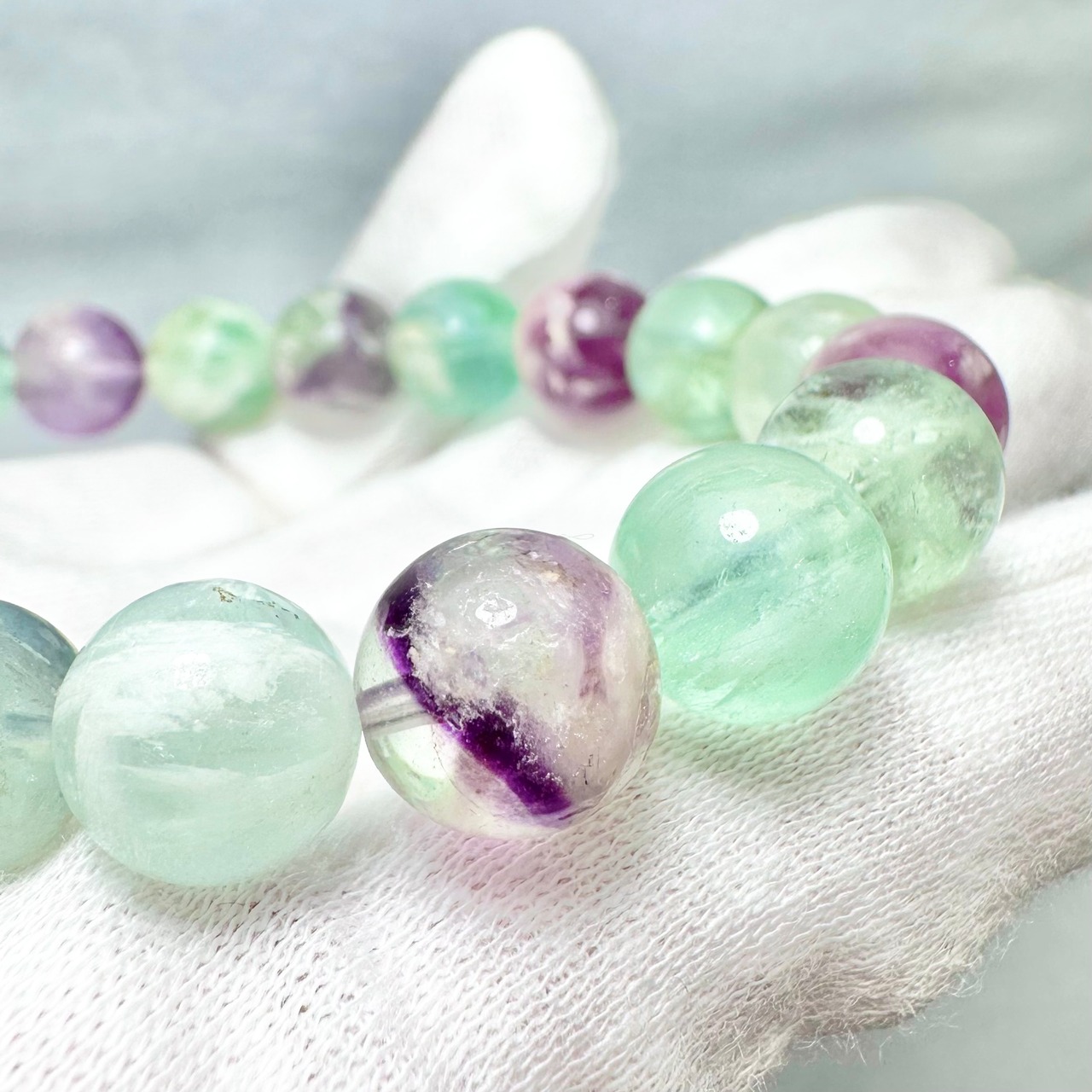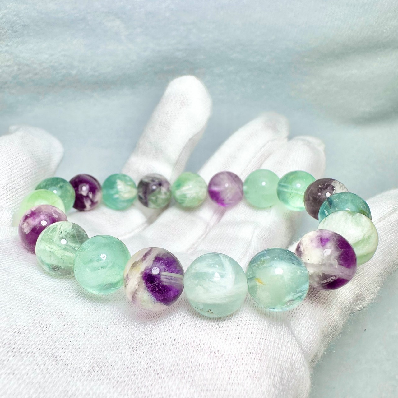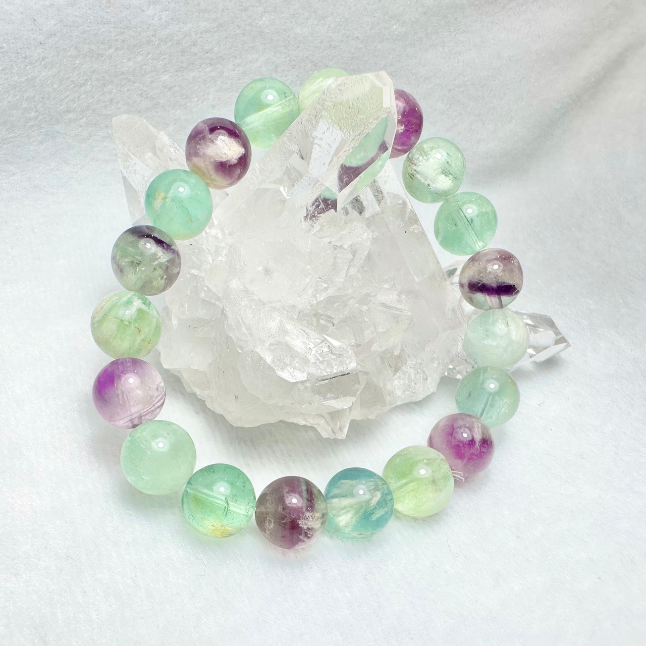 こちらはマルチカラーのフローライトに羽根の様にしっかりと美しく模様が入ったブレスレットです。
