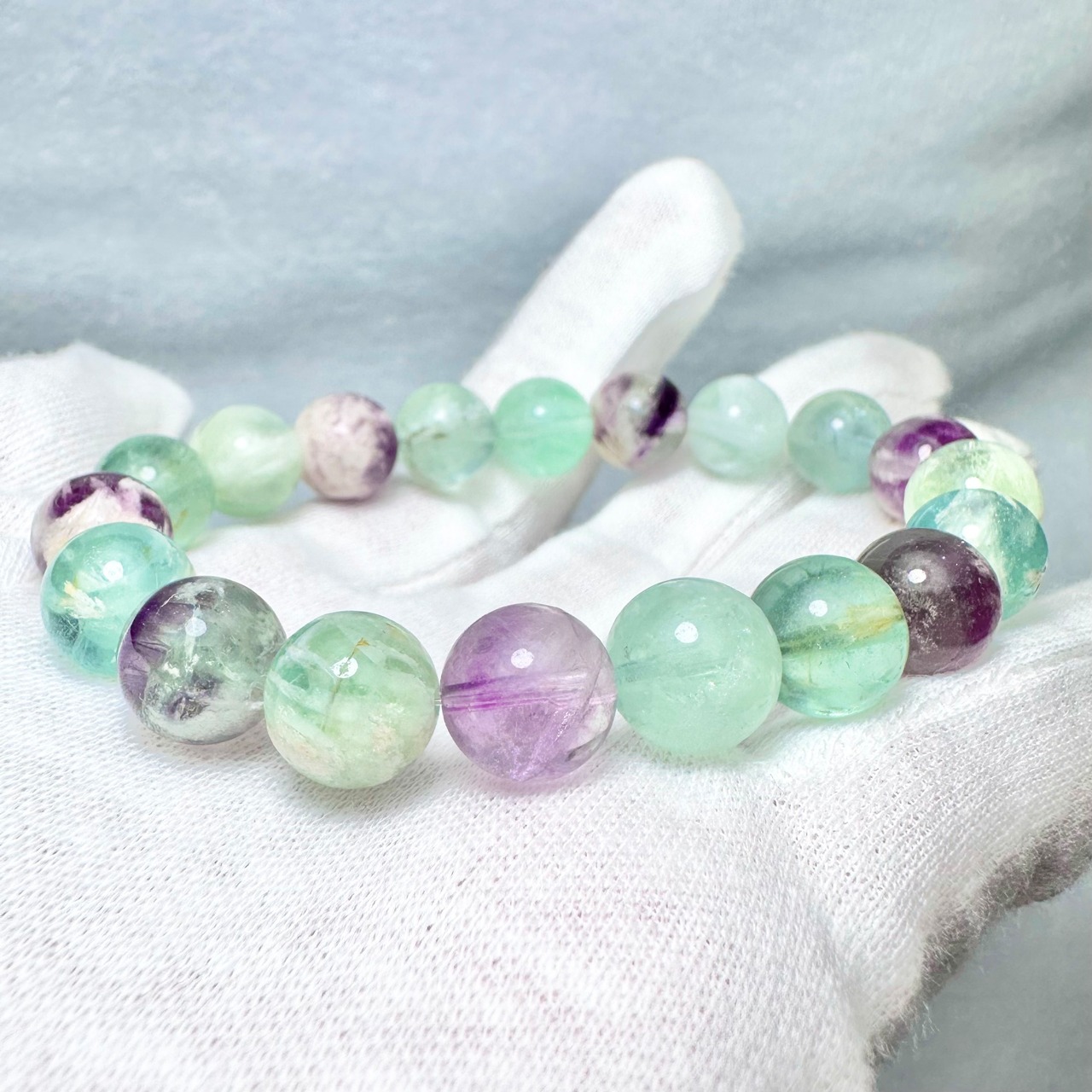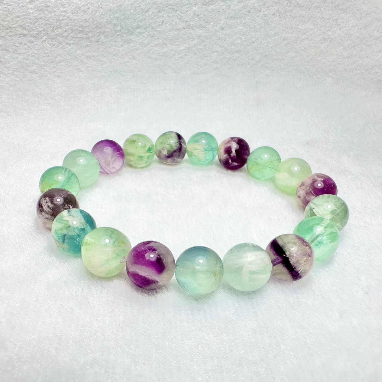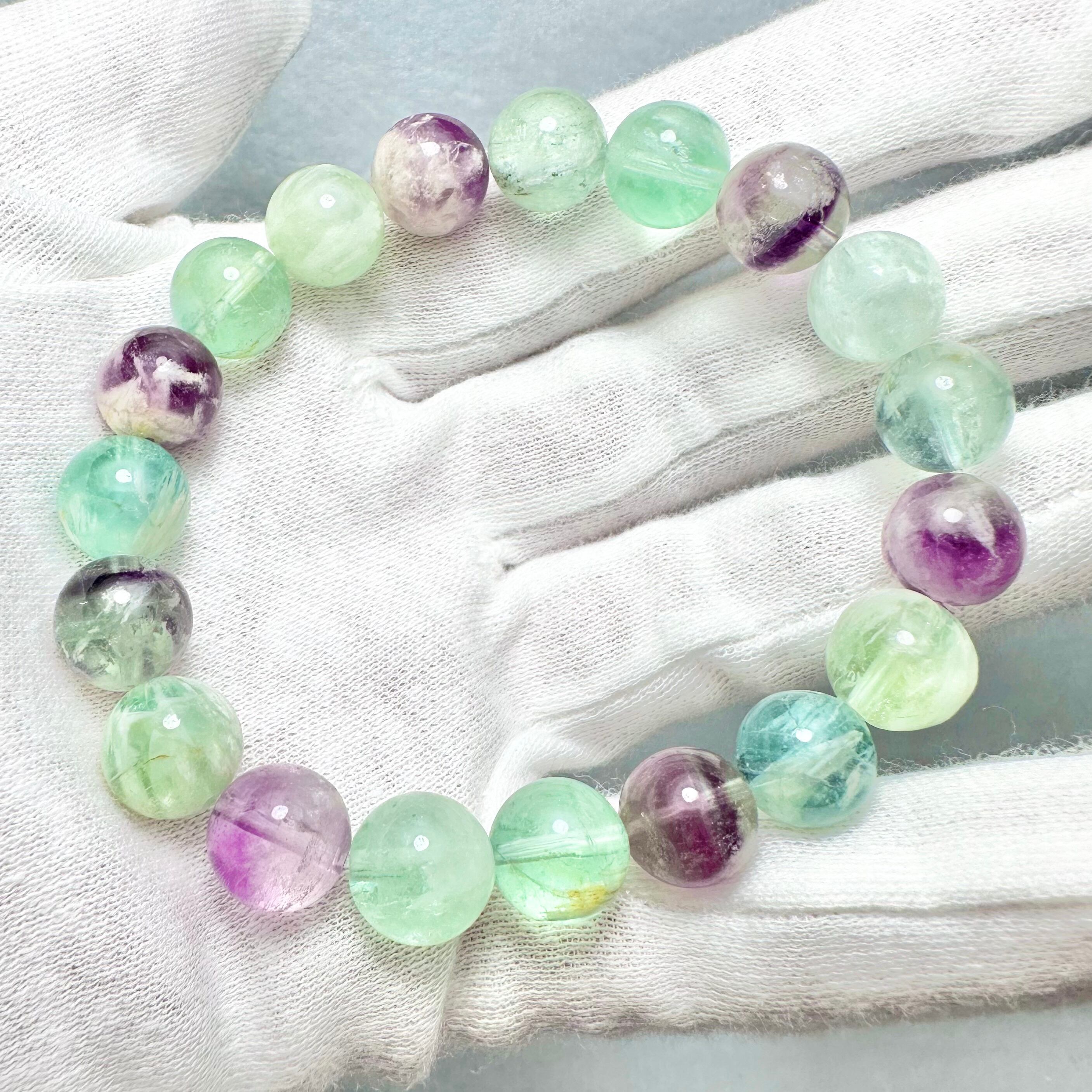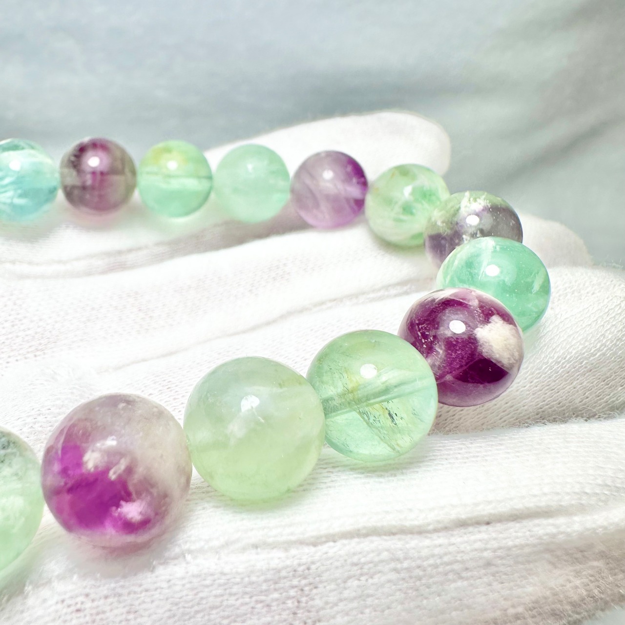 こちらはマルチカラーのフローライトに羽根の様にしっかりと美しく模様が入ったブレスレットです。