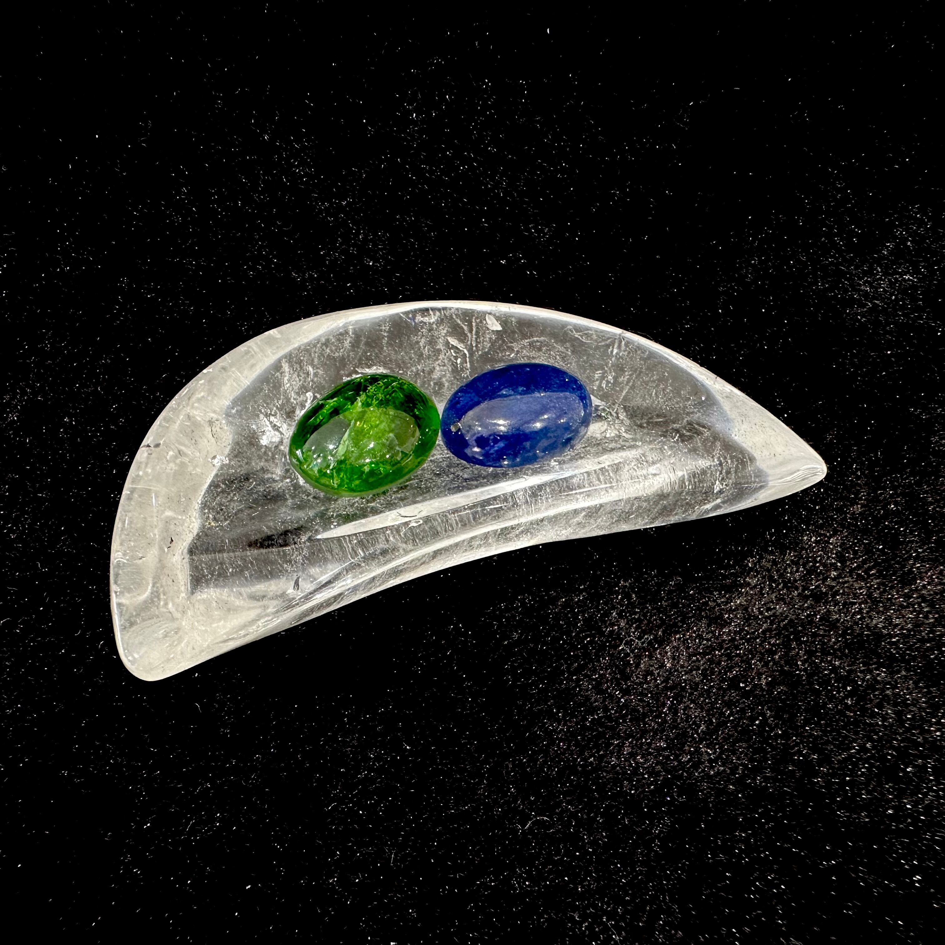 水晶をくり抜いて作られた月型の小物を入れることができるプレートです。