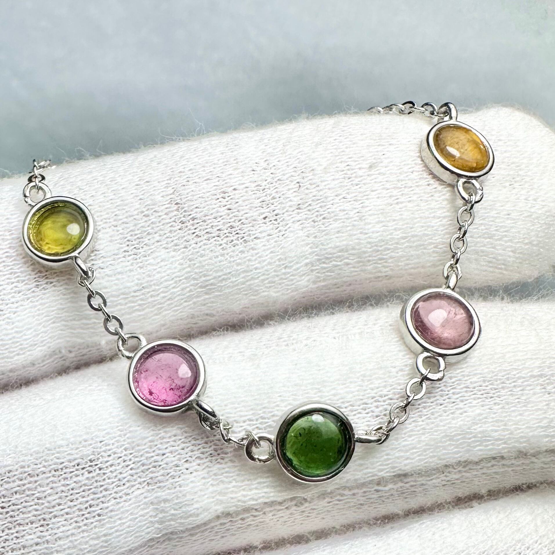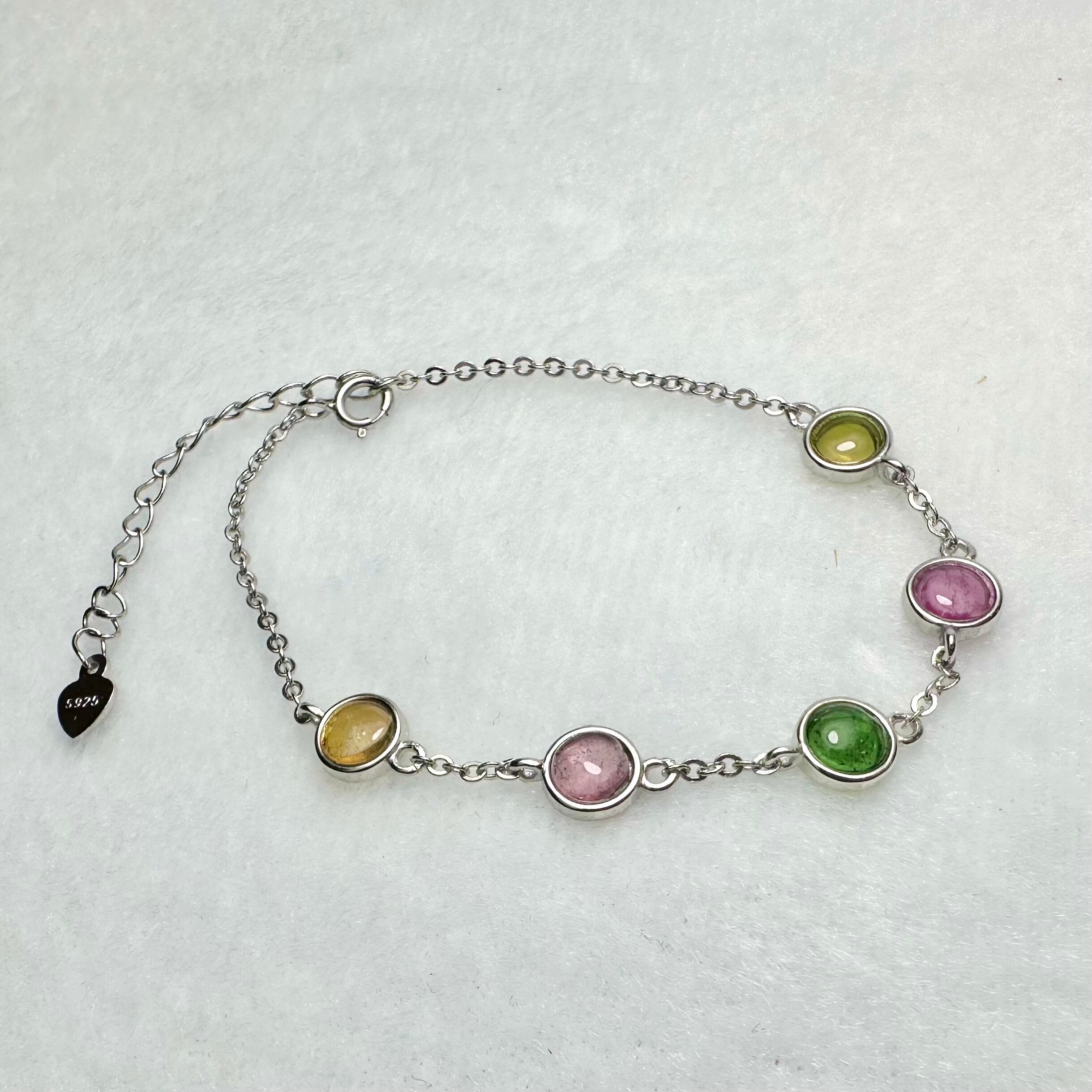宝石クオリティの美しいトルマリンが5個使用された、とても使いやすいブレスレットです。