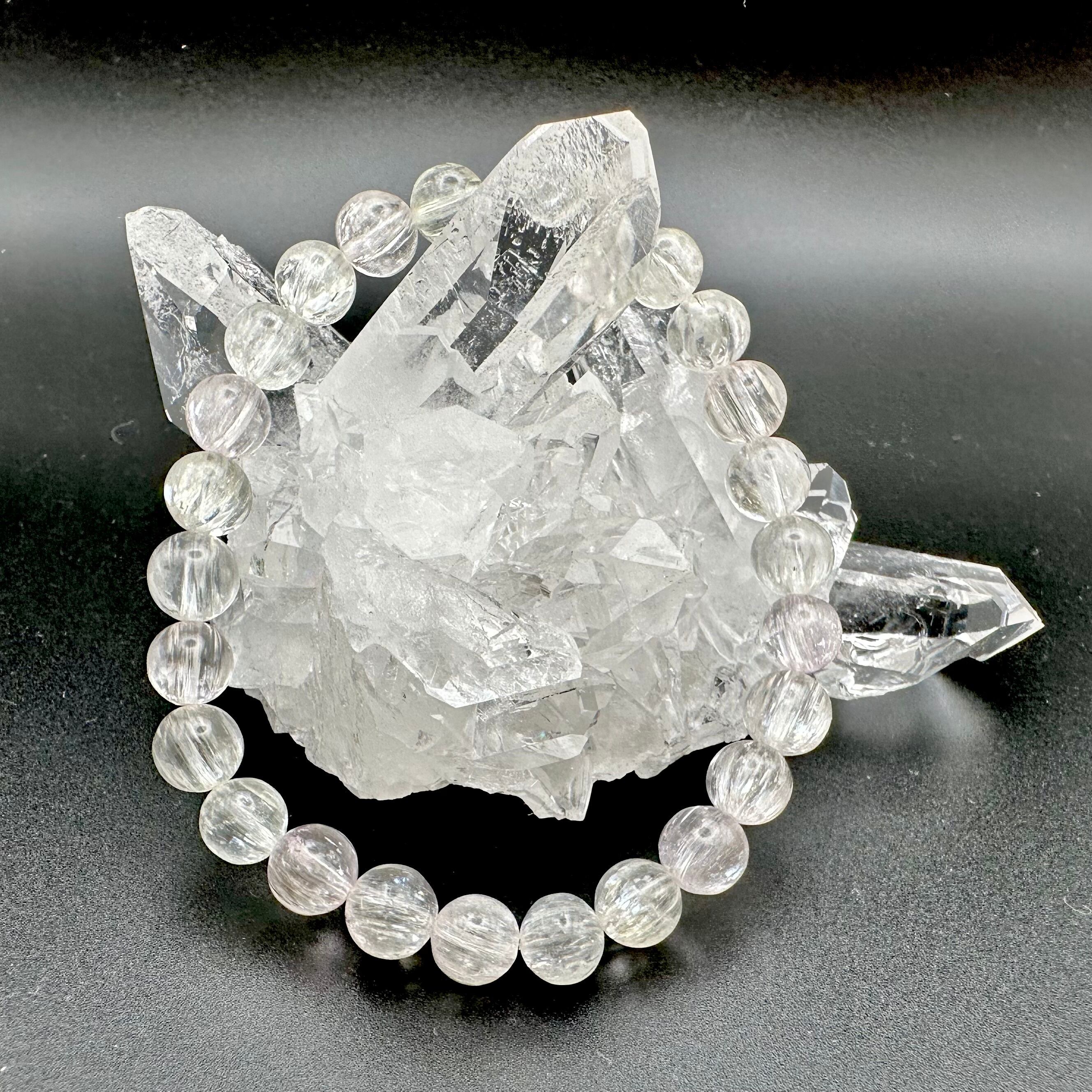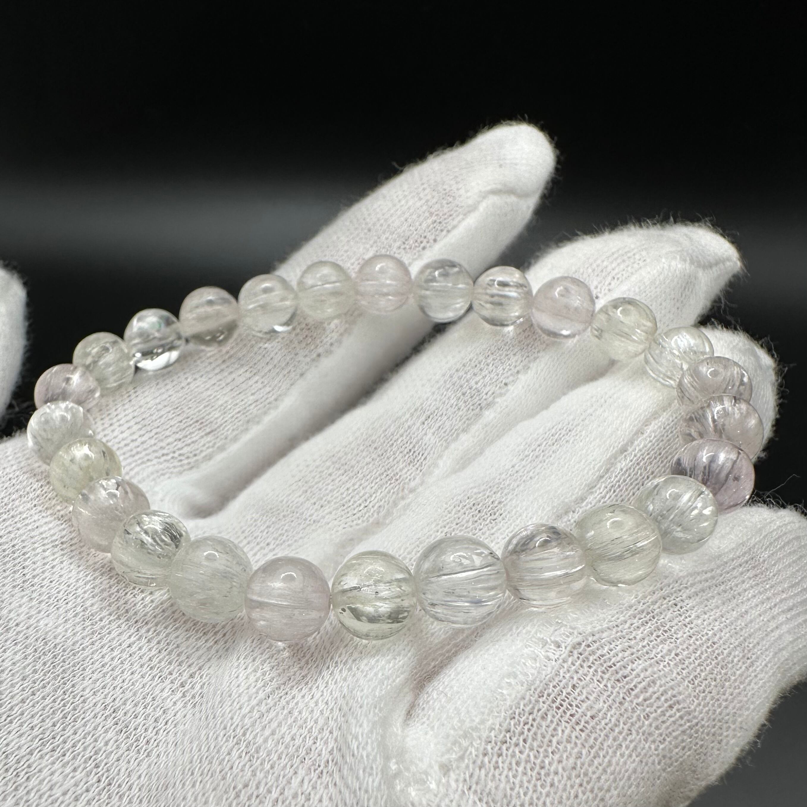 透明感がとても高く、クンツァイト特有のウルウル・ツヤツヤな輝きが素晴らしいハイクオリティのブレスレットです。