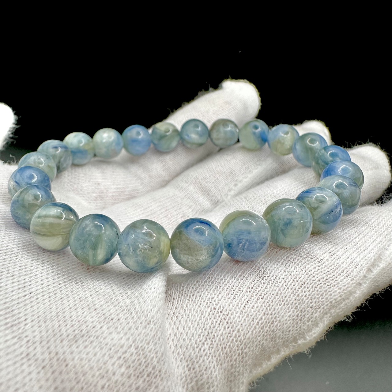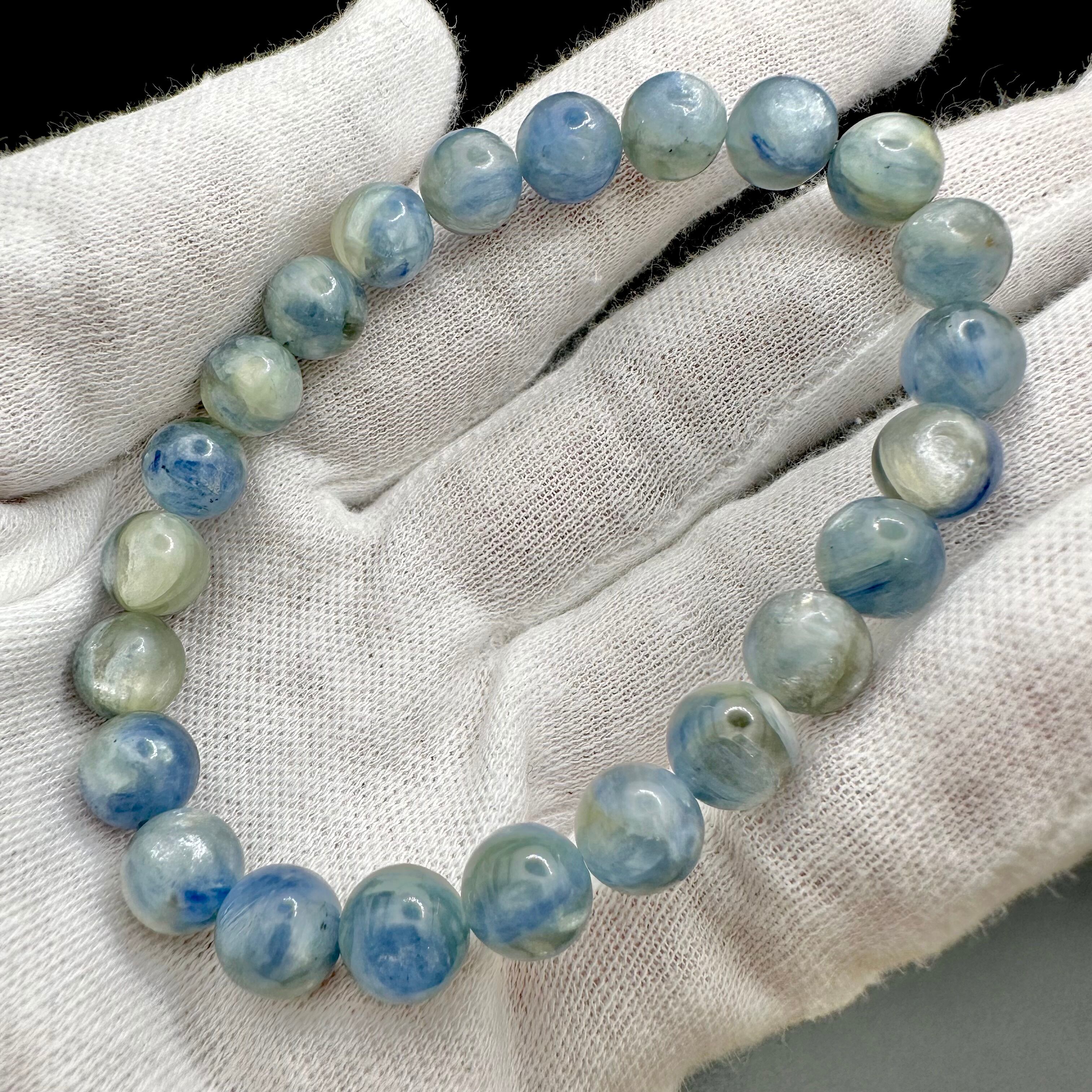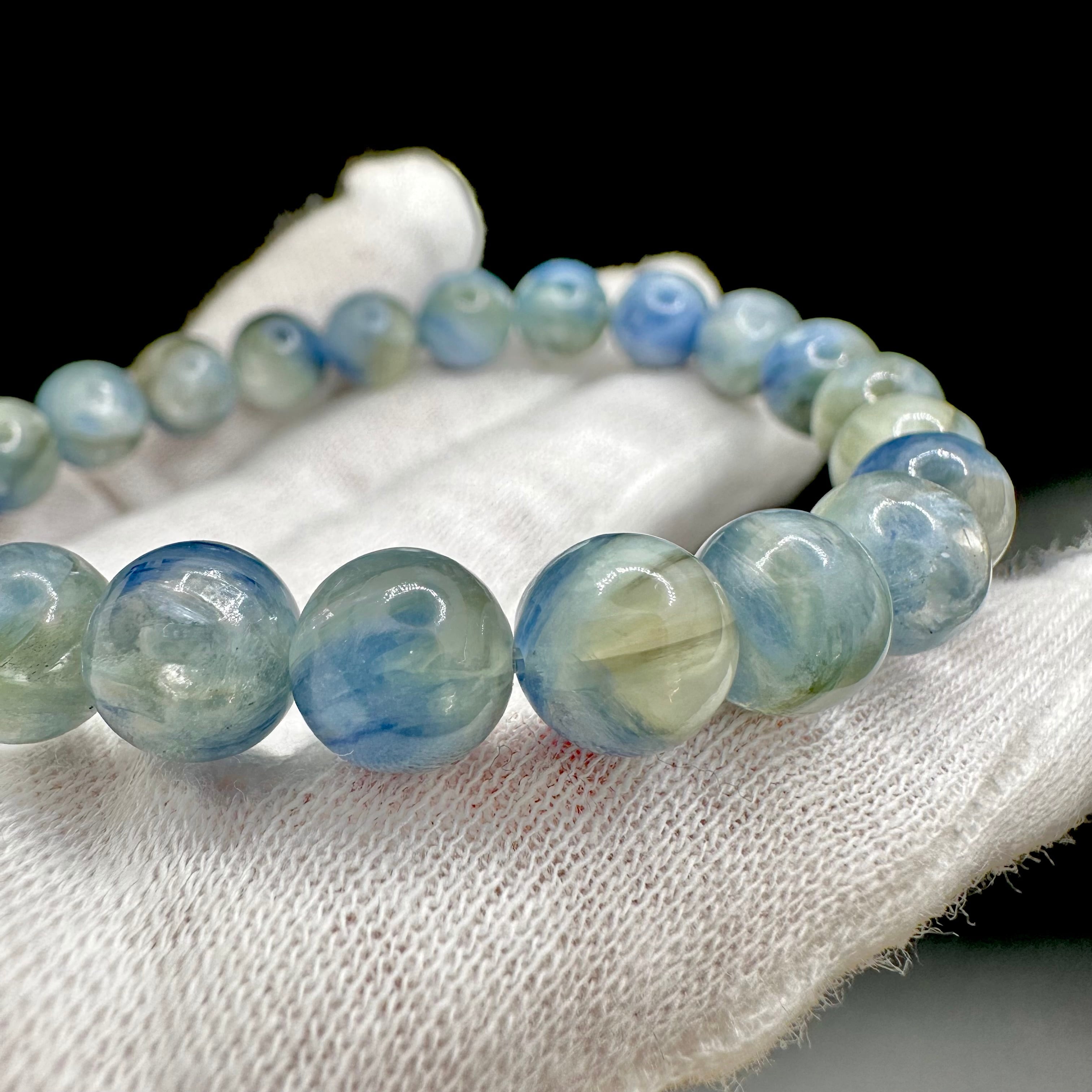 本当に淡いカラーですが、カイヤナイトの良いとこ取るをした、輝き方が素晴らしいブレスレットです。