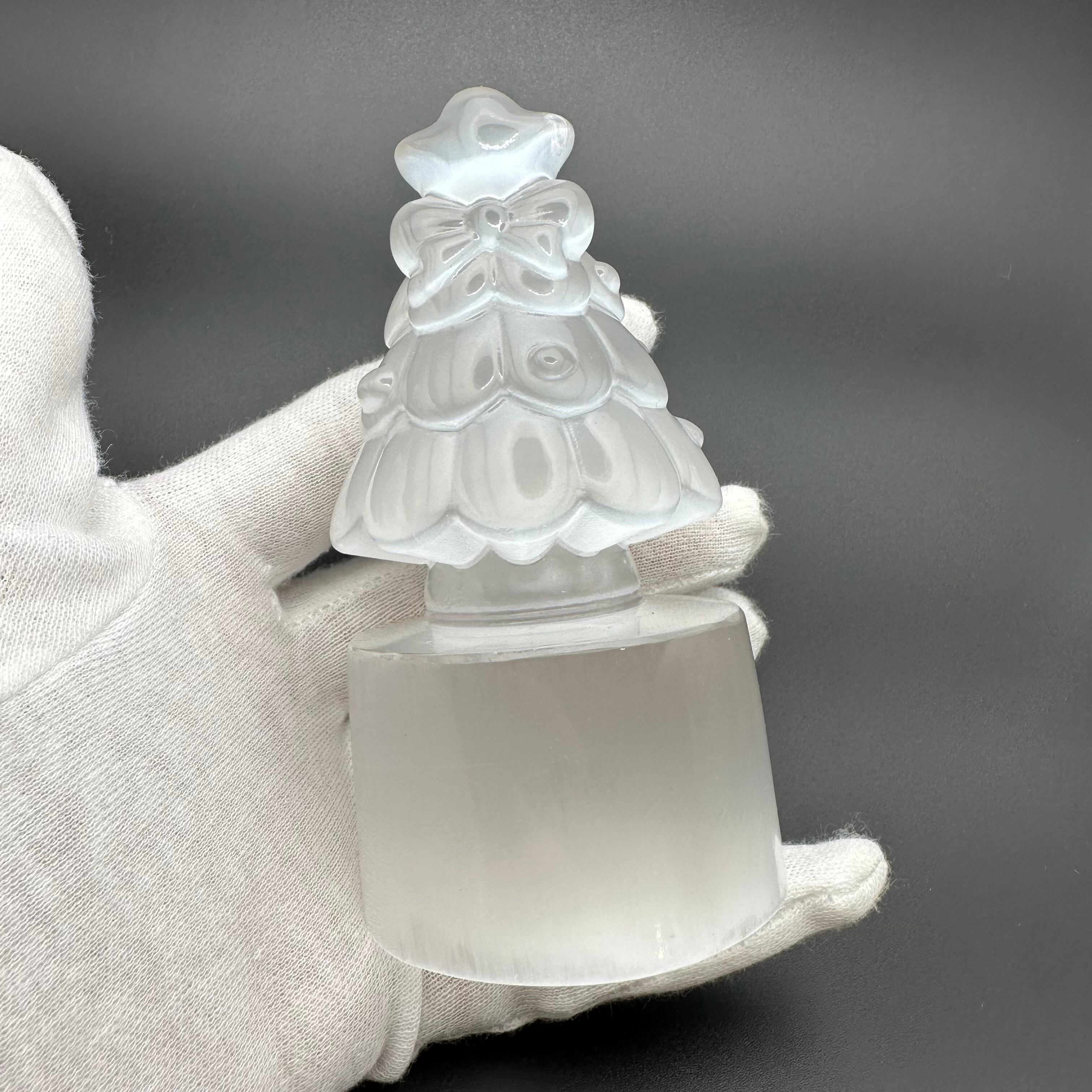ツヤツヤのとても美しいセレナイトで一つ一つ手で彫られたクリスマスツリーです。